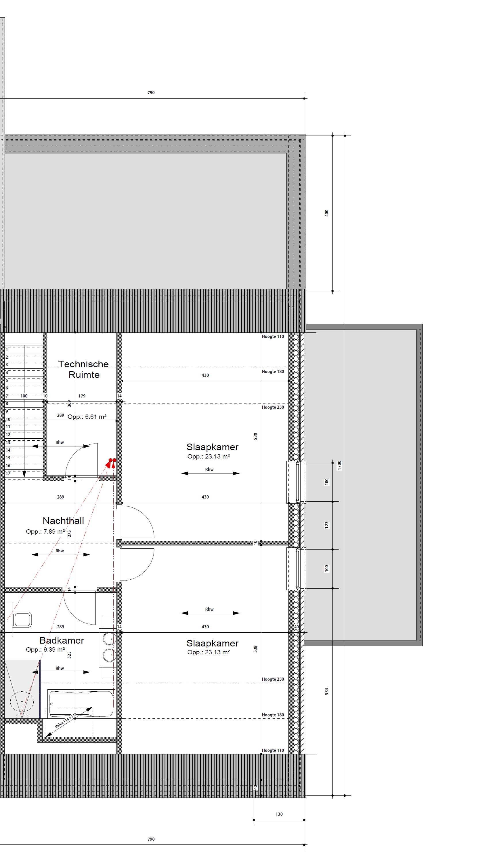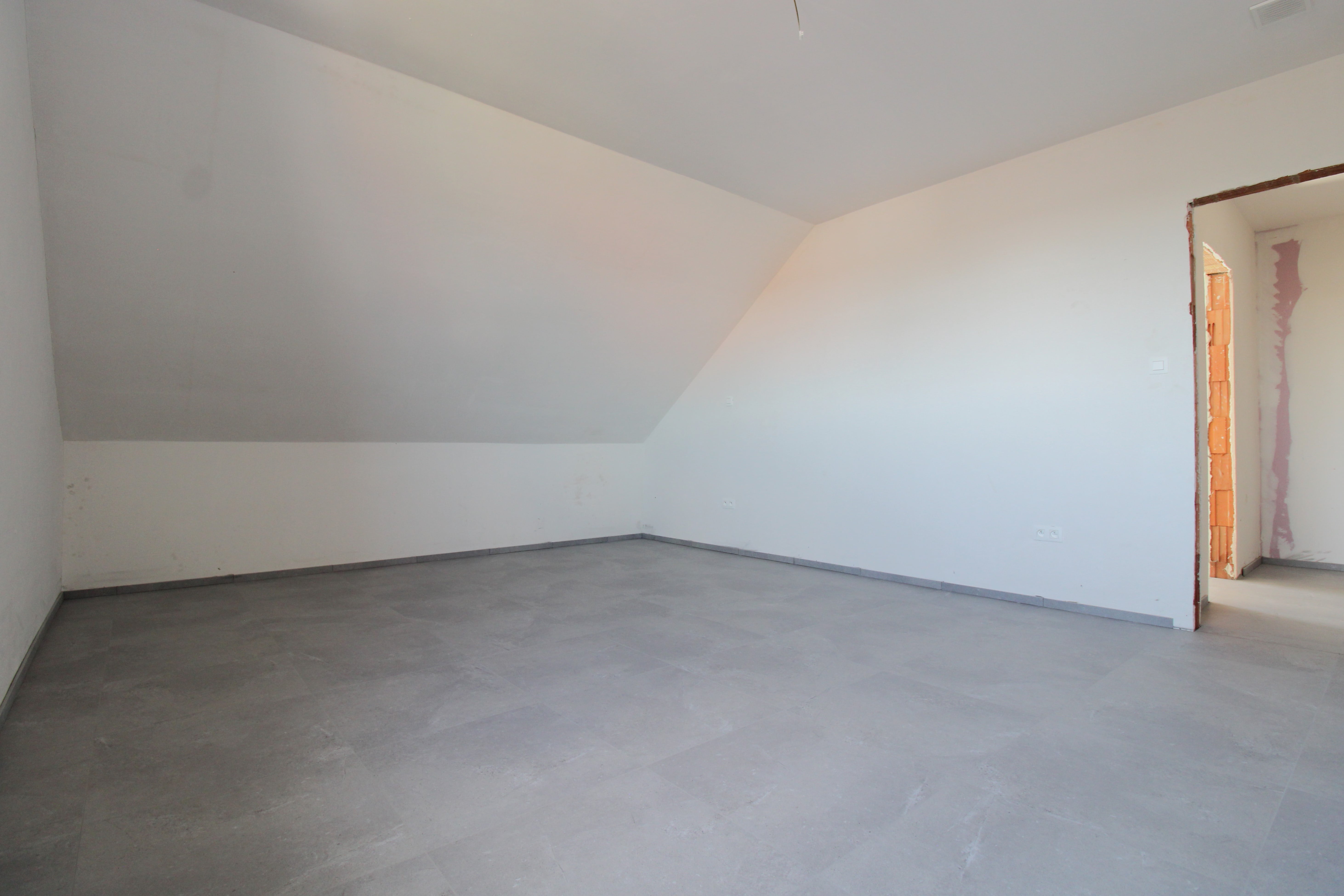 Op de tweede verdieping zijn er 2 grote slaapkamers aanwezig, alsook de badkamer die uitgerust zal worden met douche, ligbad, toilet en lavabo.
