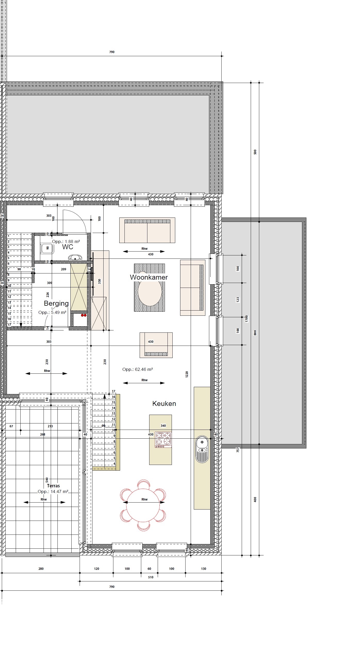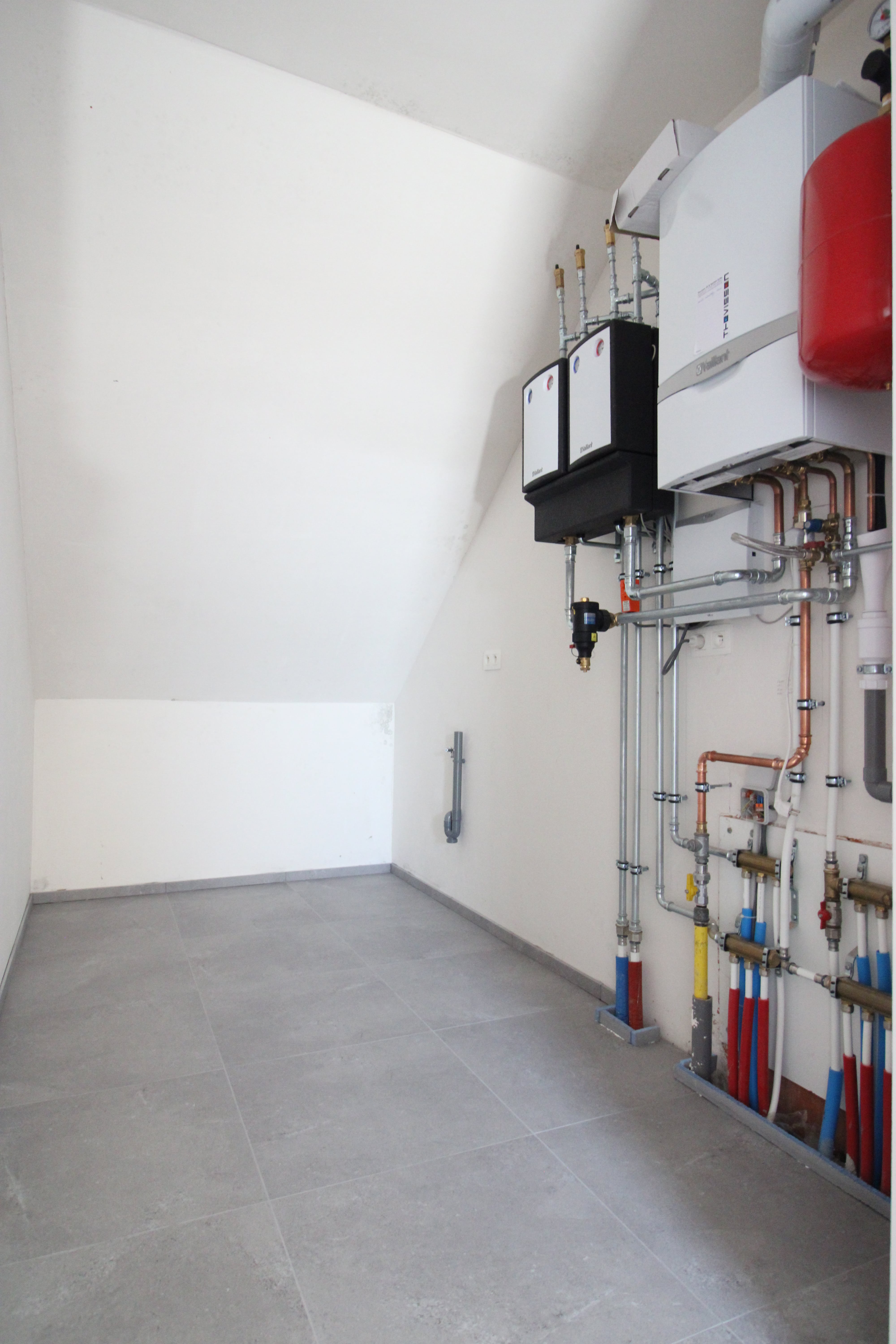 Vlakbij de keuken is er de berging met aansluitingen voor uw droger en wasmachine en via een schuifraam krijgt u toegang tot het overdekt, zuid gericht terras.