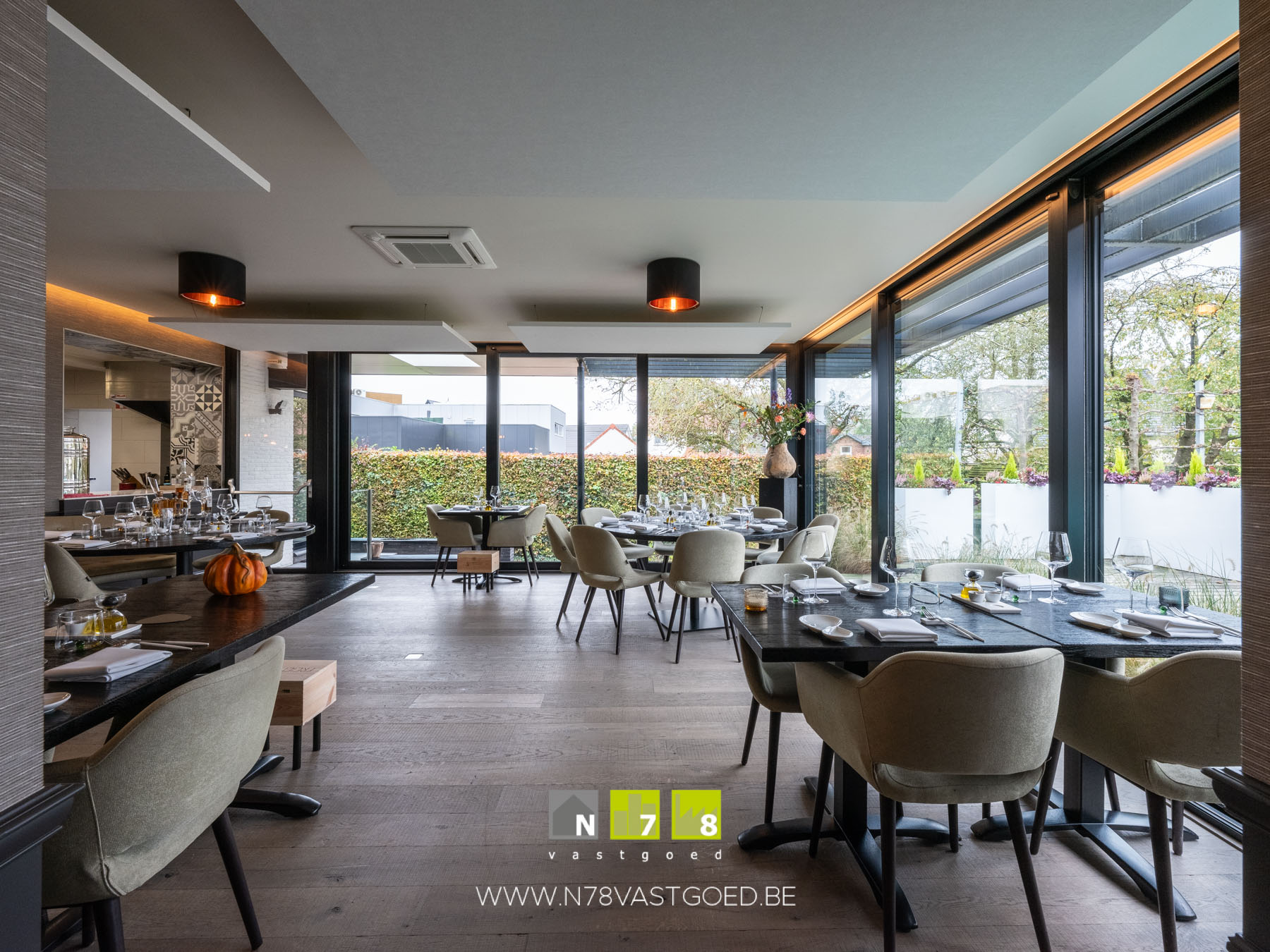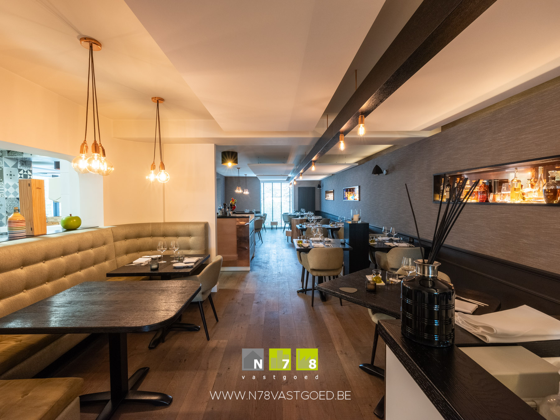 Het handelsgelijkvloers is momenteel in gebruik als horecazaak met 65 zitplaatsen binnen en ca. 40 zitplaatsen buiten.