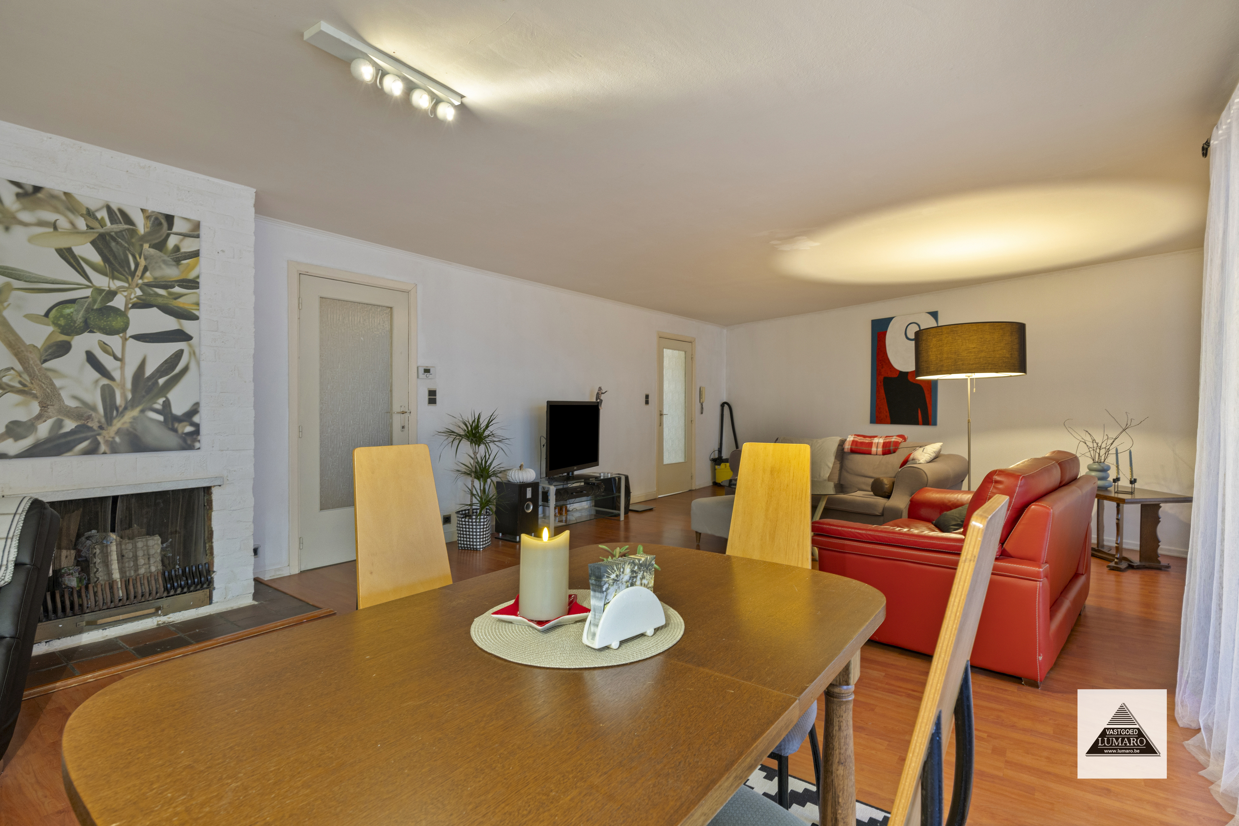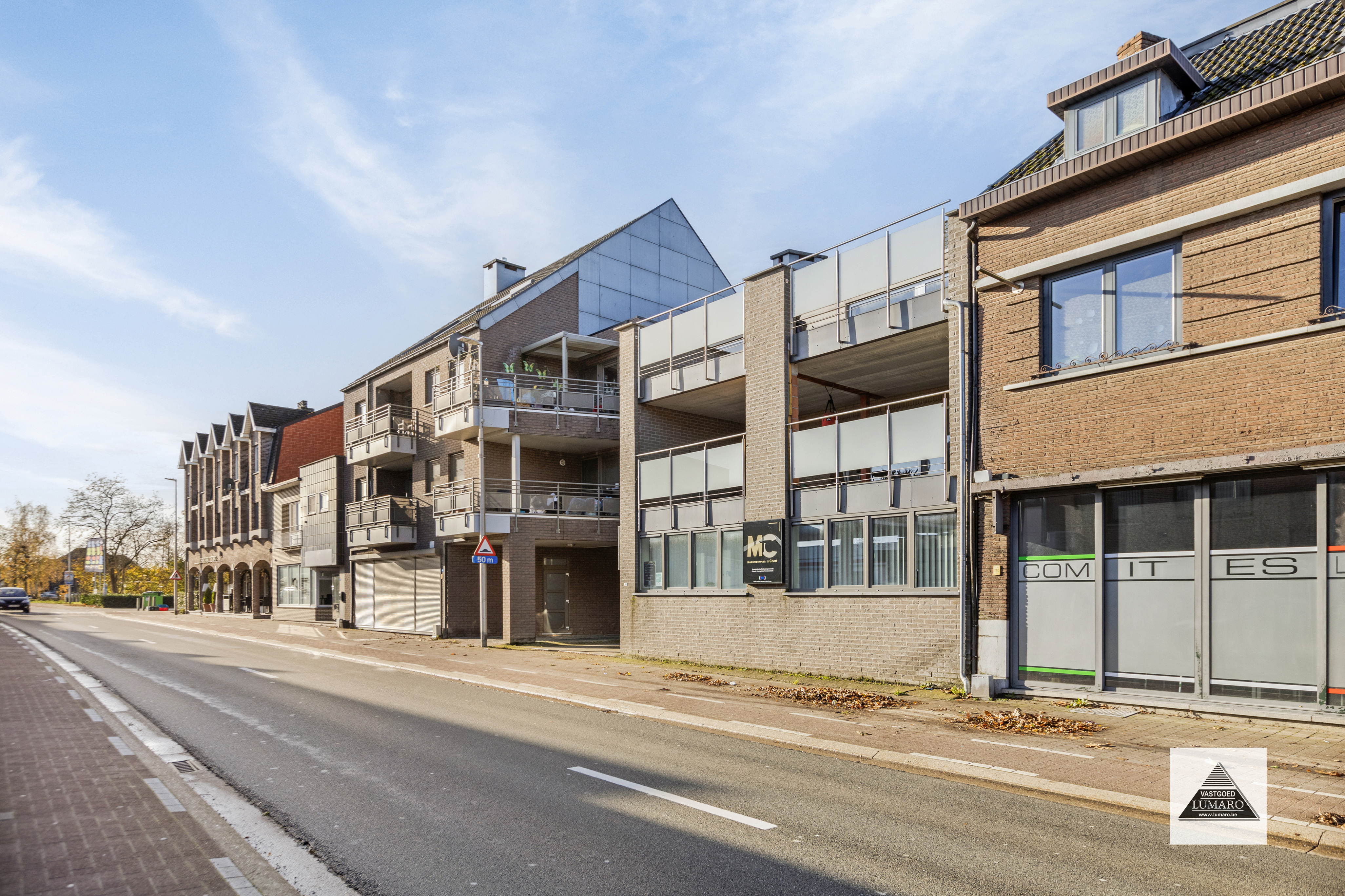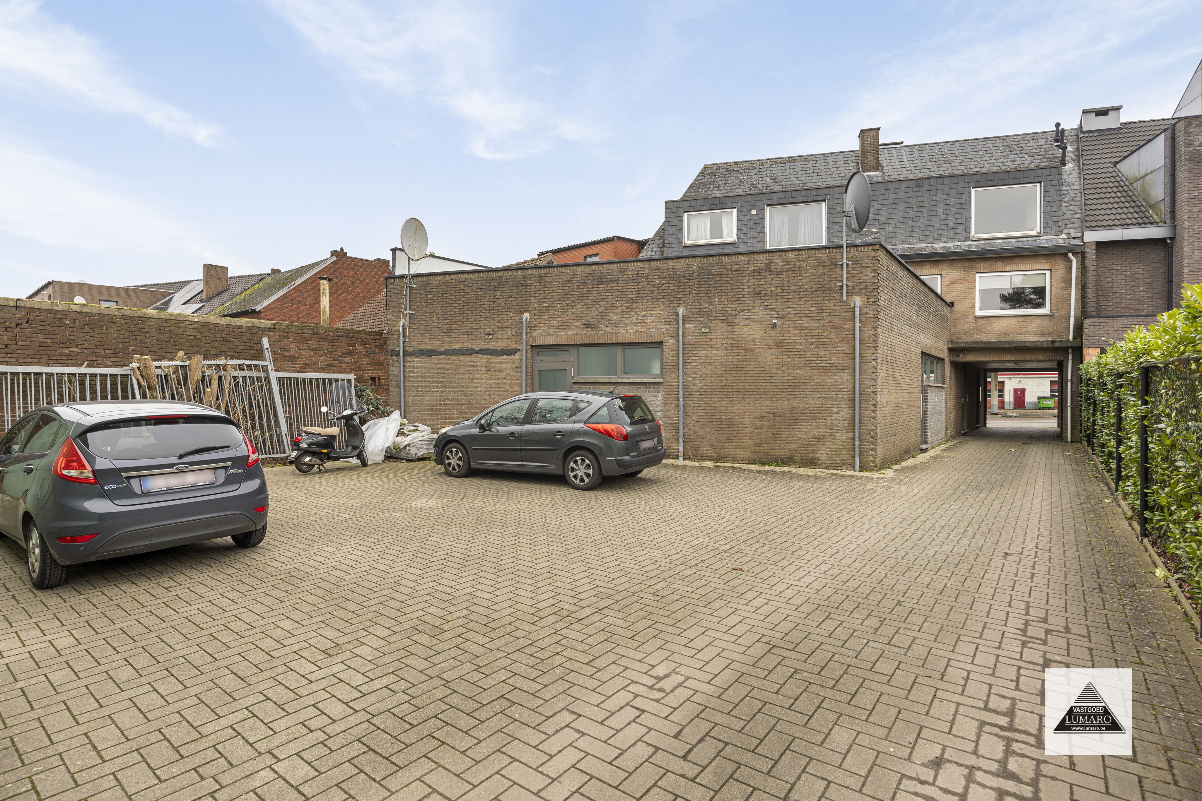 Handelsgelijkvloers en 2 appartementen, tuin en parking.