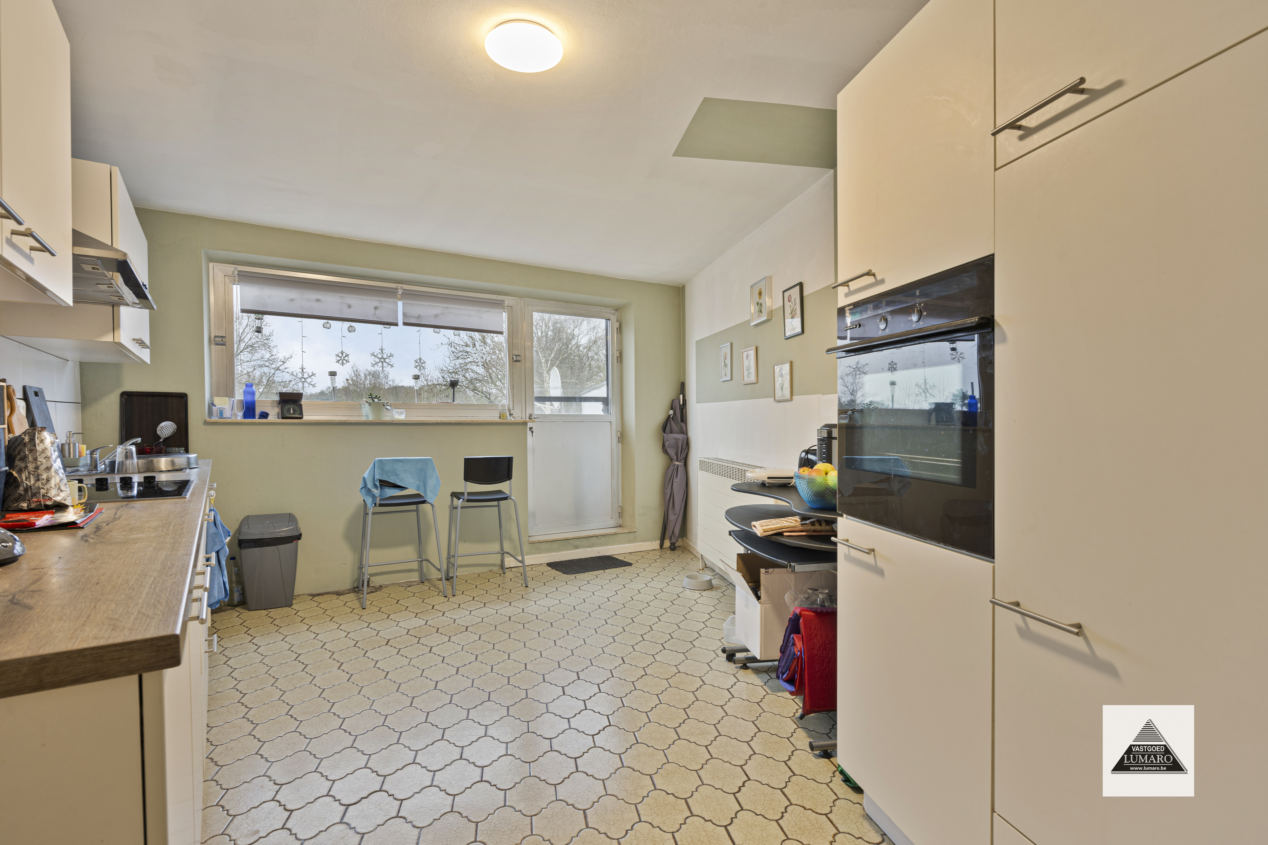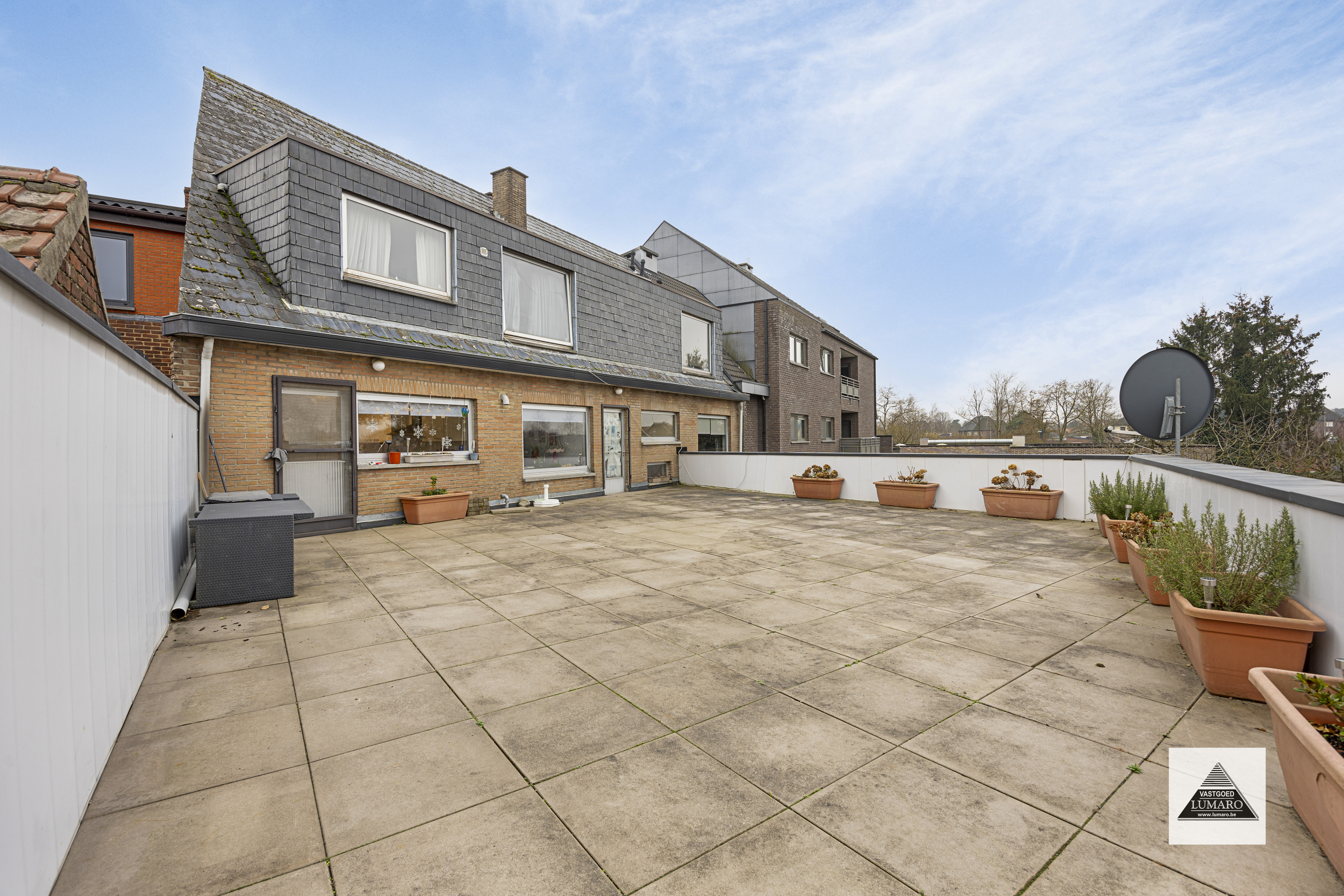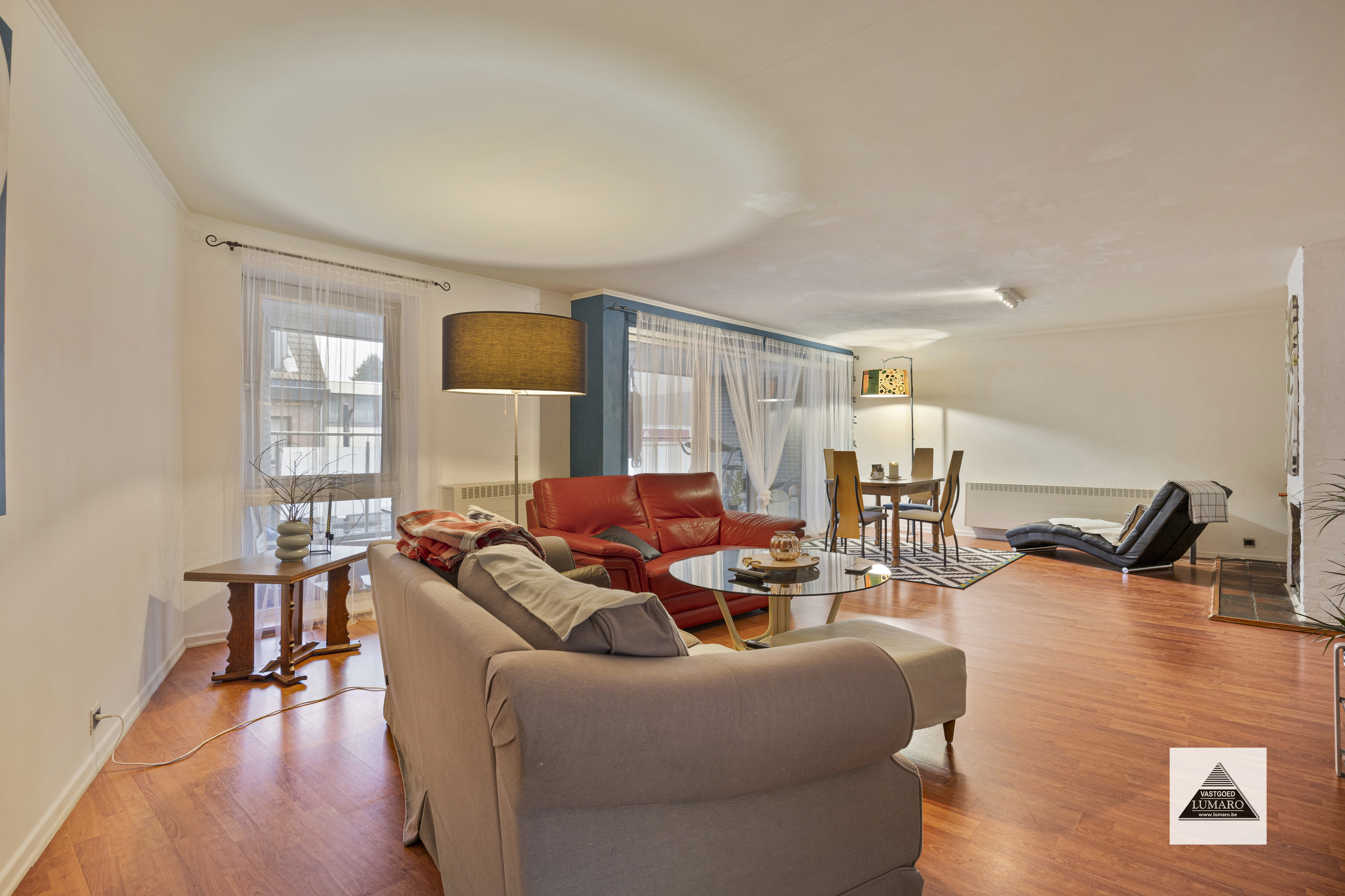 Handelsgelijkvloers en 2 appartementen, tuin en parking.