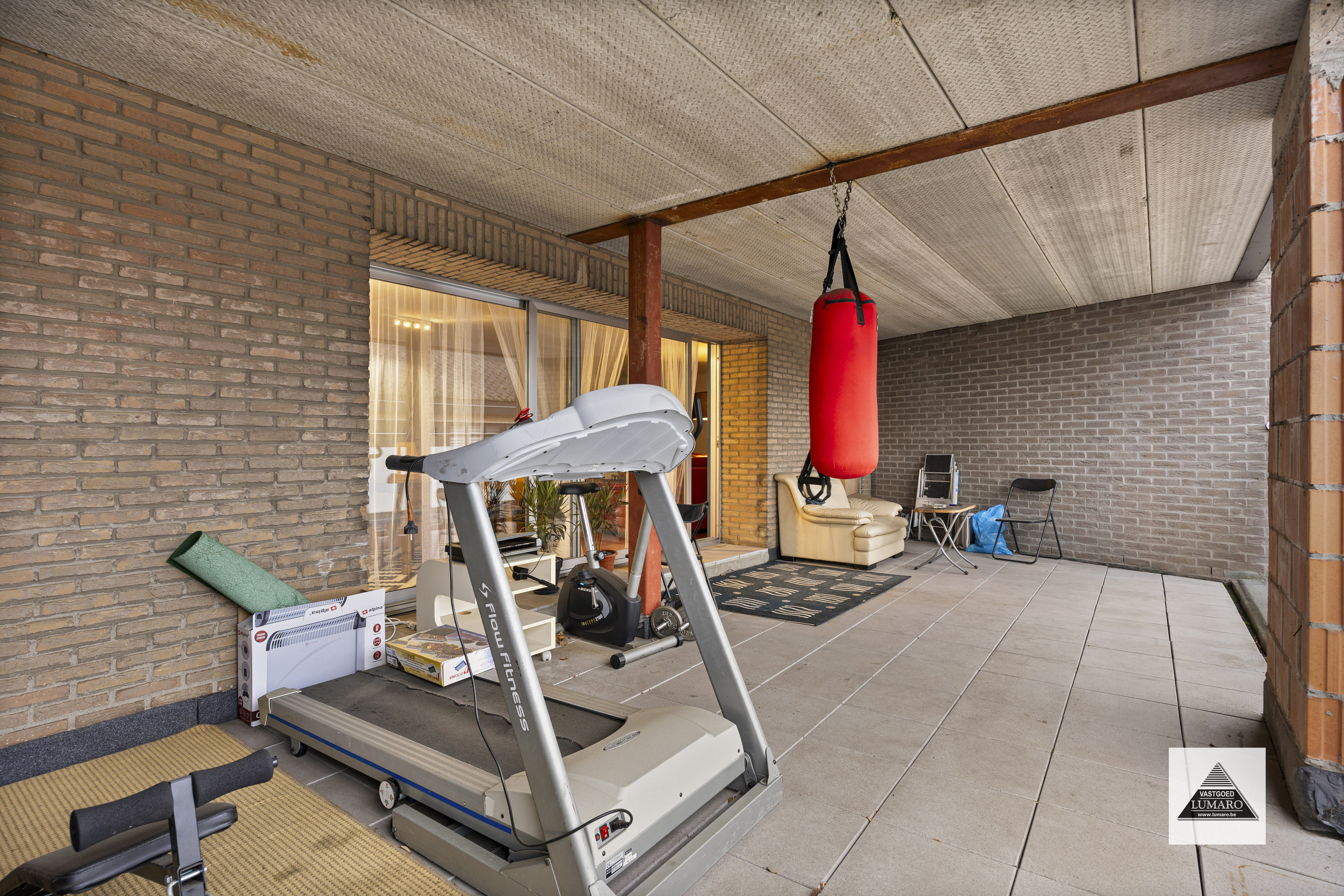 -Aansluitend overkapte terras over heel de breedte van het gebouw: ca 10,00 m x 3,00 m
