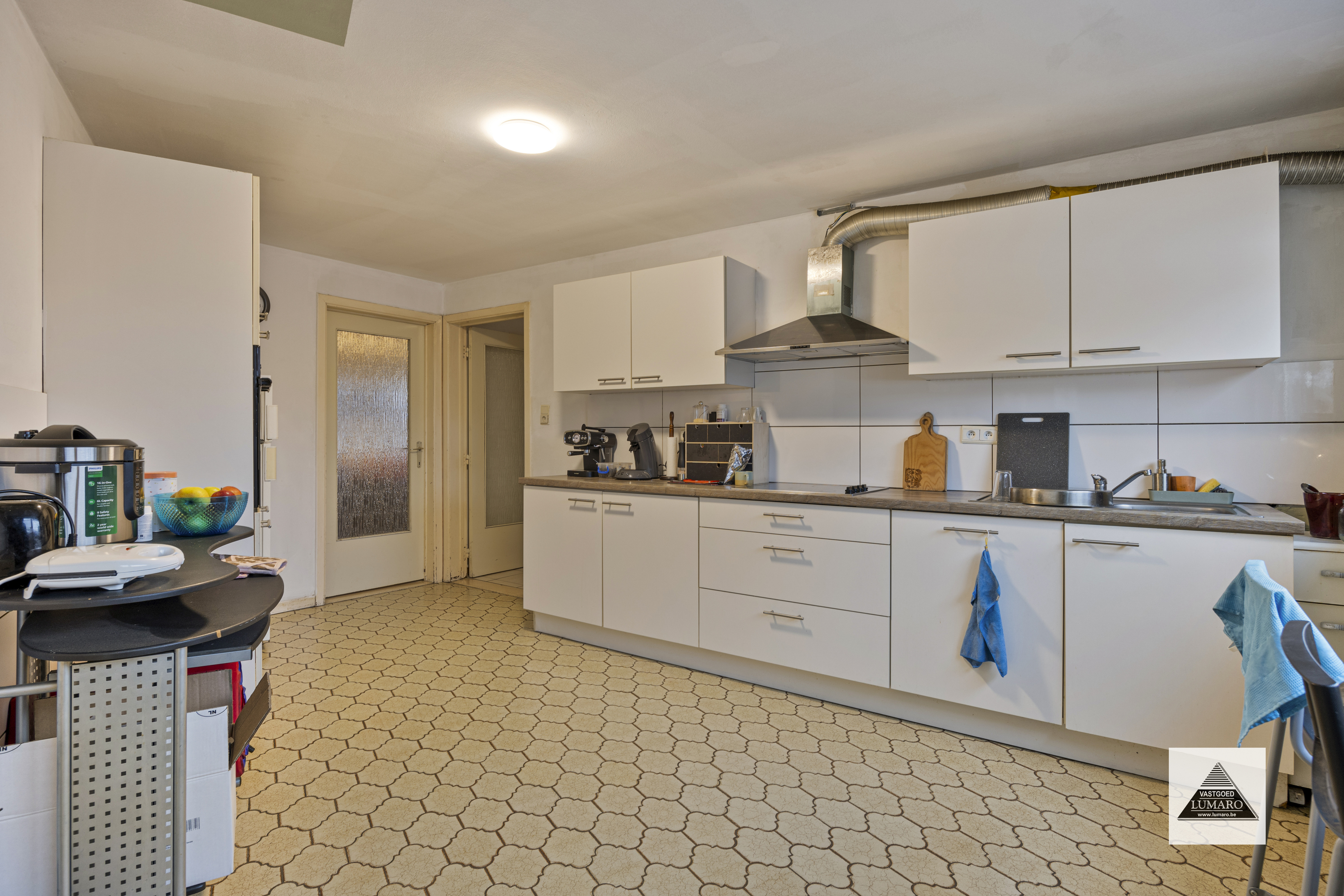 Handelsgelijkvloers en 2 appartementen en parking. Perceel van 15a 49ca.