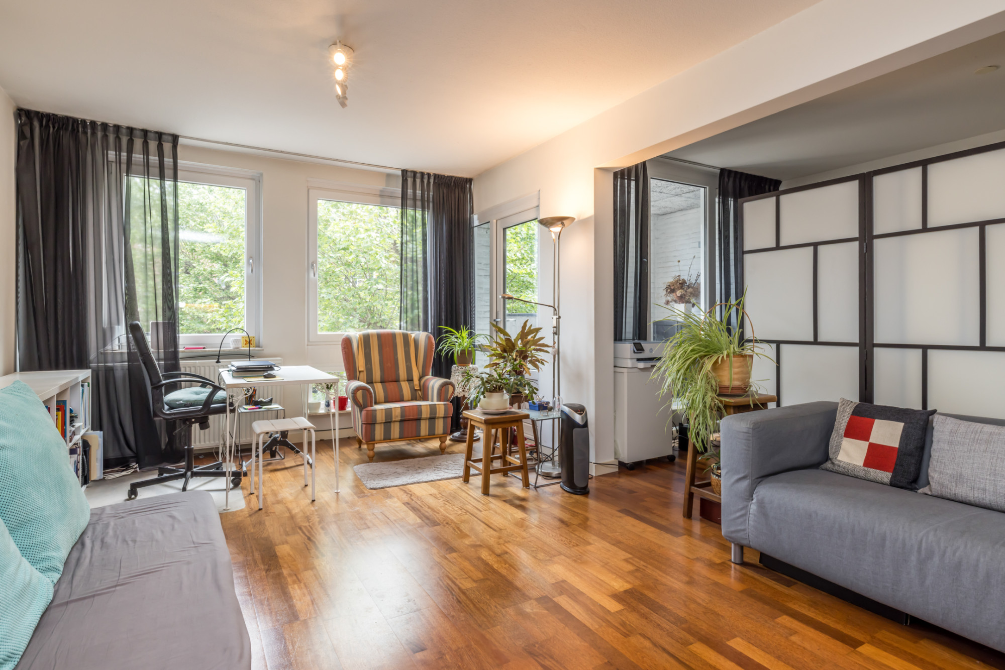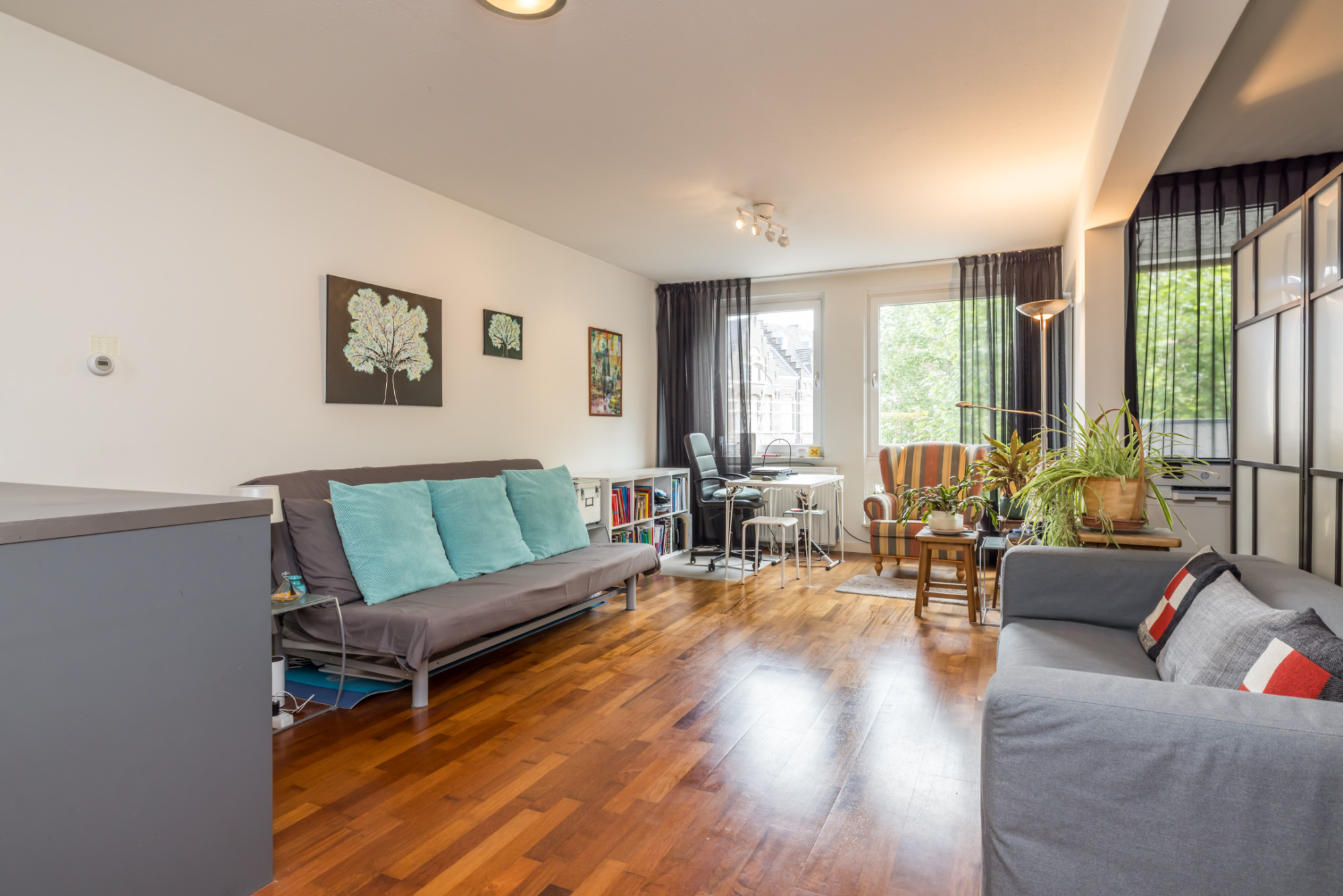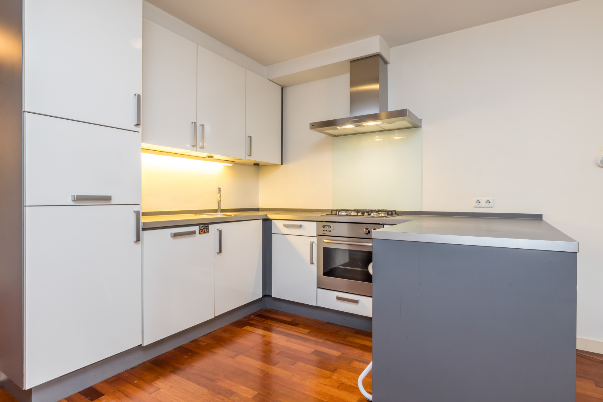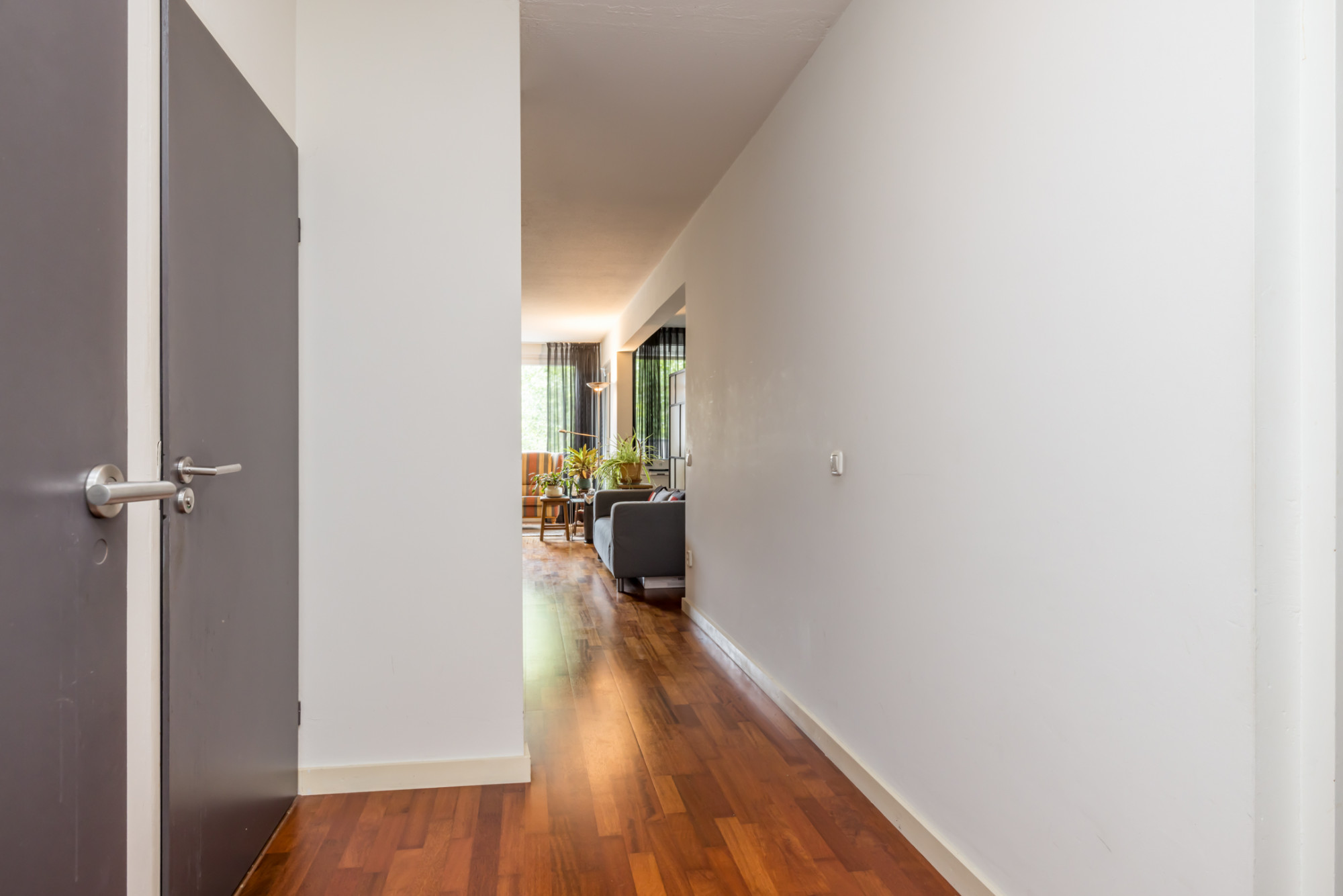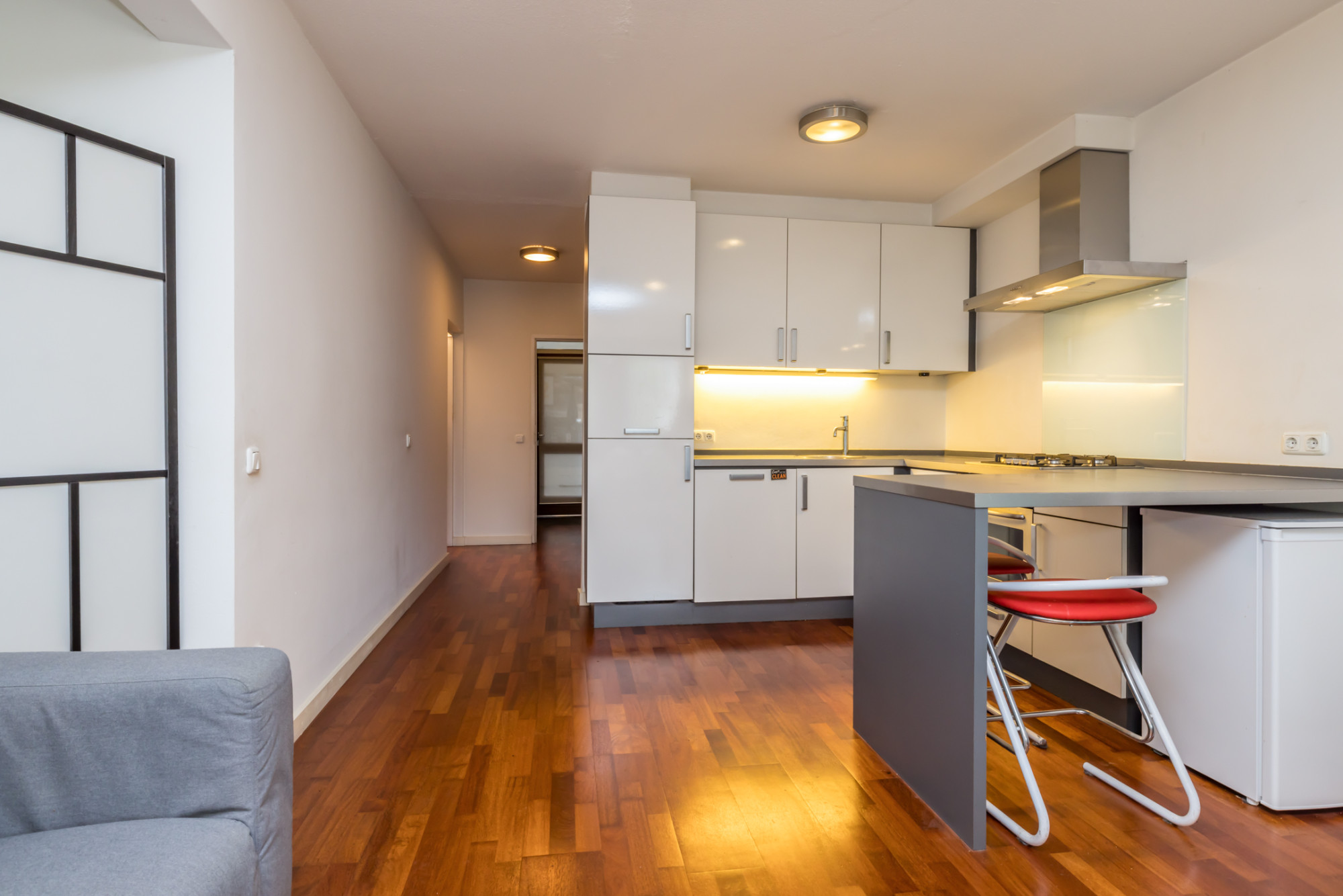 Gehele appartement is voorzien van een Merbau parketvloer.