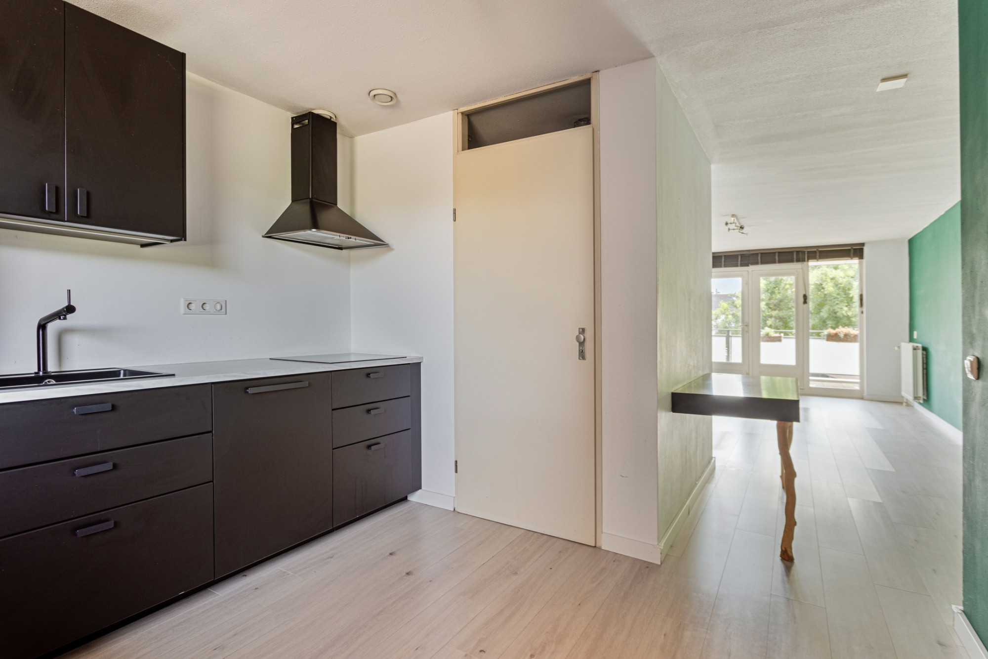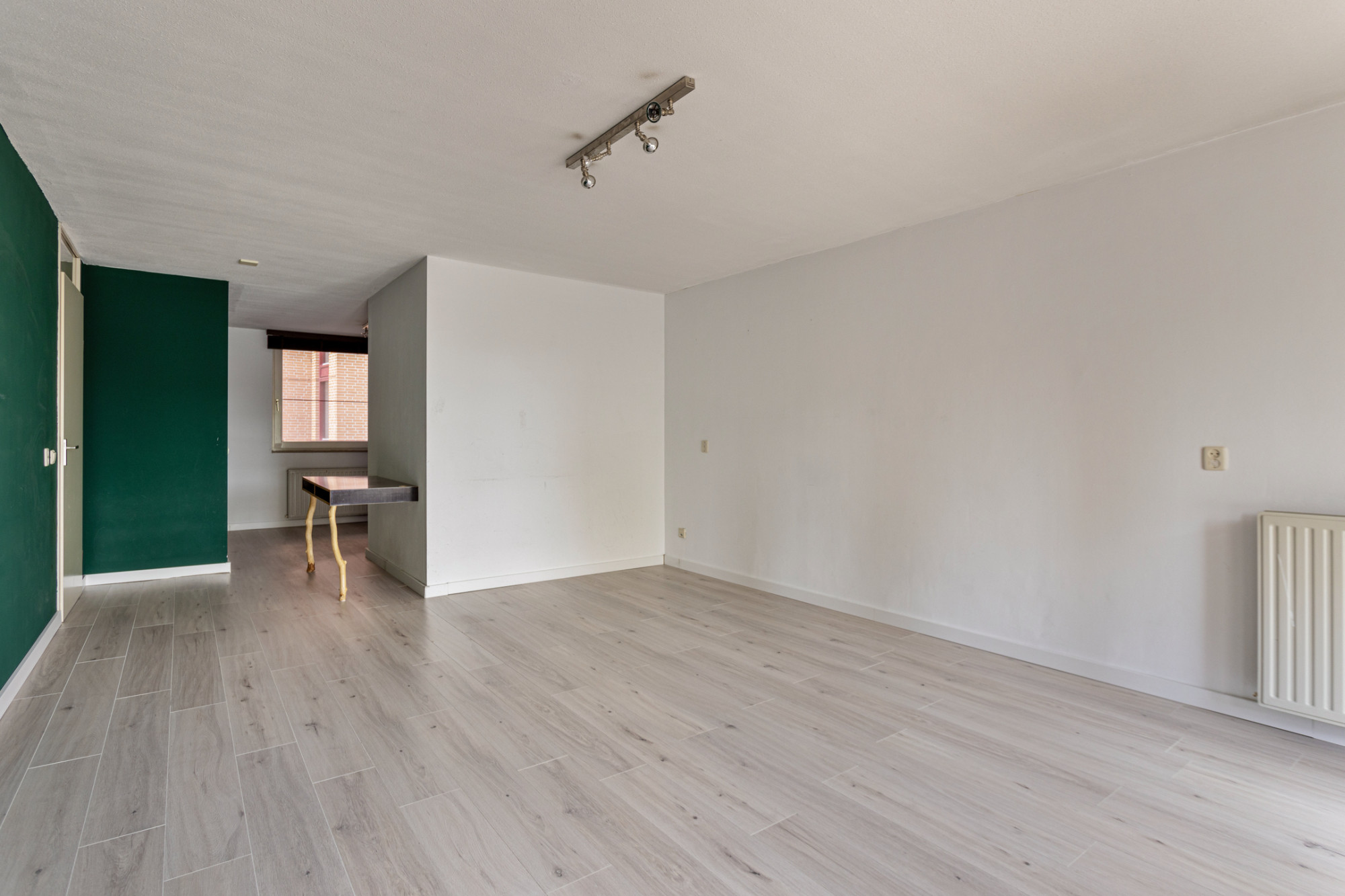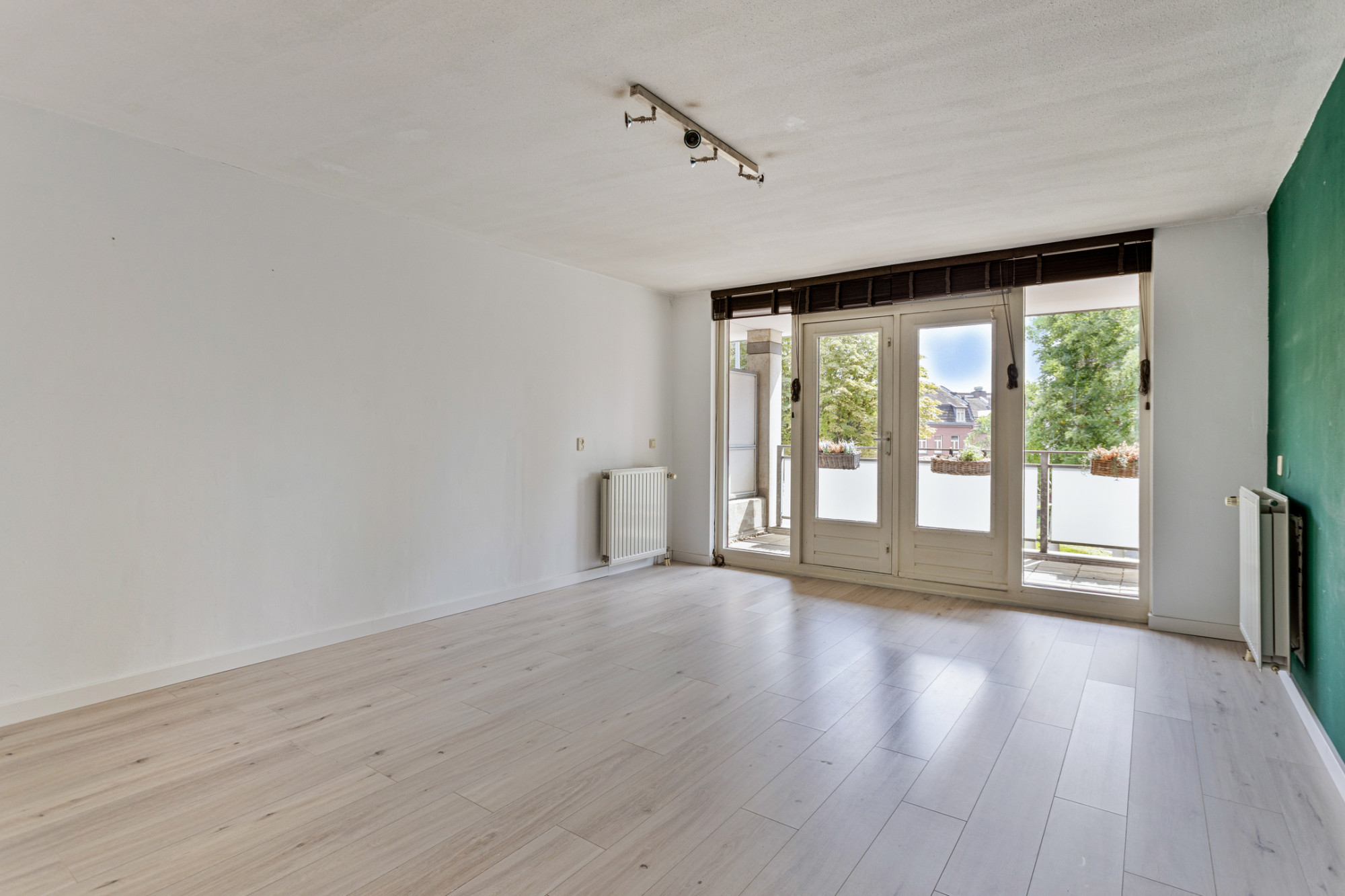 - Woonkamer van circa 25 m² met toegang tot de halfopen keuken en openslaande deur naar het op het zuiden gelegen balkon van circa 7 m².