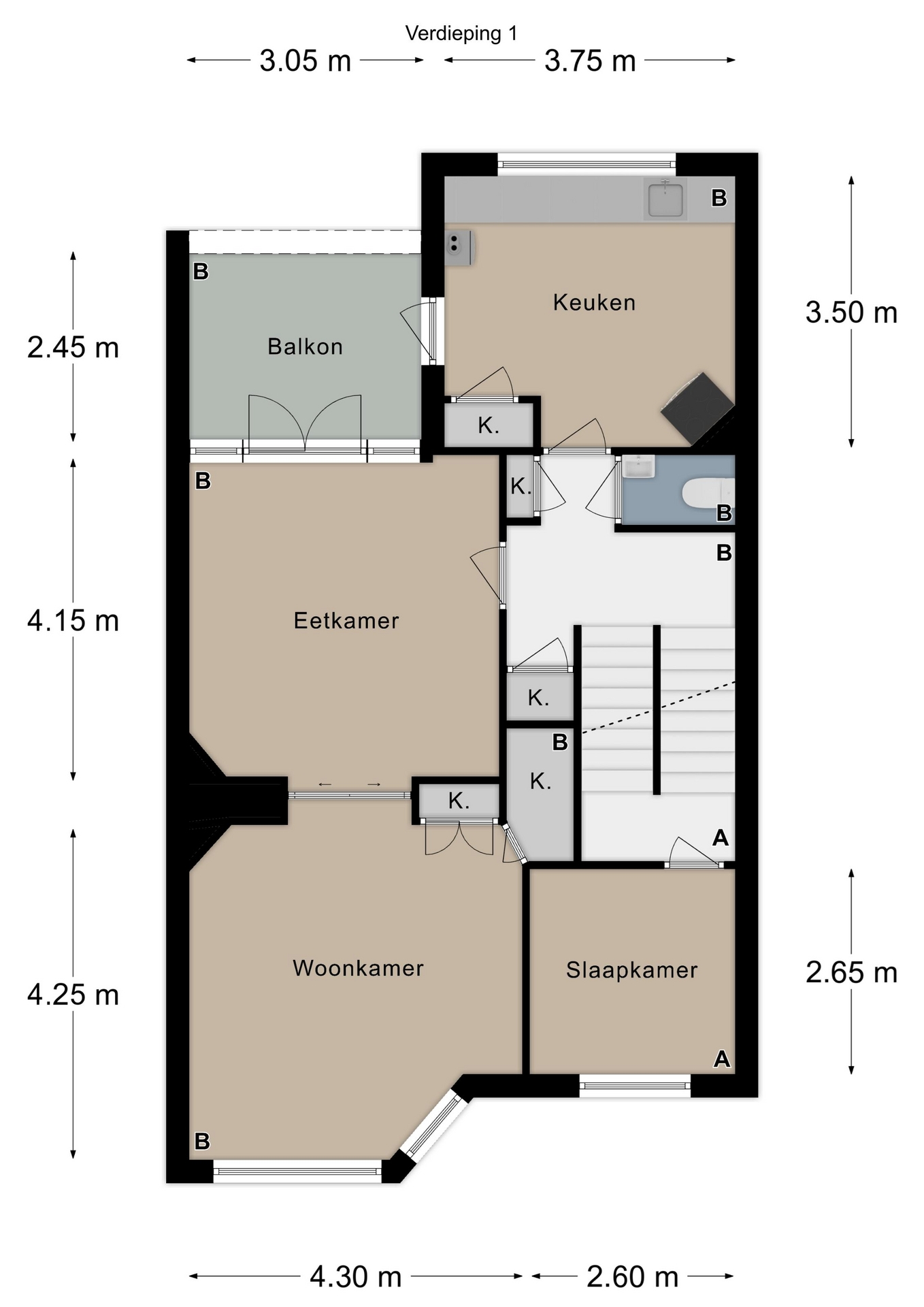 Op deze verdieping bevindt zich een compacte overloop die toegang biedt tot een kleine kamer van circa 7 m2. uitermate geschikt als werkkamer/ logeerkamer, of als plek om de badkamer te situeren.