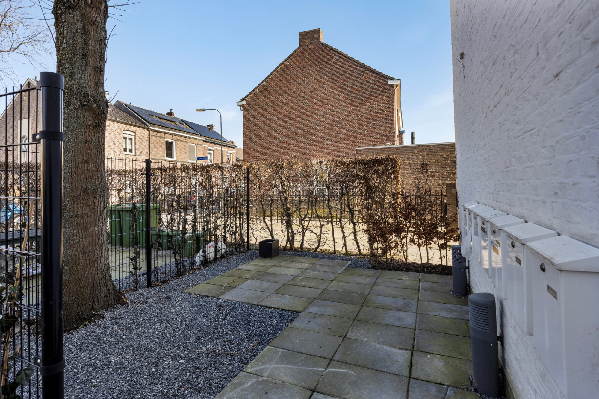 De privé tuin bevindt zich aan de voorzijde van het appartement. Aan de achterzijde van het complex behoort een privé berging en een eigen parkeerplaats tot het appartement.