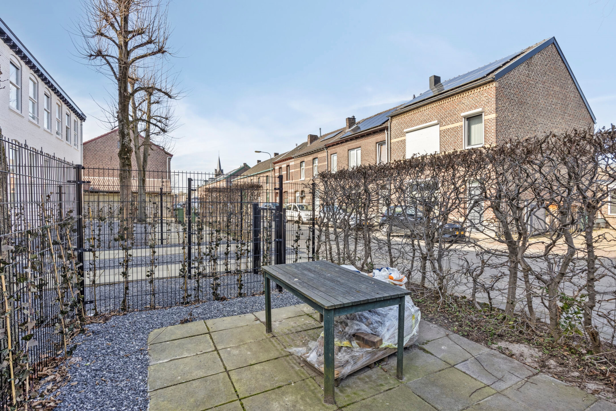 De privé tuin bevindt zich aan de voorzijde van het appartement. Aan de achterzijde van het complex behoort een privé berging en eigen parkeerplaats tot het appartement.