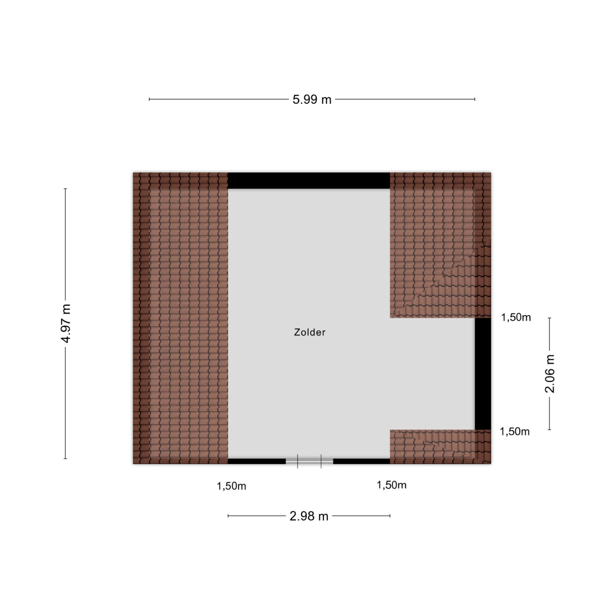 Verdieping 2: slaapkamer en toegang tot de grote bergzolder (ca 15m2).