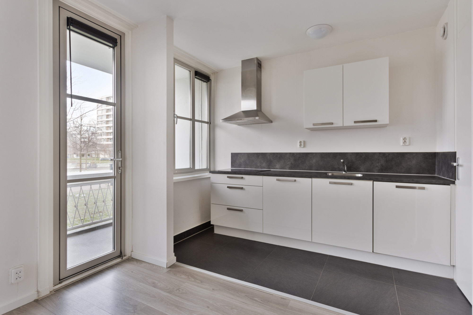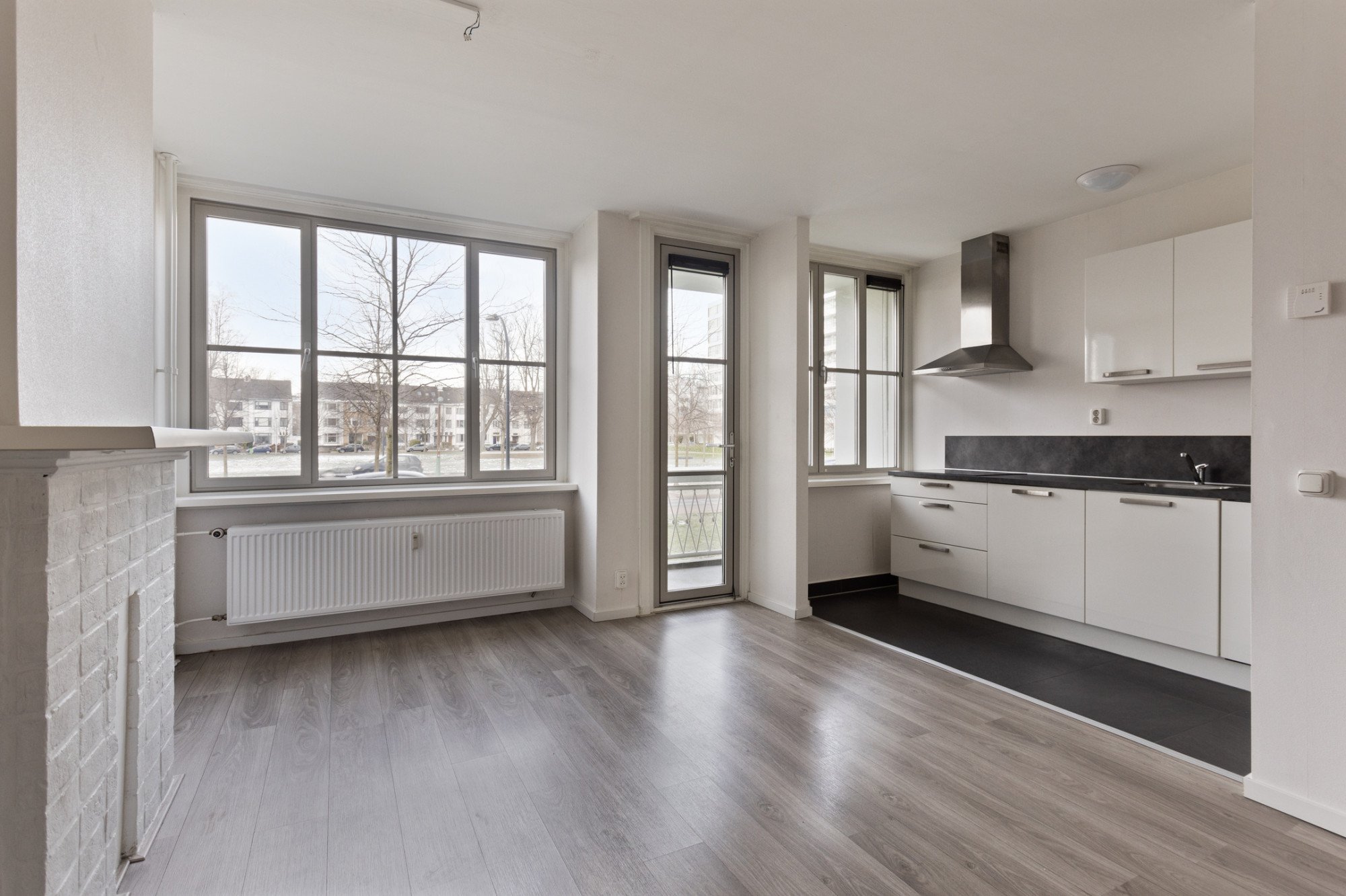 - Voorzijde voorzien van aluminium kozijnen met isolerende beglazing en gehele appartement met laminaatvloeren;