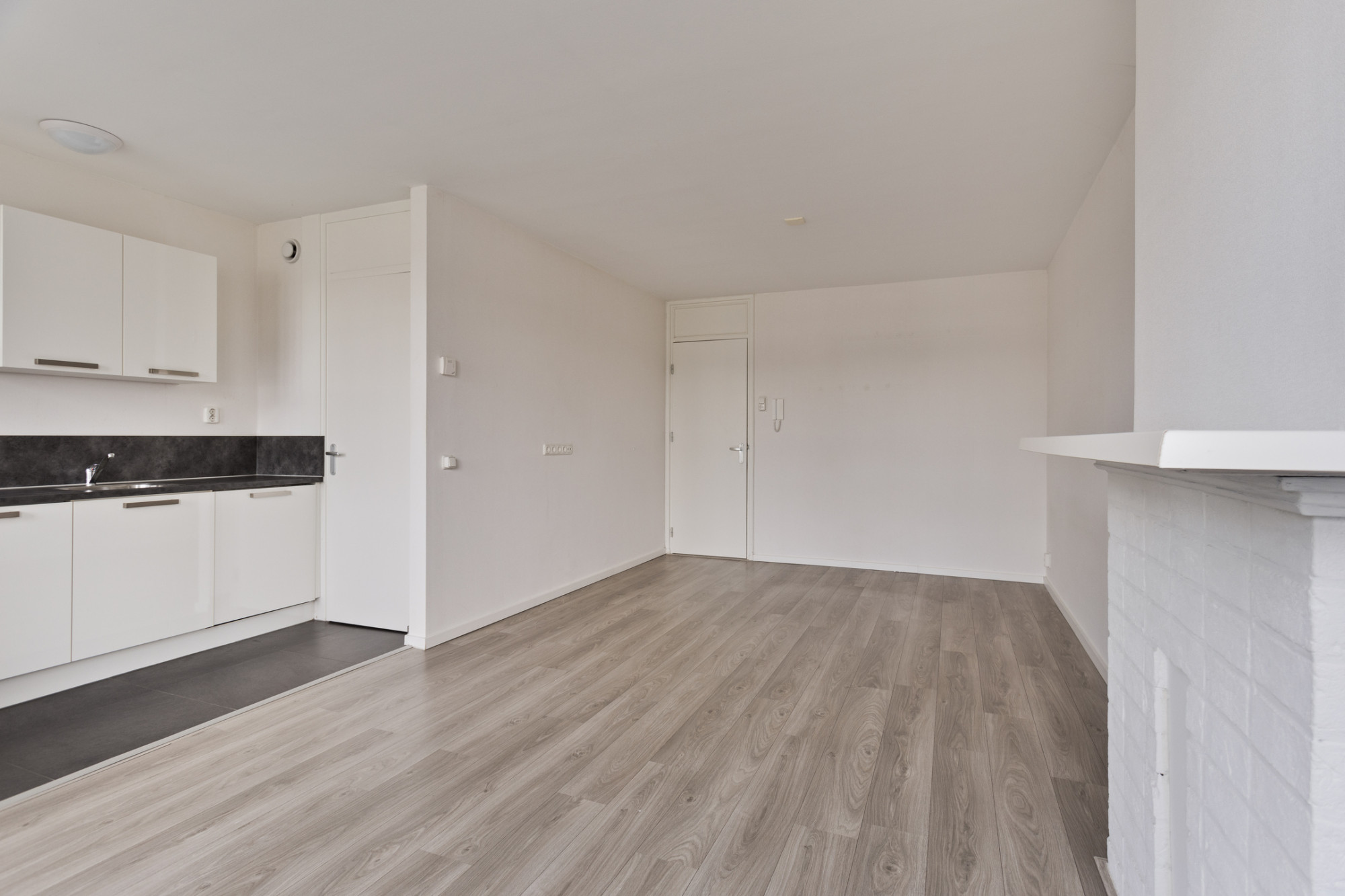 De woonkamer van circa 20 m² met open keuken (ruim 4m²) is gelegen aan de westzijde van het gebouw en heeft grote raampartijen, wat zorgt voor een lichte ruimte. Vanuit de woonkamer is er toegang tot een balkon met uitzicht over de Groene Loper, ideaal om van de ondergaande zon te genieten.