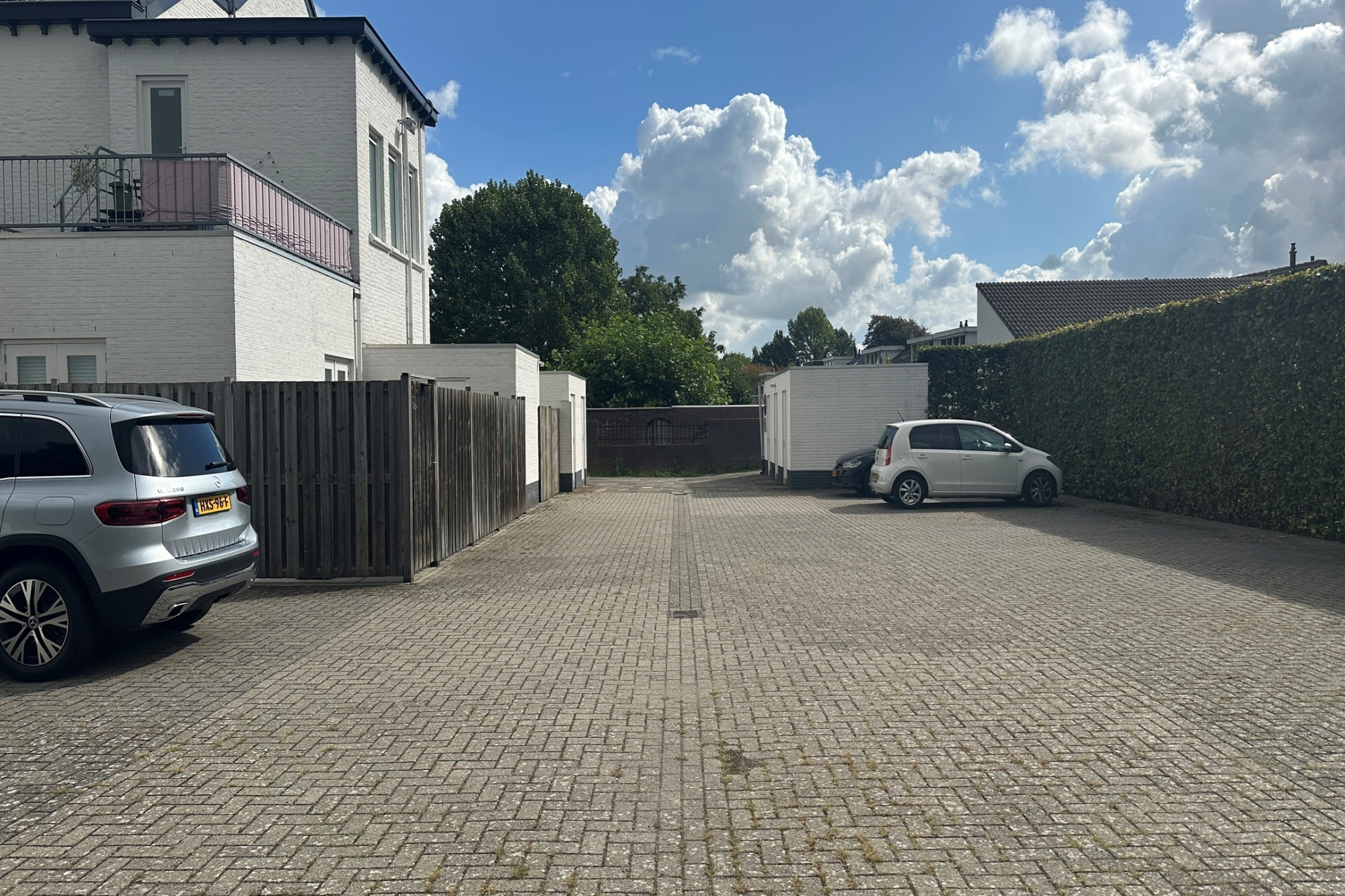 De privé parkeerplaats en privé berging bevinden zich aan de achterzijde van het appartementencomplex.