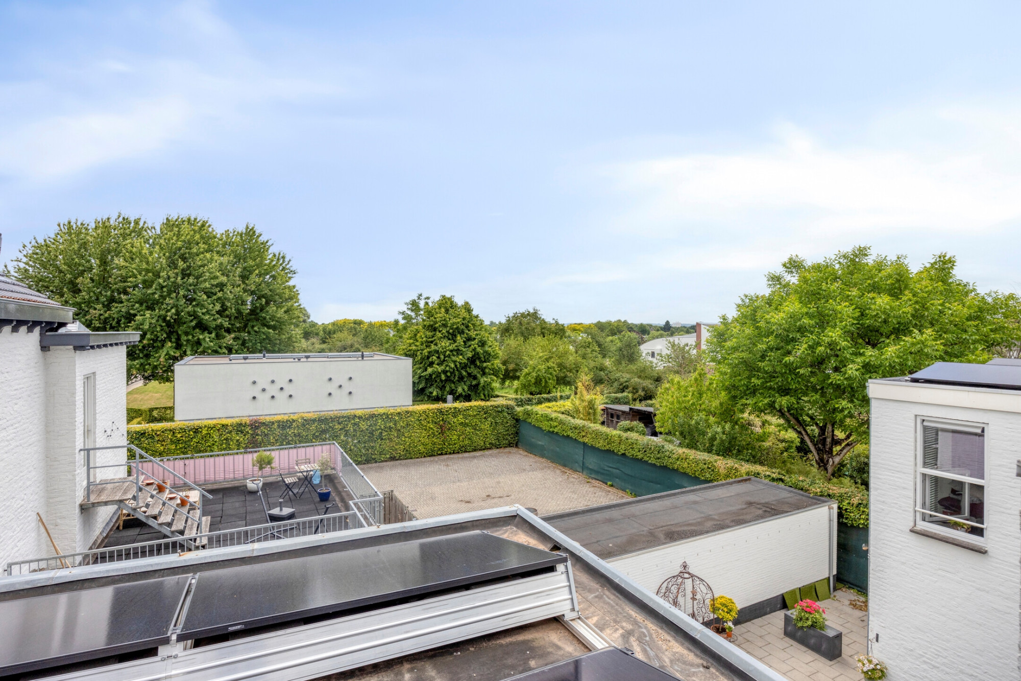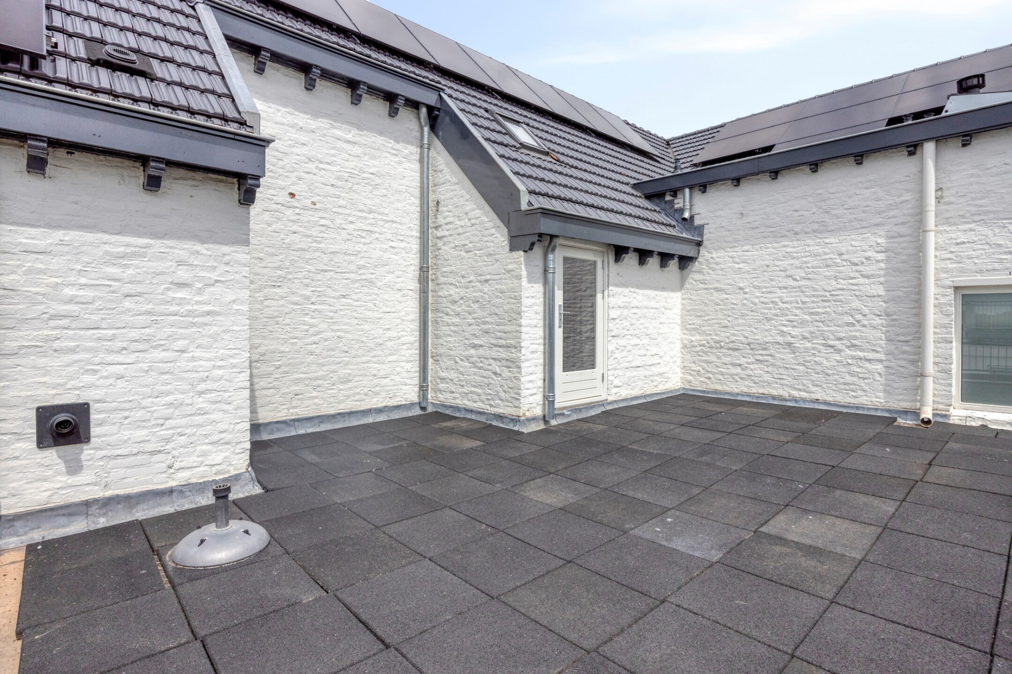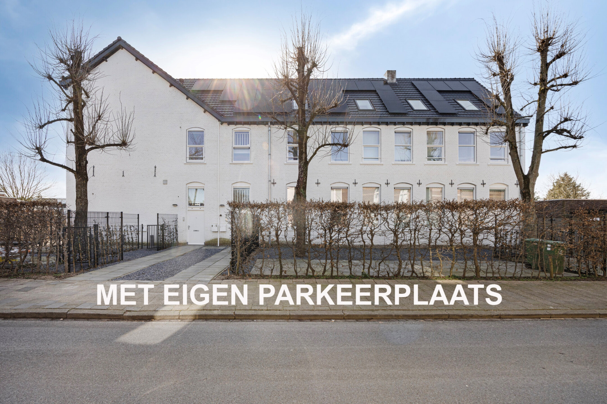 De privé parkeerplaats en privé berging bevinden zich aan de achterzijde van het appartementencomplex.