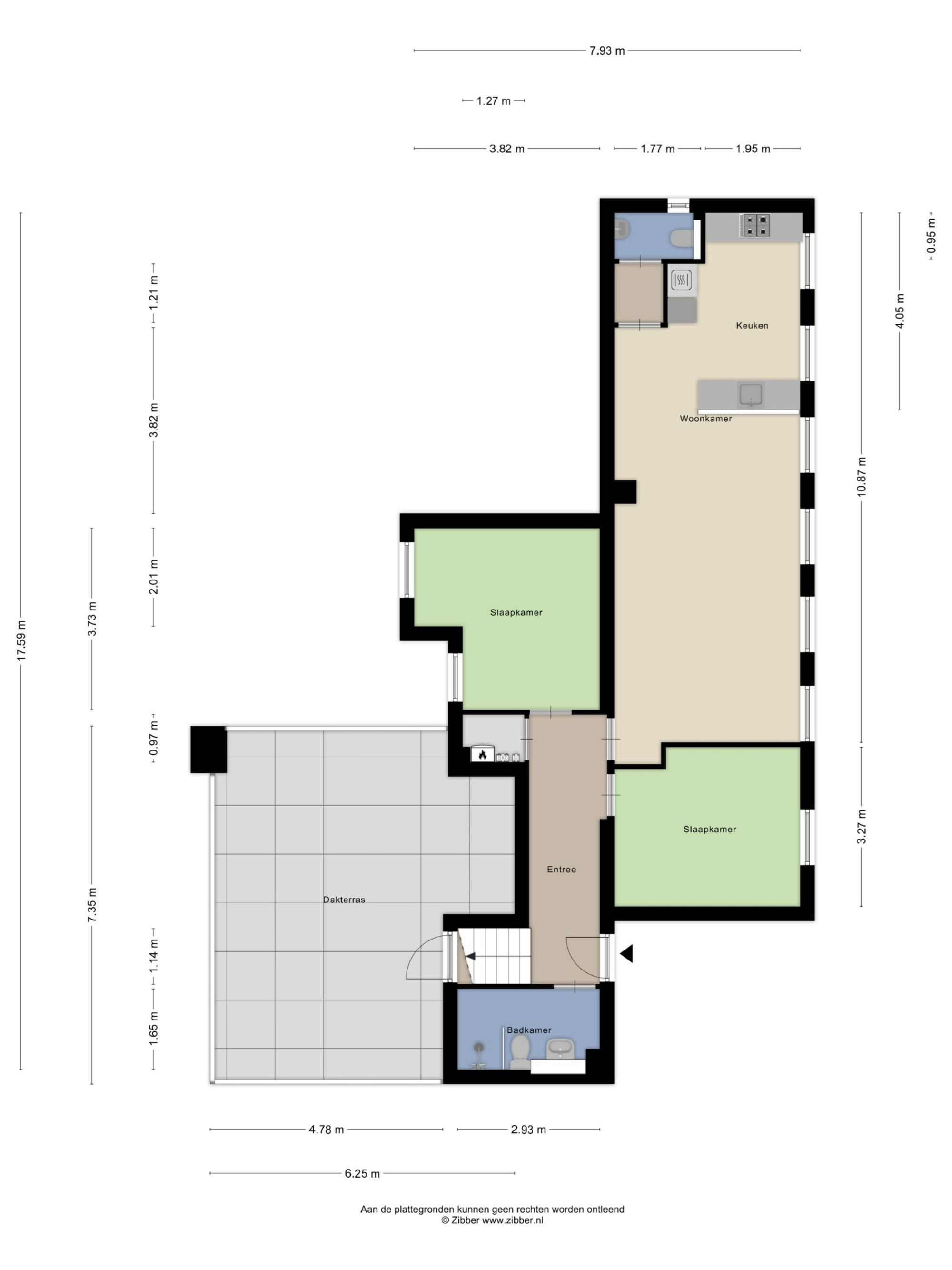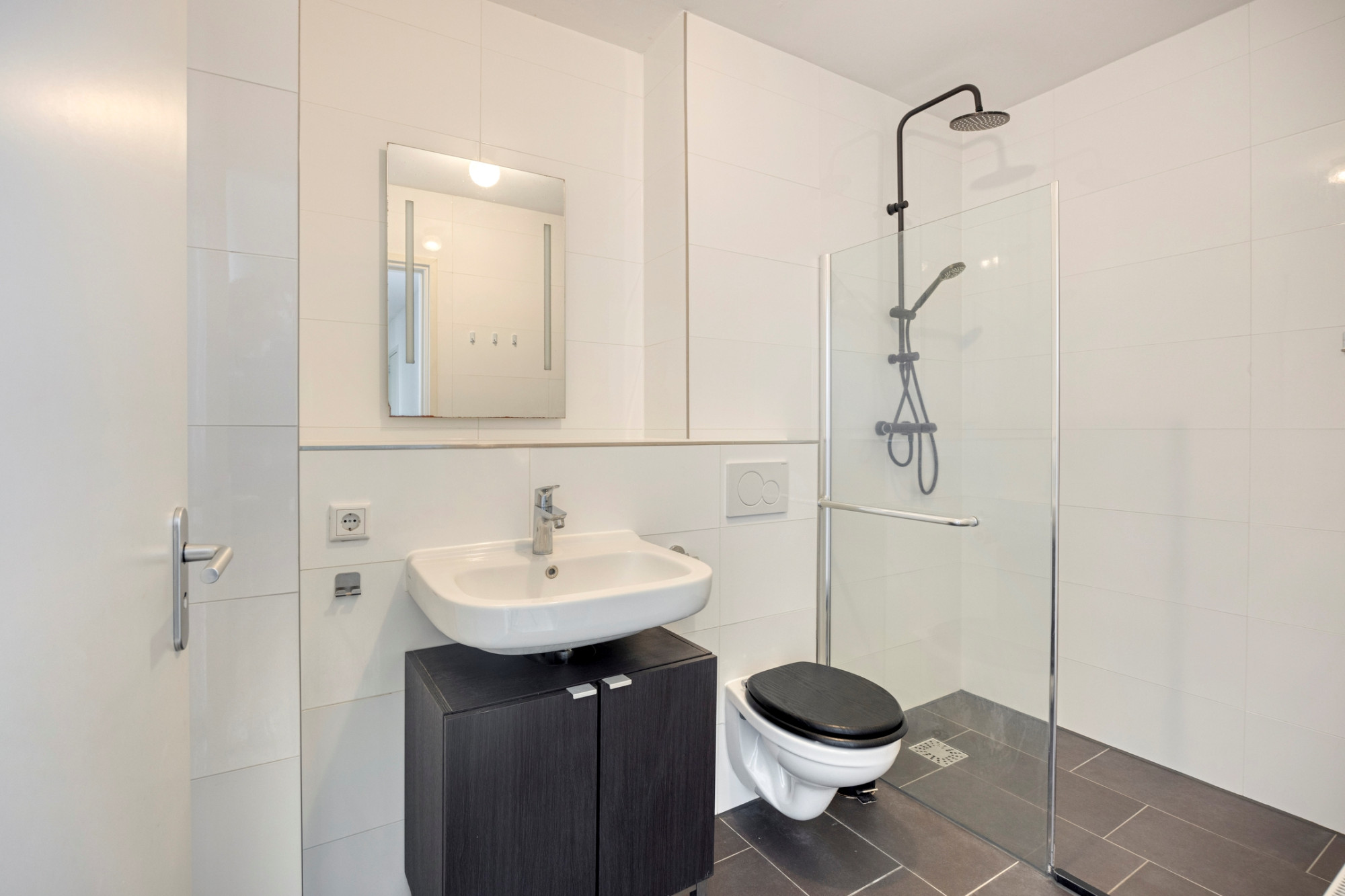Verdieping 1: entree; badkamer met inloopdouche, toilet en wastafelmeubel; 2 ruime slaapkamers; woonkamer met open keuken; separaat 2e toilet; het dakterras is ongeveer 39m2 op het Zuiden georiënteerd en biedt een waanzinnig uitzicht.