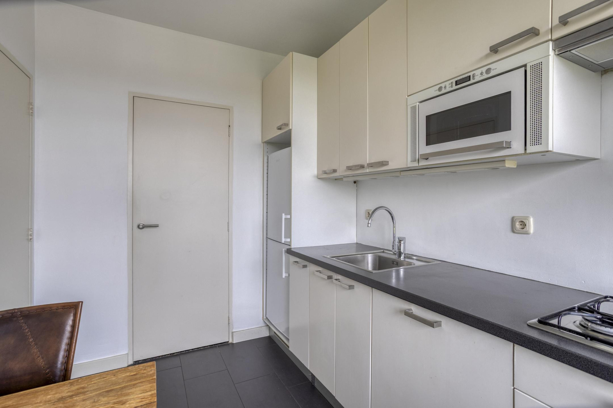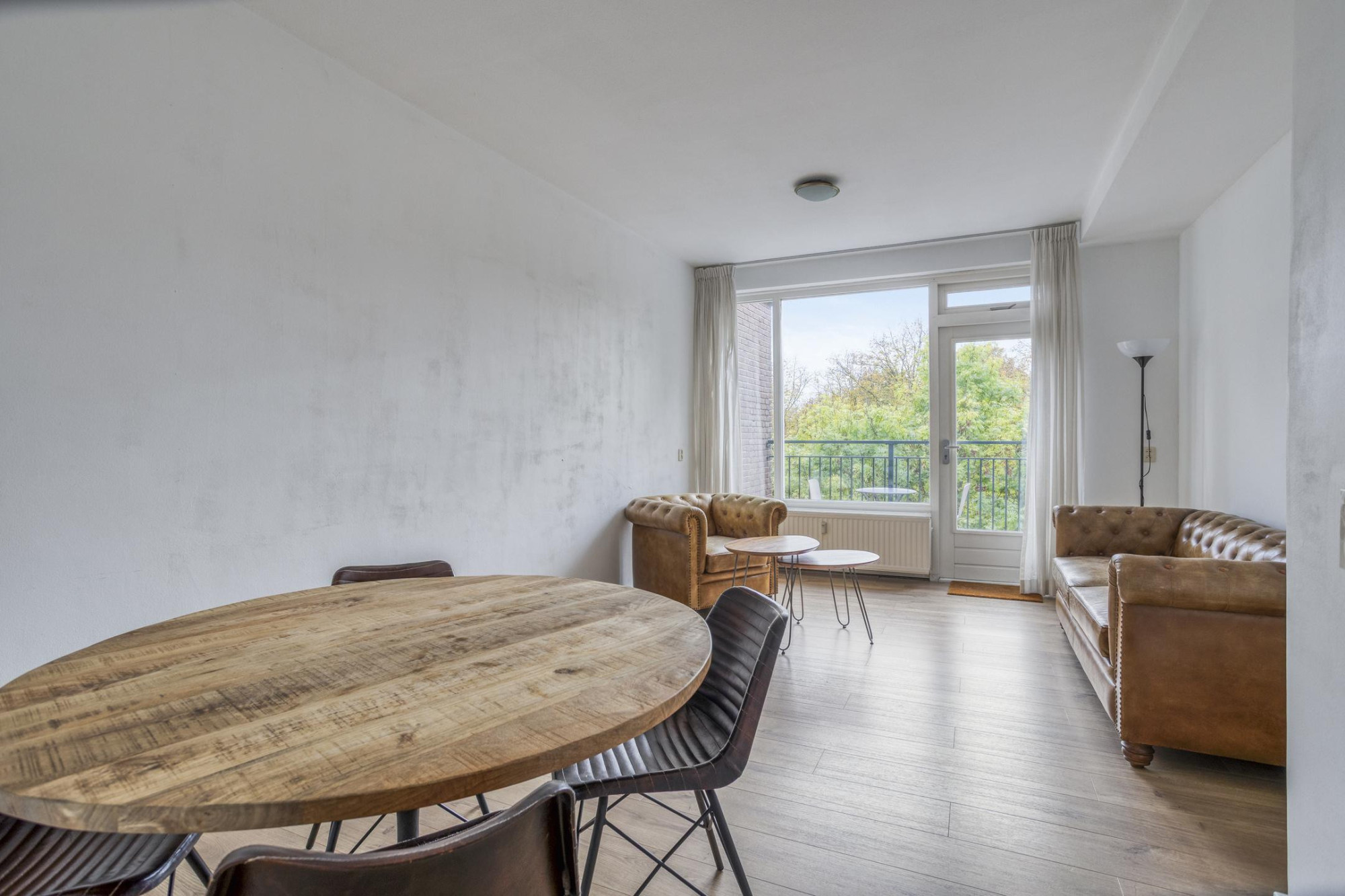 Aangenaam lichte woonkamer met voldoende ruimte voor zowel een gezellige zithoek als een eethoek. De woonkamer biedt toegang tot het balkon, dat gunstig gelegen is op het zuidwesten. Hier geniet u van de middag- en avondzon – de perfecte plek om te ontspannen na een drukke dag.