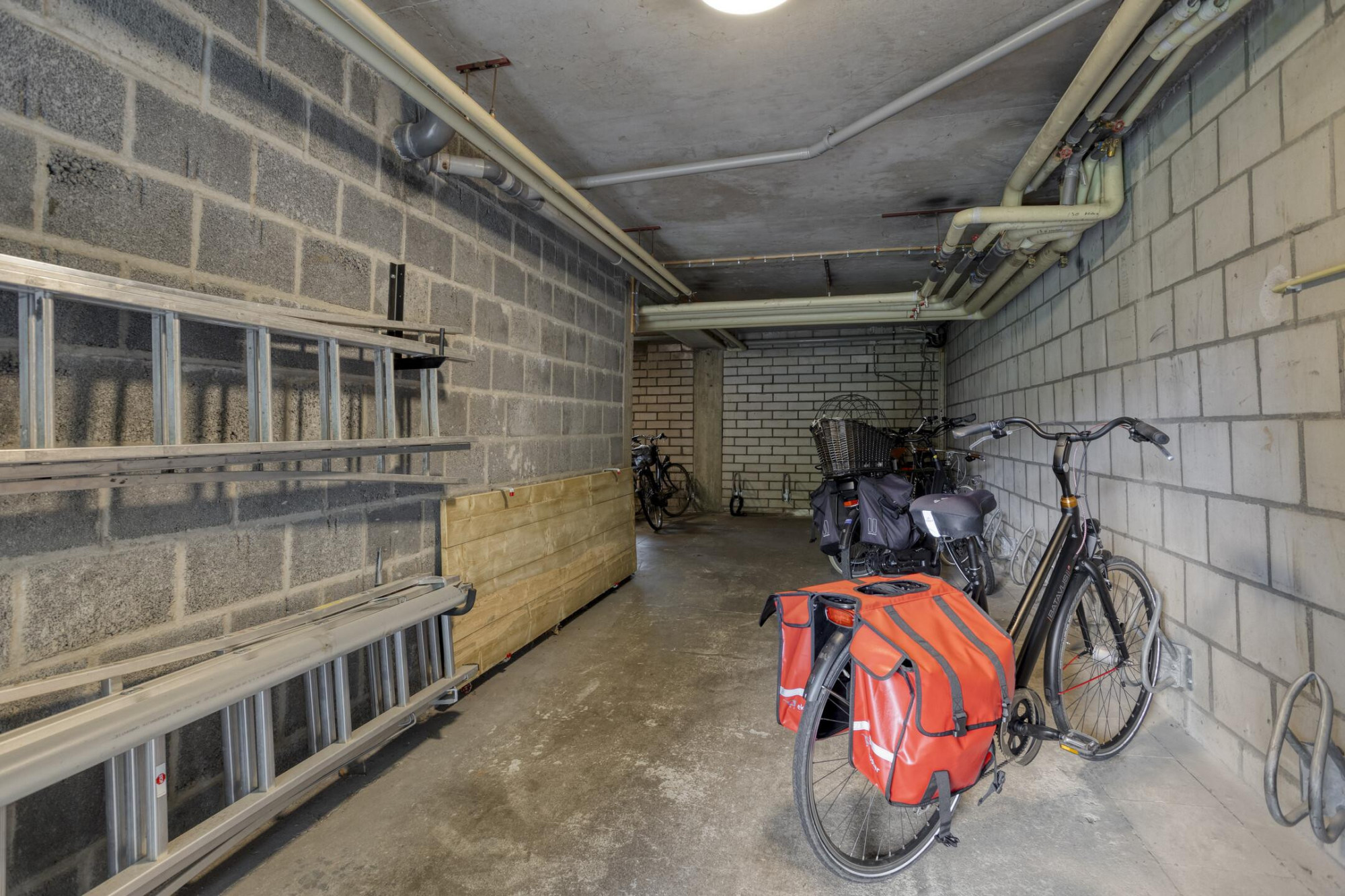 Gesloten gemeenschappelijke entree met brievenbussen en bellentableau. Centrale hal met trappenhuis en liftinstallatie naar de etages. Afgesloten binnenterrein met gemeenschappelijke fietsenberging en de bij het appartement behorende privé-berging (ca. 5 m²).