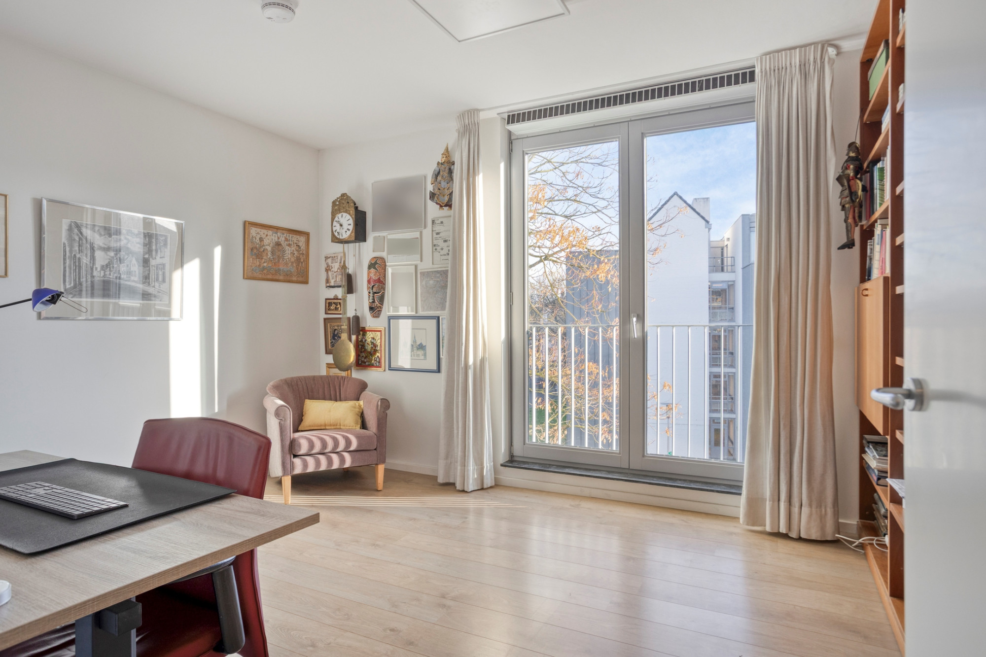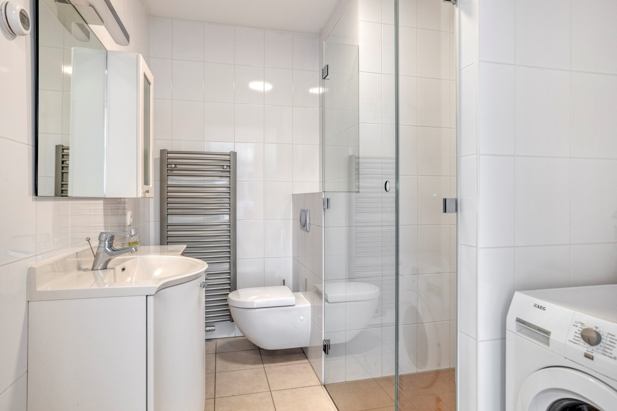 Het ruime balkon (19m²), gelegen op het zuidoosten, is bereikbaar via twee schuifpuien vanuit de woonkamer en is voorzien van een elektrisch bedienbaar zonnescherm en warmtelampen, zodat u hier het hele jaar door comfortabel buiten kunt zitten; of het nu voor de ochtendzon is of een lange zomeravond.