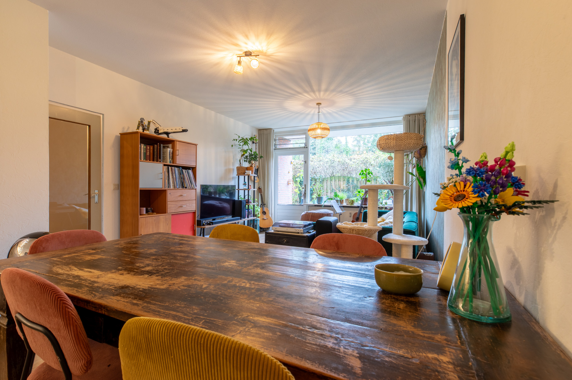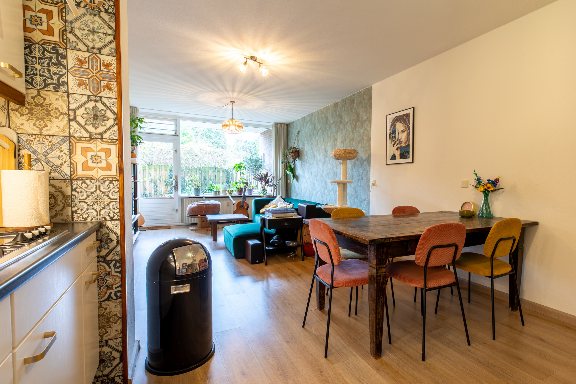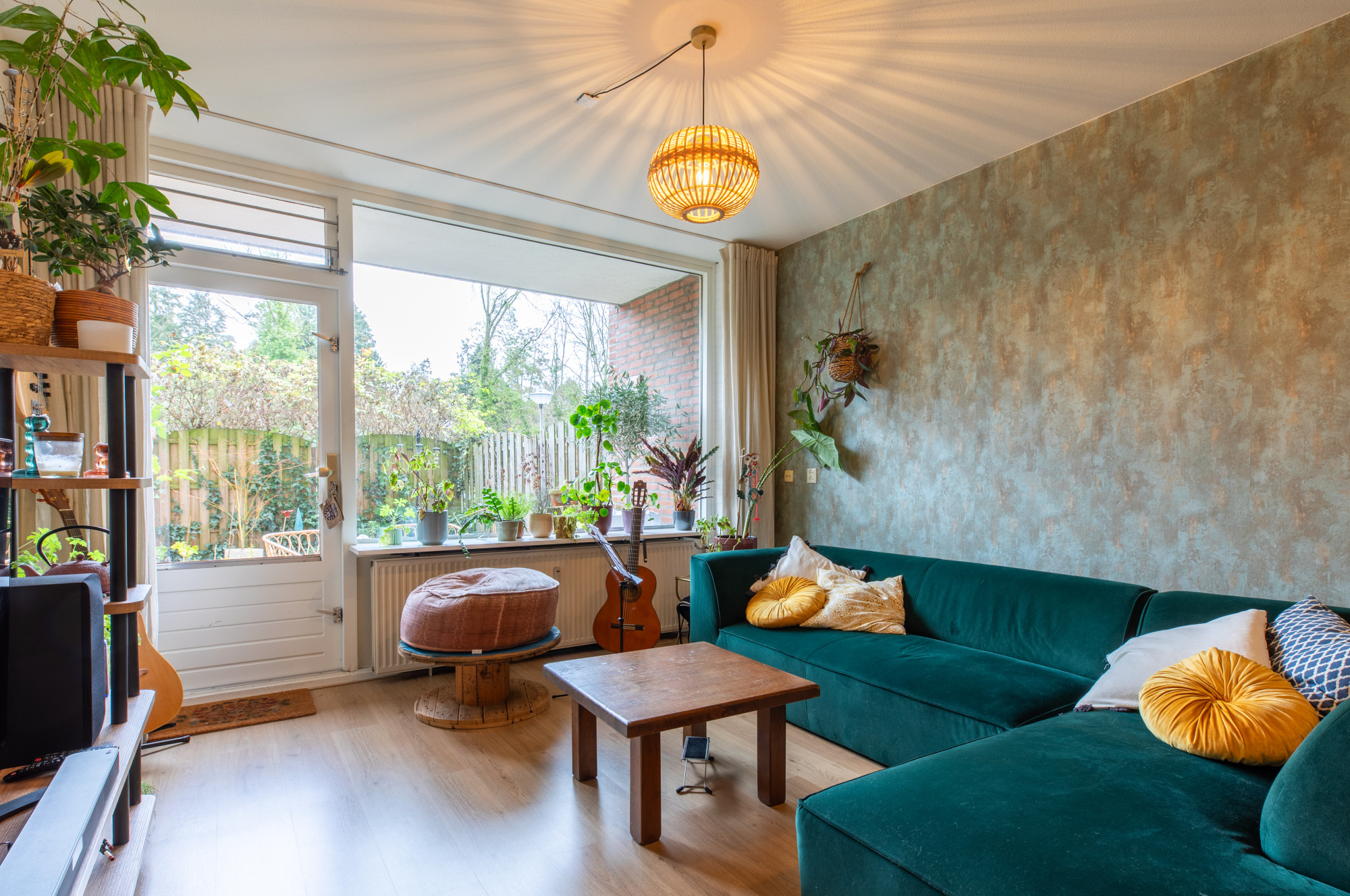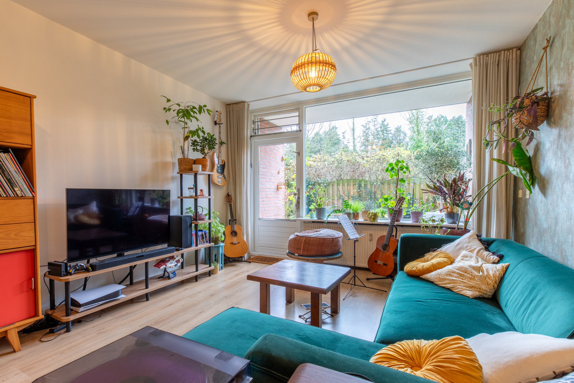 - Ruime en lichte woonkamer met open keuken (ca. 30 m²) met toegang naar de tuin.