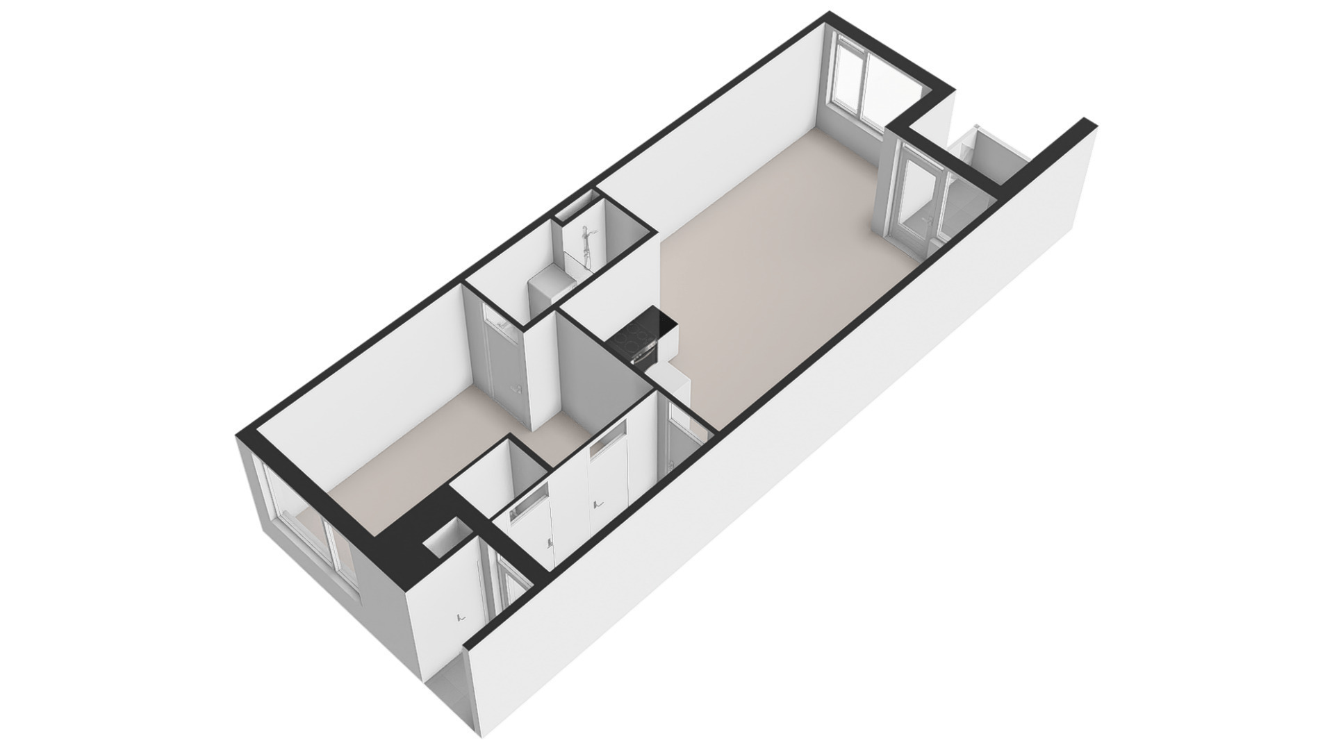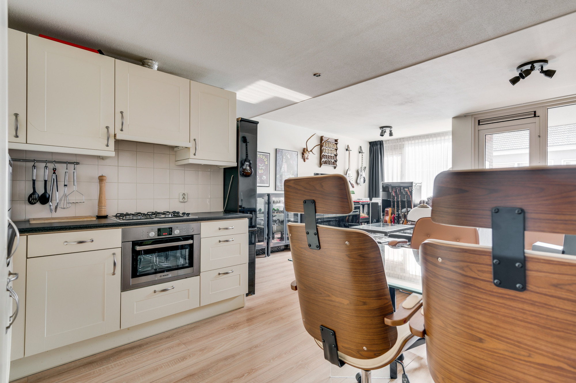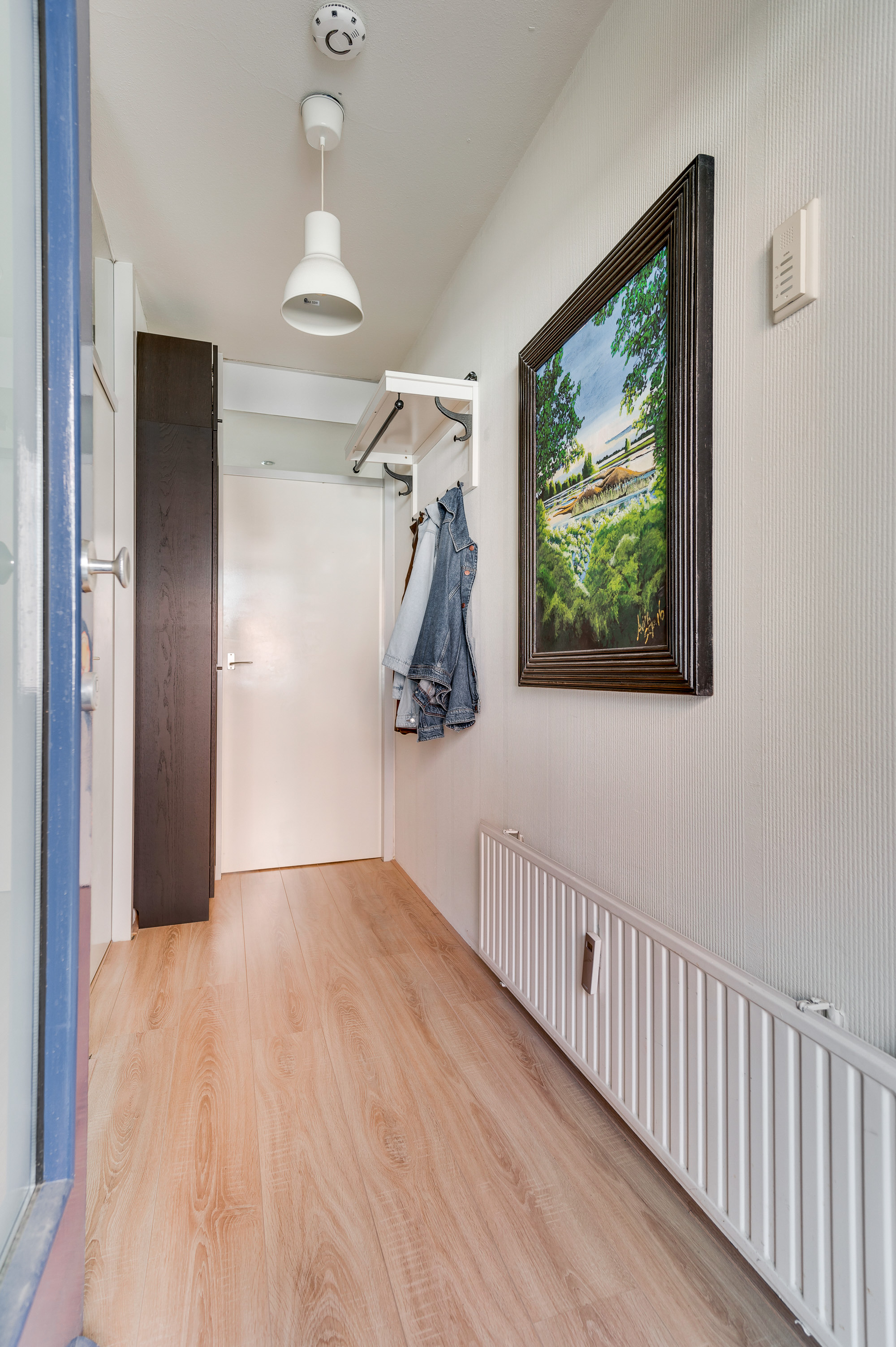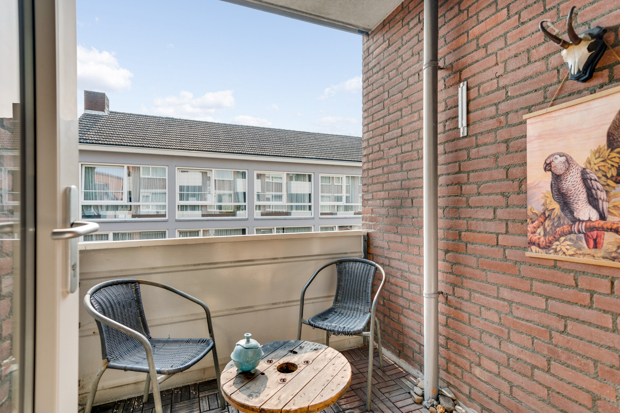Het appartement bevindt zich op de eerste verdieping en verwelkomt je via een hal met de meterkast die toegang biedt tot de verschillende vertrekken. De woonkamer is ingedeeld met een zit- en eethoek en profiteert van veel natuurlijk licht dankzij de grote ramen. Vanuit de woonkamer bereik je het balkon, een aangename buitenruimte met voldoende ruimte. De keuken welke in open verbinding met de woonkamer staat, is netjes afgewerkt en voorzien van diverse (inbouw)apparatuur, waaronder een 4-pits gasfornuis, afzuigkap, combi-oven, vaatwasser en een koel-/vriescombinatie. De lichte slaapkamer grenst aan de galerijzijde en biedt directe toegang tot de badkamer, die is uitgerust met een douche, wastafel met meubel en een aansluiting voor de wasmachine. Daarnaast beschikt het appartement over een apart toilet, bereikbaar vanuit de hal. Het appartement is grotendeels voorzien van een laminaatvloer.