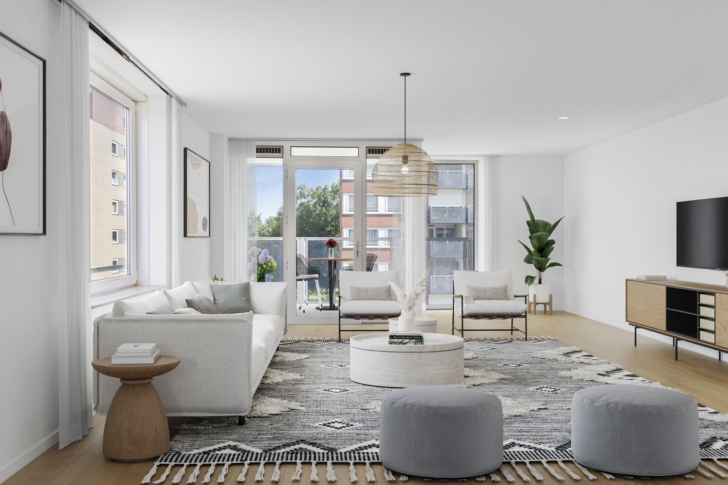 Verder beschikt het appartement over twee lichte slaapkamers met oppervlaktes van 12 m² en 8,5 m².