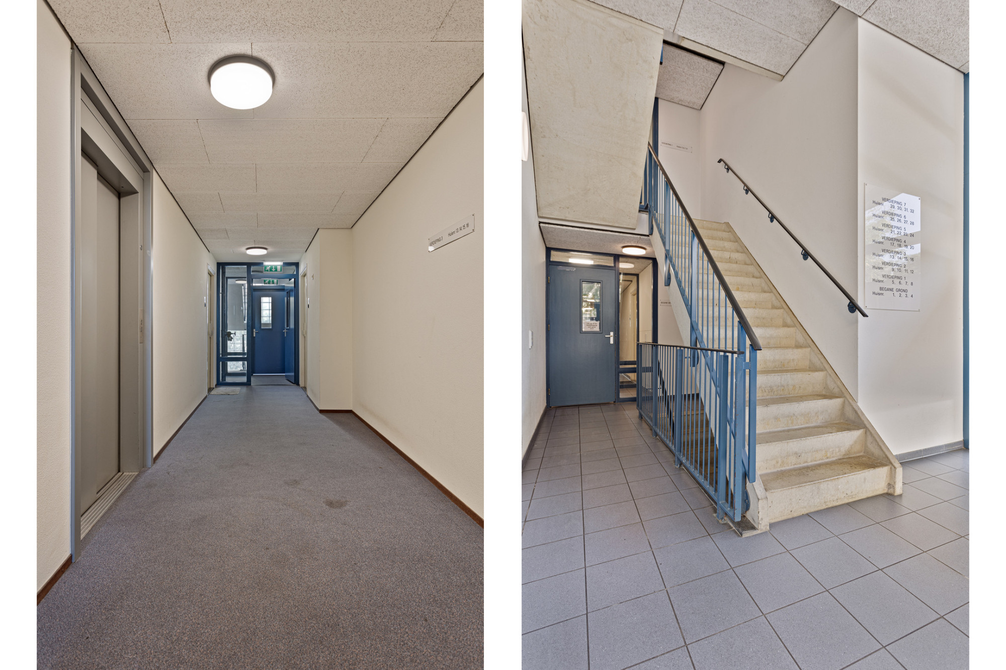 Je komt binnen in een ruime centrale entree waar de brievenbussen en het bellentableau zich bevinden. De corridorflat is uitgerust met een lift die je snel naar de 4e woonlaag brengt. Daar treft u dit hoek-appartement.