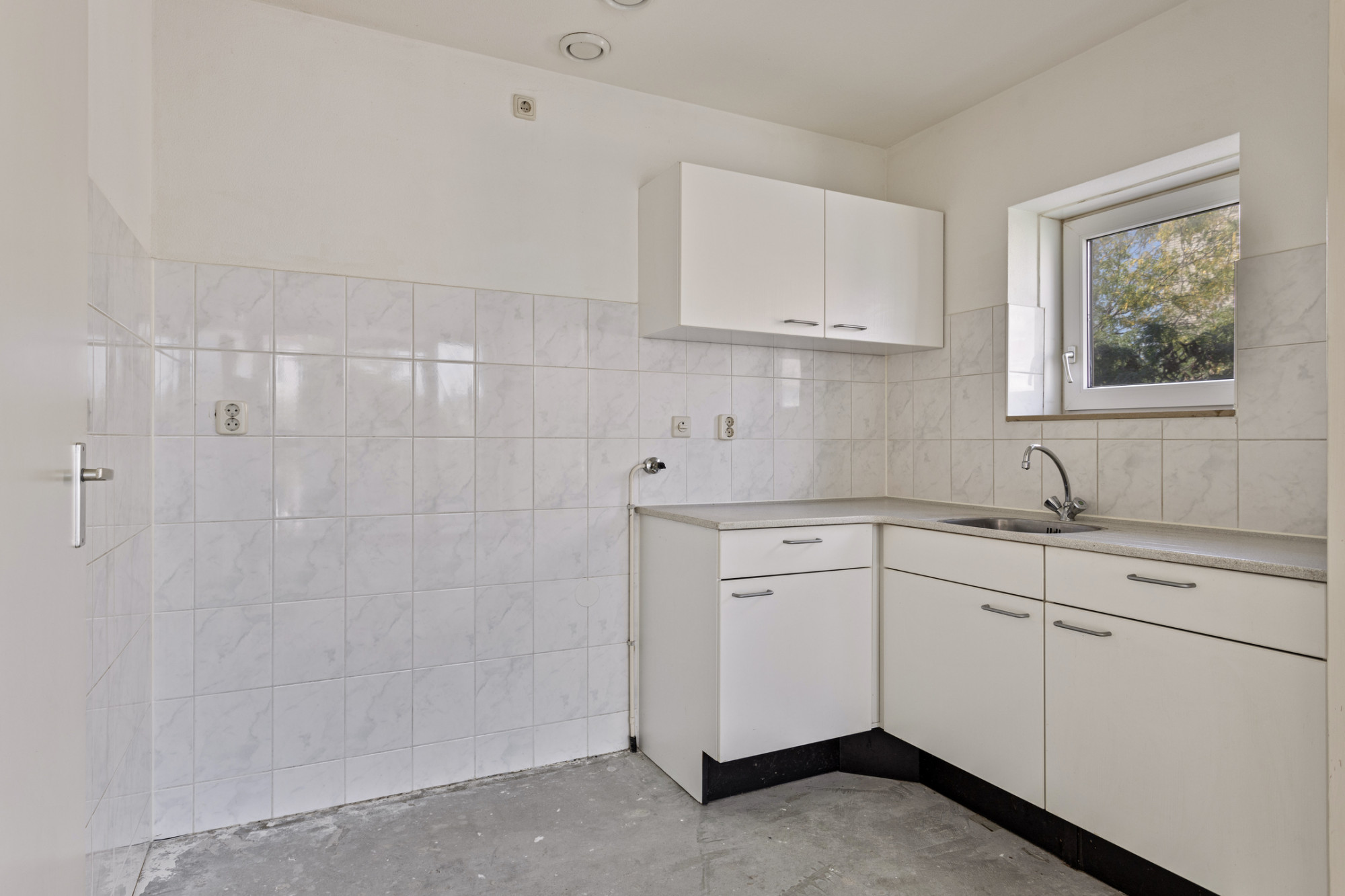 De entree met meterkast en toiletruimte geeft toegang tot alle ruimtes die het appartement te bieden heeft. In de ruime, lichte woonkamer is voldoende ruimte voor een comfortabele zit-en eethoek. De balkondeur geeft toegang tot het overdekte balkon gelegen op het oosten. Op het balkon heb je een prachtig uitzicht over het parkachtige binnenterrein en de Maasnielderbeek.