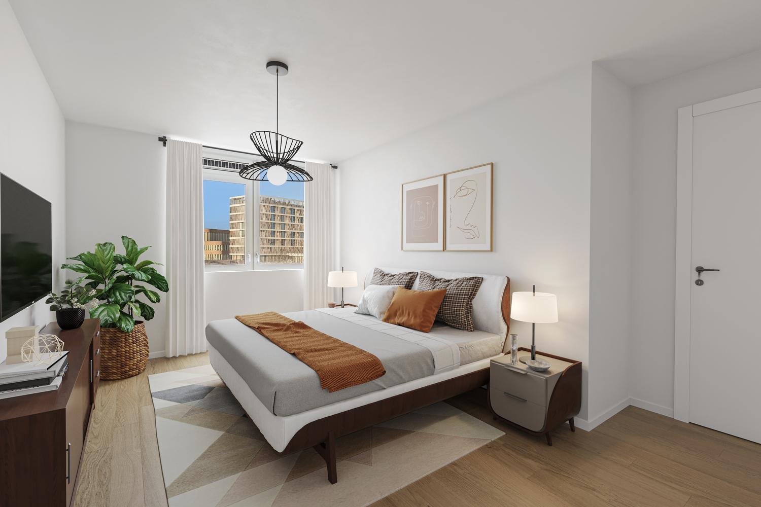 Het appartement beschikt over twee slaapkamers, met oppervlaktes van circa 15m² en 7m², ideaal voor een hoofdslaapkamer en een extra kamer voor gasten of werkruimte.