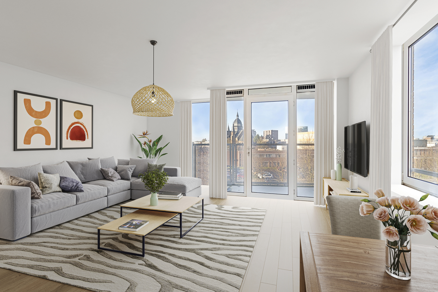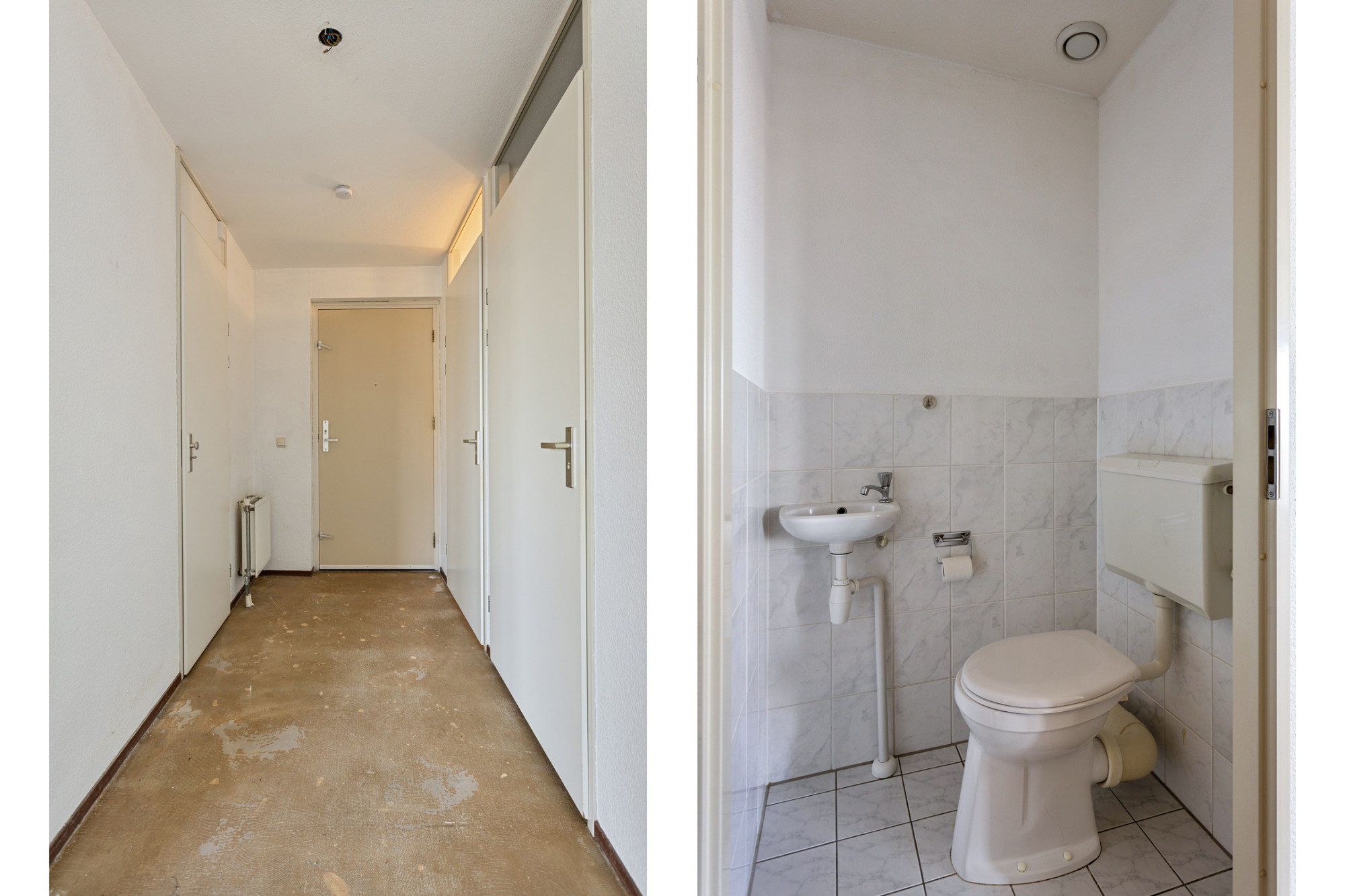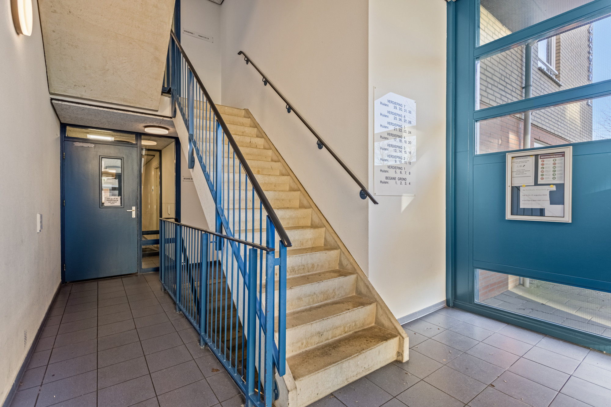 Bij binnenkomst in het complex word je verwelkomd in een nette, centrale entree met brievenbussen en een bellentableau. Via de lift of het trappenhuis bereik je de vierde woonlaag, waar dit hoekappartement zich bevindt.