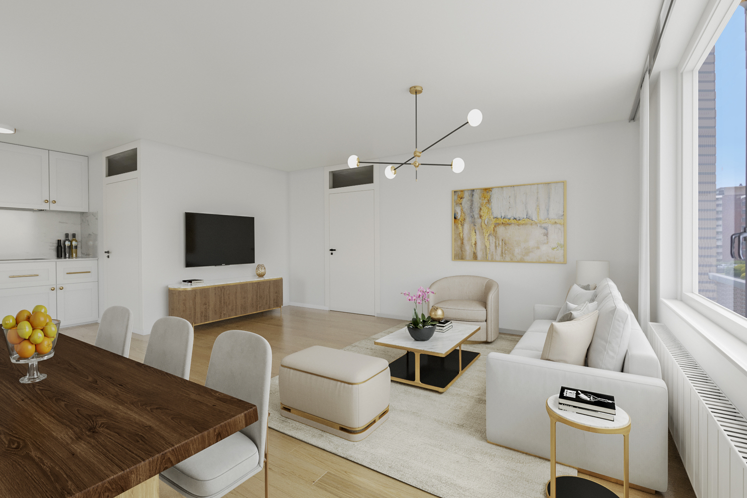 • Woonkamer & keuken: De lichte en ruime woonkamer biedt een fijne leefruimte met directe toegang tot het zonnige balkon op het zuiden (10 m²). De keuken staat direct in verbinding met de woonkamer. Daarnaast is er een aangrenzende berging met cv-installatie (Remeha Avanta, 2009) en mechanische ventilatie-unit.