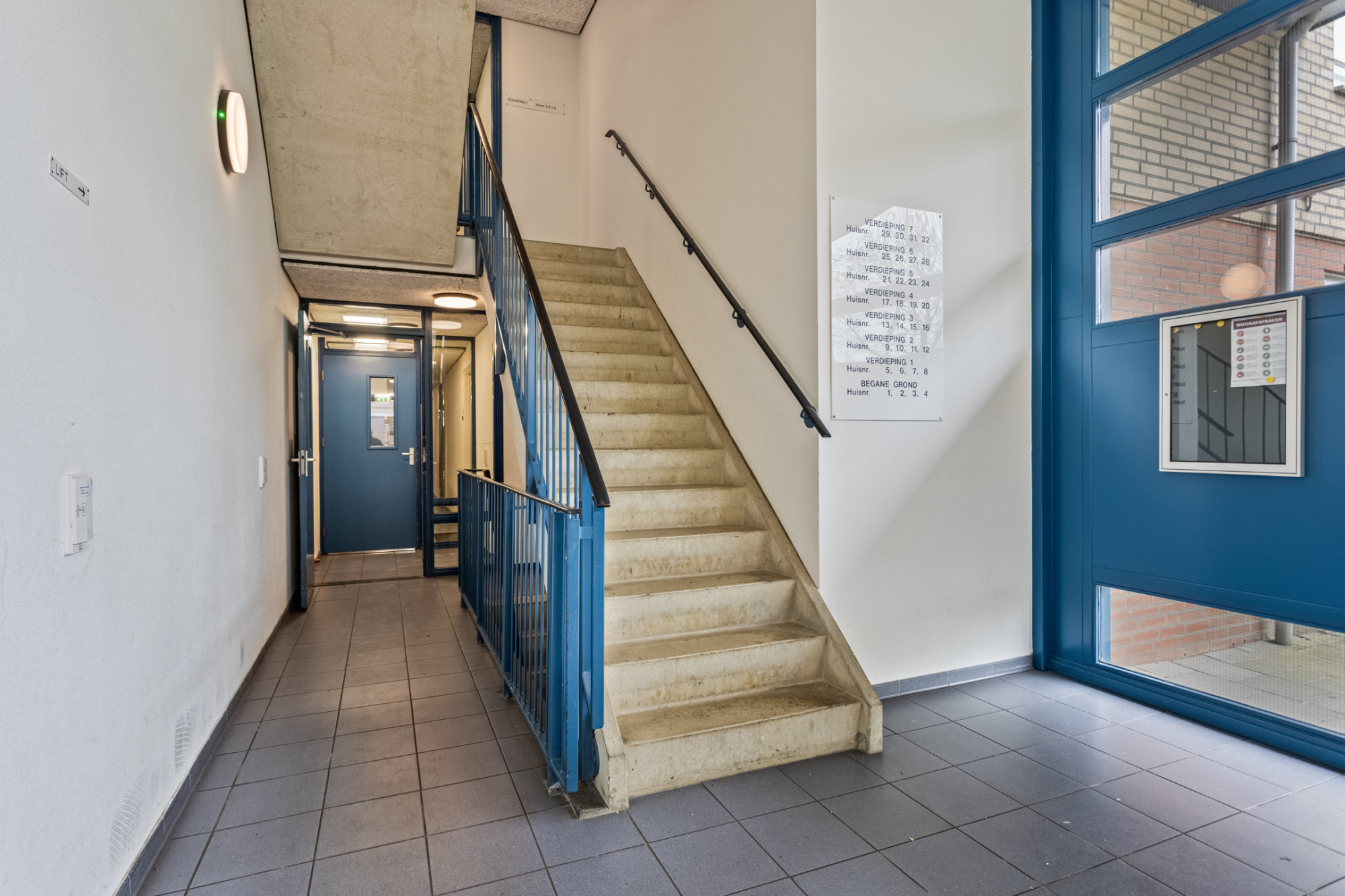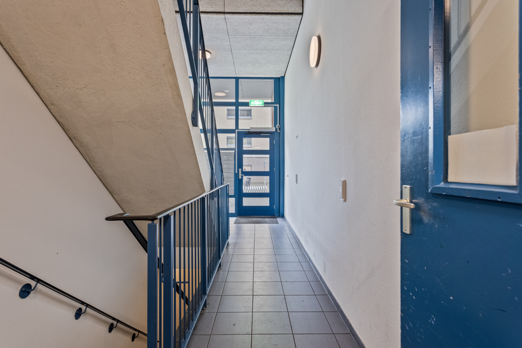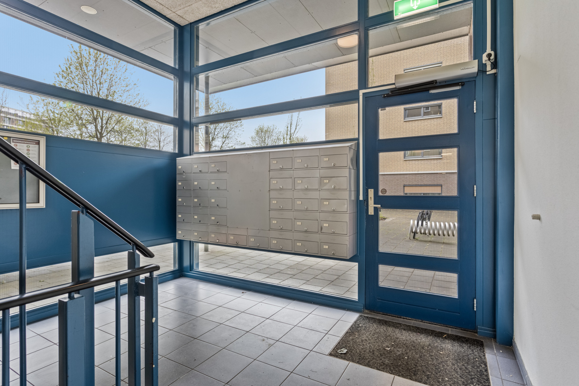 Bij binnenkomst in het complex word u verwelkomd in een nette centrale entree met brievenbussen en een bellentableau. Via de lift of het trappenhuis bereikt u de derde woonlaag, waar dit hoekappartement zich bevindt.