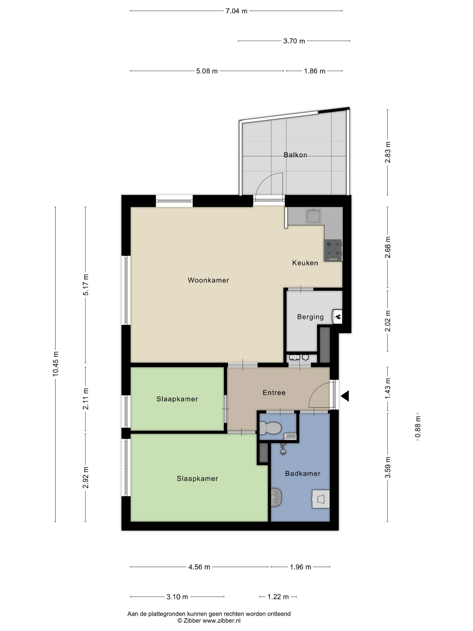 • Slaapkamers: Het appartement beschikt over twee slaapkamers, de hoofdslaapkamer van ca. 13 m² en een kleinere kamer van ca. 7 m², perfect als logeerkamer, werkruimte of hobbykamer.