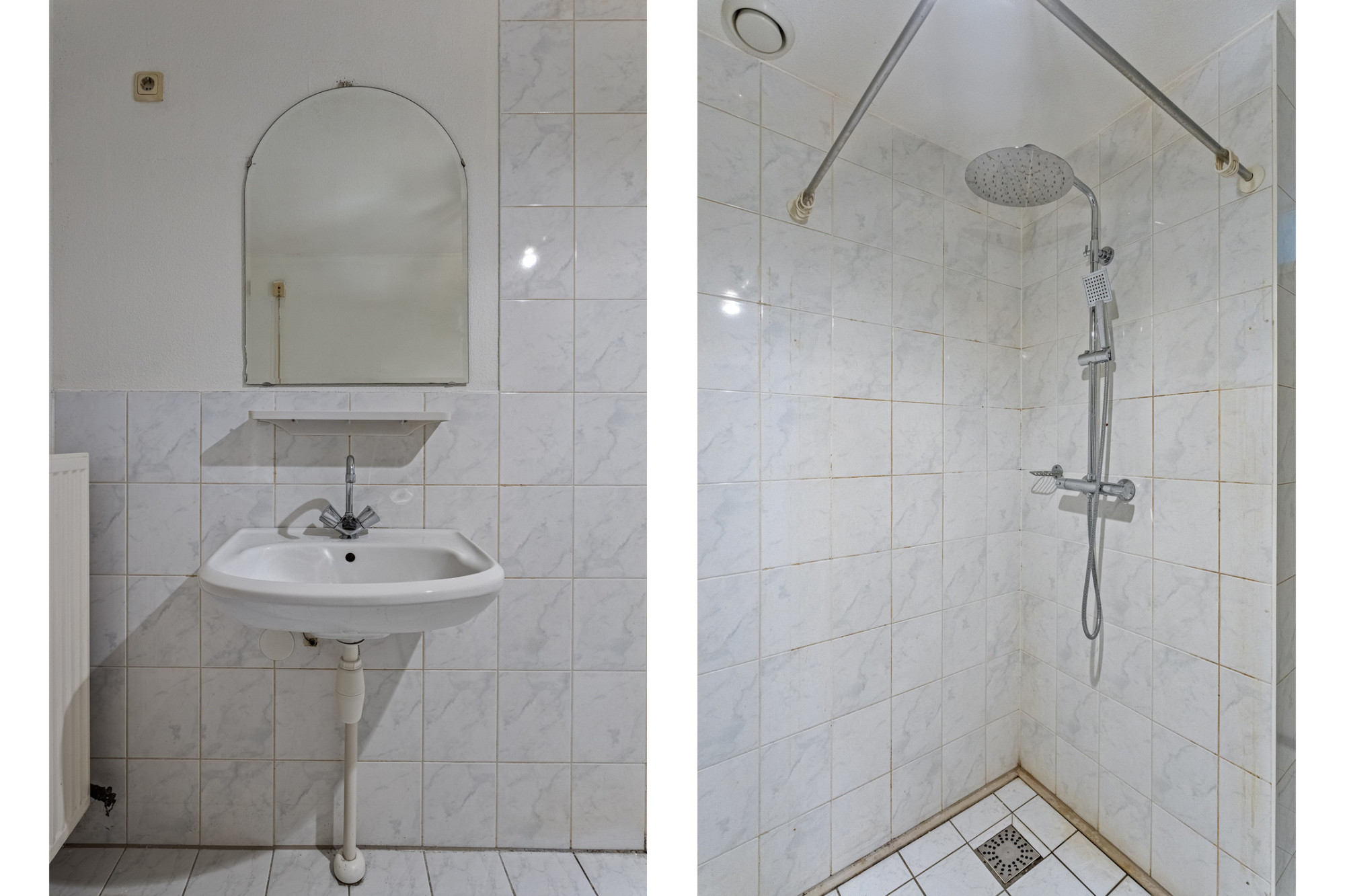 • Badkamer: De badkamer is uitgerust met een inloopdouche, wastafel en aansluitingen voor een wasmachine en droger. Het separate toilet is te bereiken vanuit de hal.