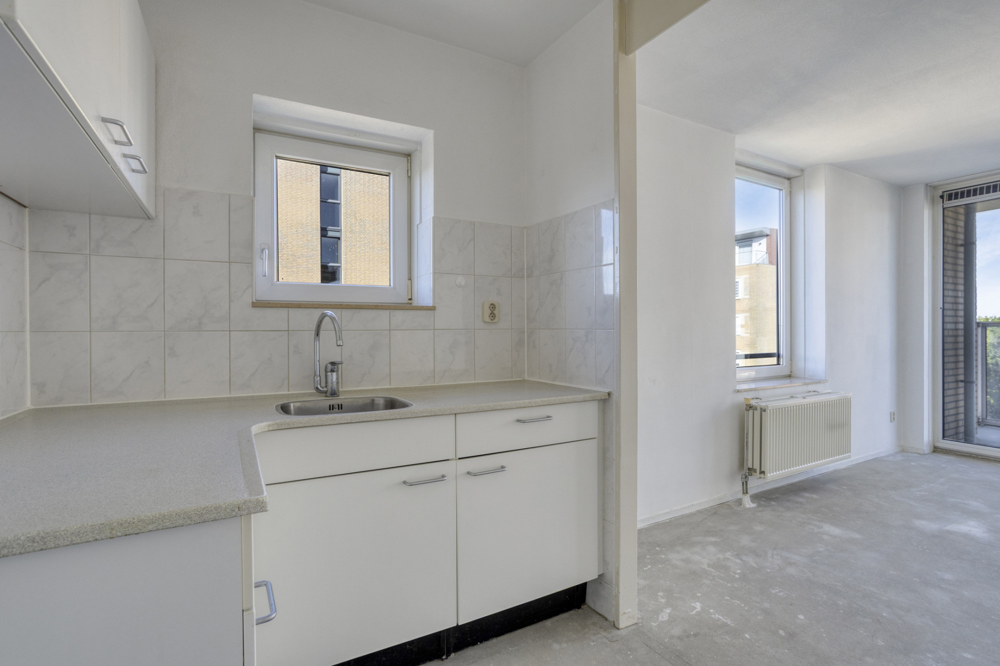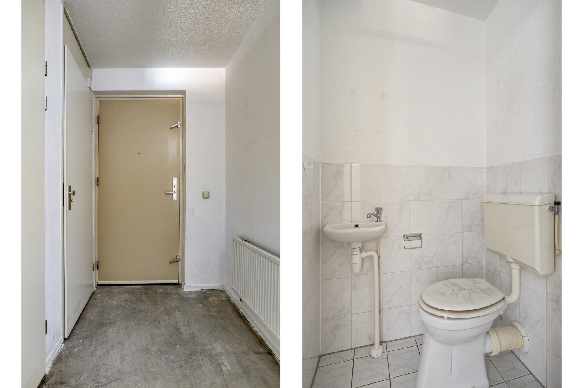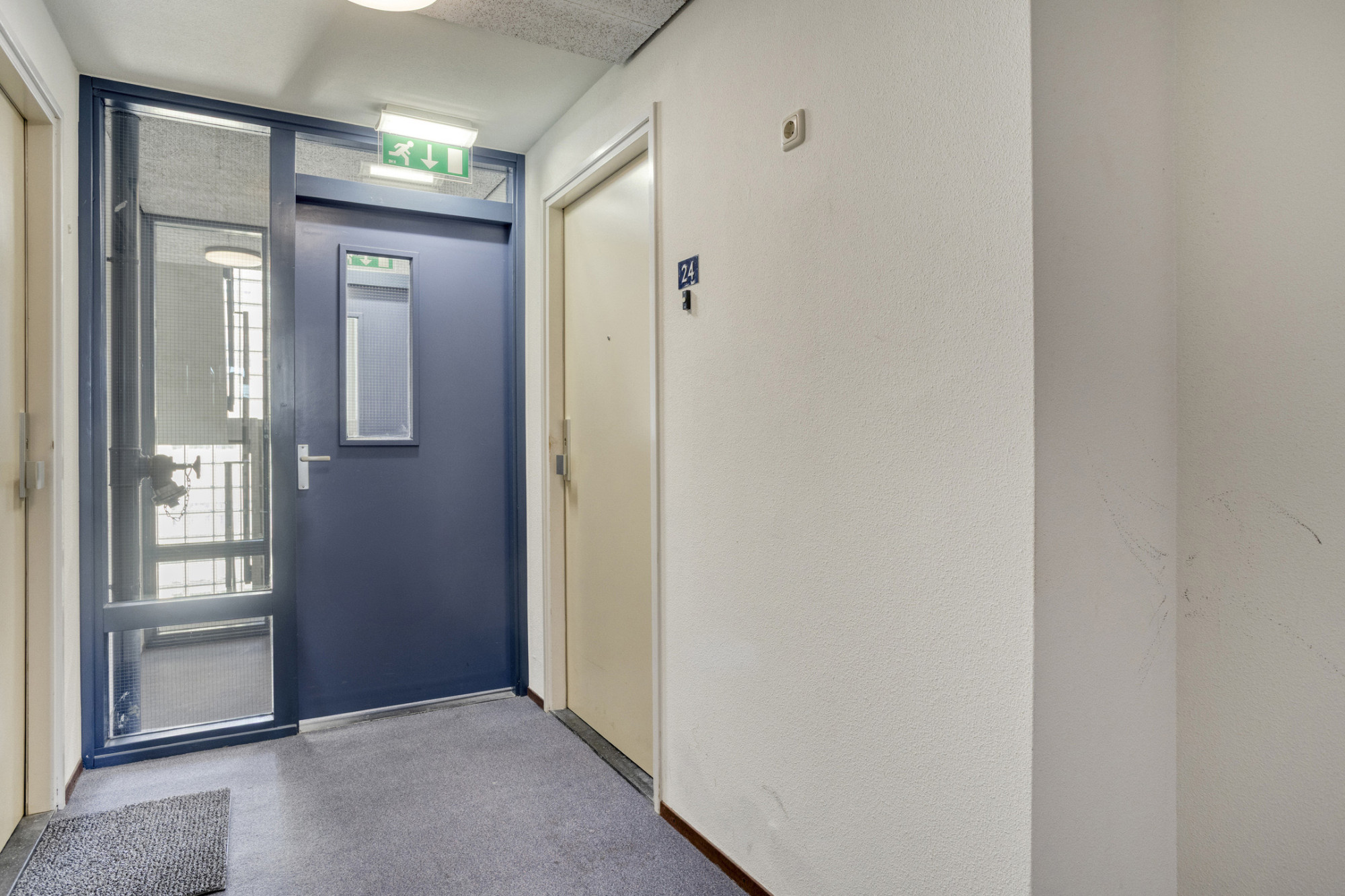 Bij binnenkomst in het complex word u verwelkomd in een nette centrale entree met brievenbussen en een bellentableau. Via de lift of het trappenhuis bereikt u de zesde woonlaag, waar dit hoek appartement zich bevindt.