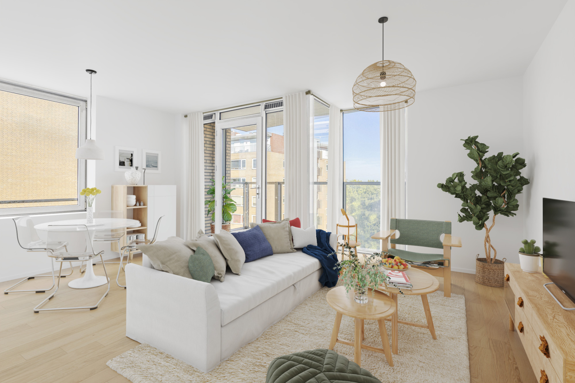 • Woonkamer & keuken: De lichte en ruime woonkamer biedt een fijne leefruimte met directe toegang tot het zonnige balkon op het oosten (5 m²). De keuken staat direct in verbinding met de woonkamer. Daarnaast is er een aangrenzende berging met cv-installatie (Remeha Avanta, 2009) en mechanische ventilatie-unit.