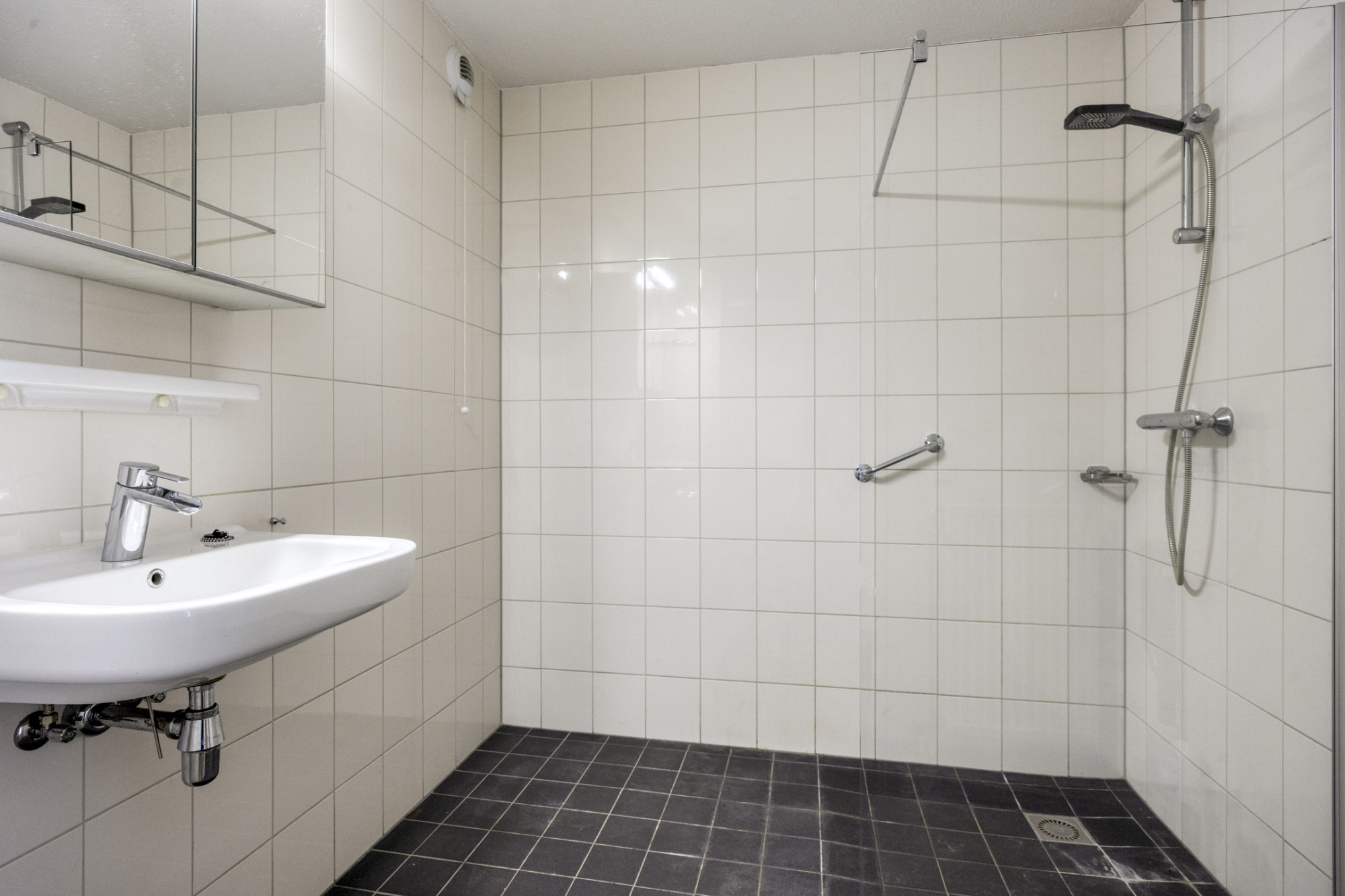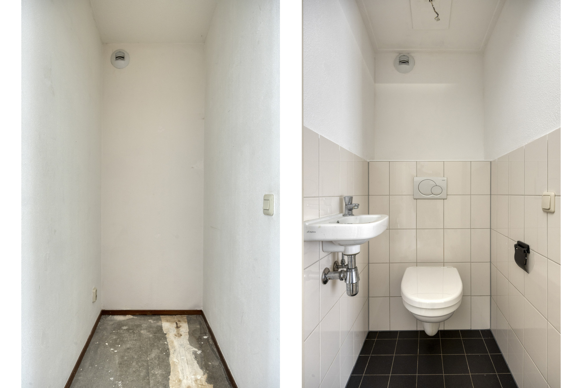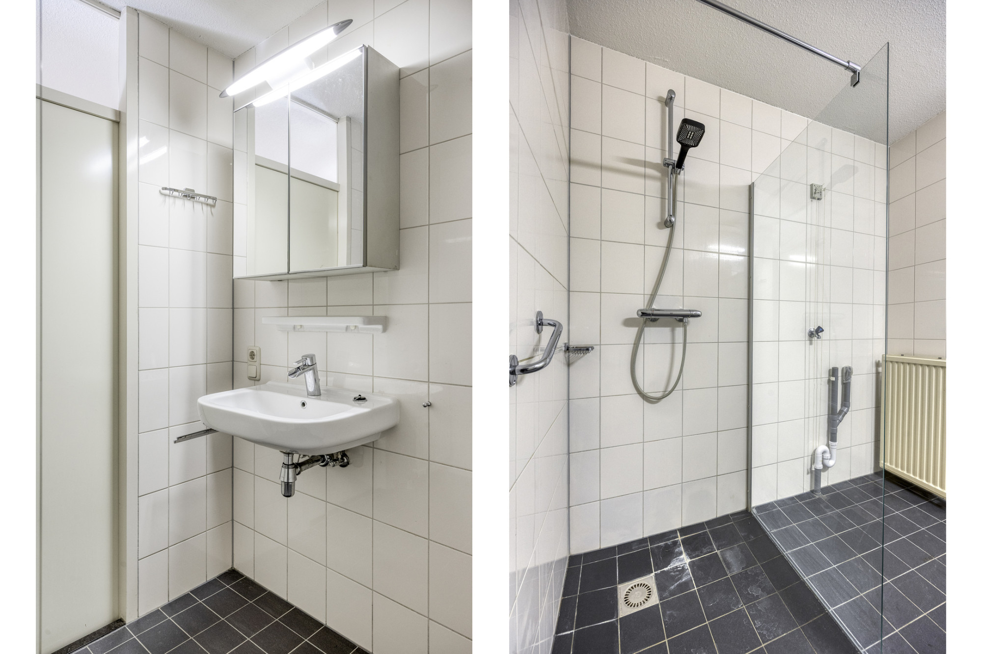 - Badkamer en toilet zijn (deels) betegeld.