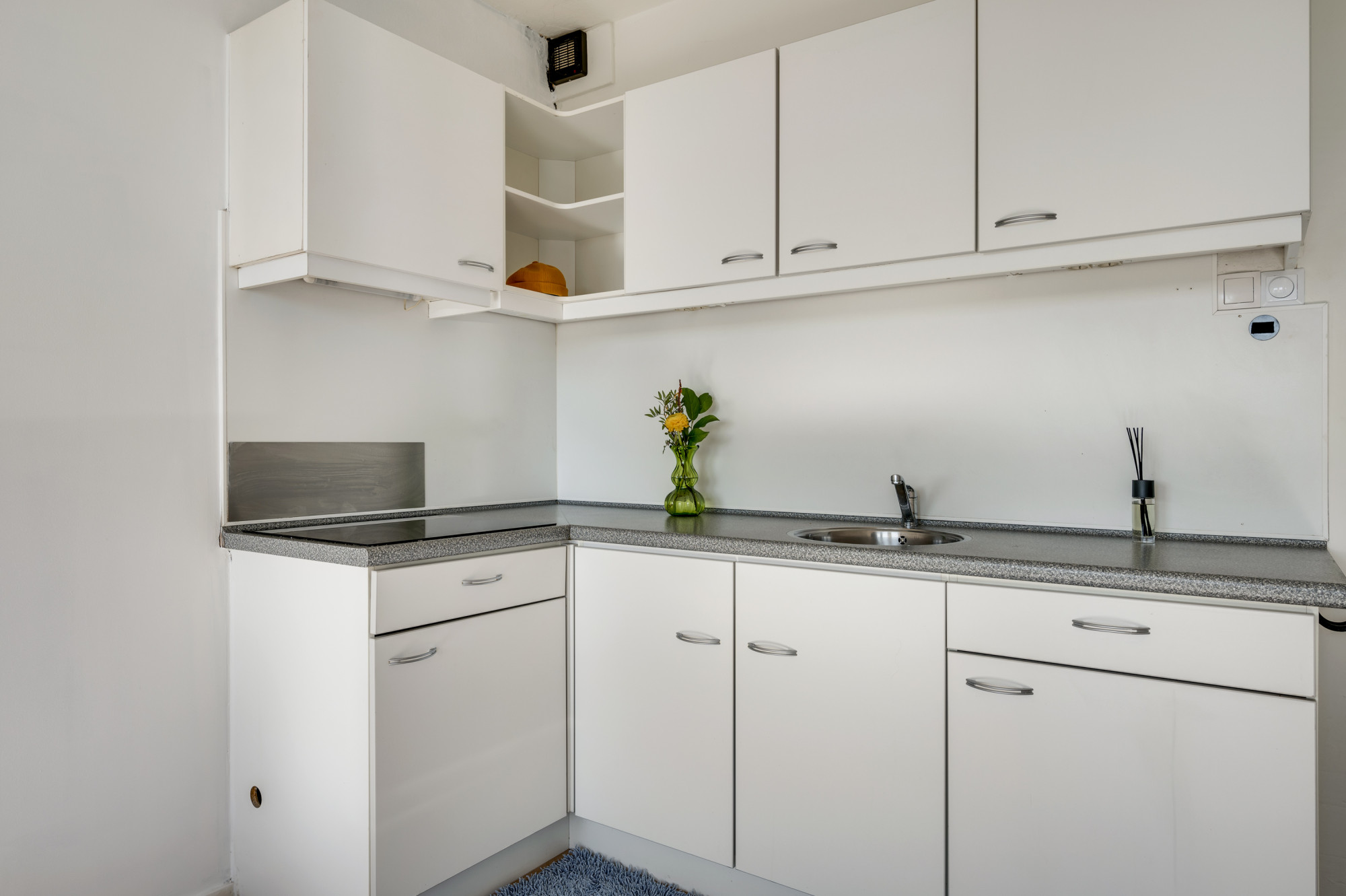 Het appartement beschikt over een praktische indeling. De hal geeft toegang tot een separate wasruimte/bijkeuken (ook te gebruiken als hobbykamertje) met aansluitingen voor witgoed en de opstelling van de elektrische boiler. De deels betegelde toiletruimte en aparte doucheruimte met douche en wastafel bieden functioneel gemak. De lichte woonkamer met open keuken is voorzien van een combinatie in hoekopstelling, voorzien van een inductiekookplaat. Vanuit de woonkamer is er praktisch toegang tot het balkon aan de achterzijde met heerlijk vrij zicht. De ruime slaapkamer, gelegen aan de galerijzijde, biedt voldoende mogelijkheden voor een comfortabele inrichting. Het appartement is grotendeels voorzien van een laminaatvloer.