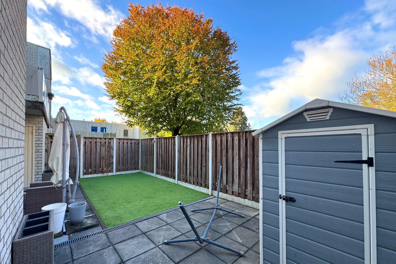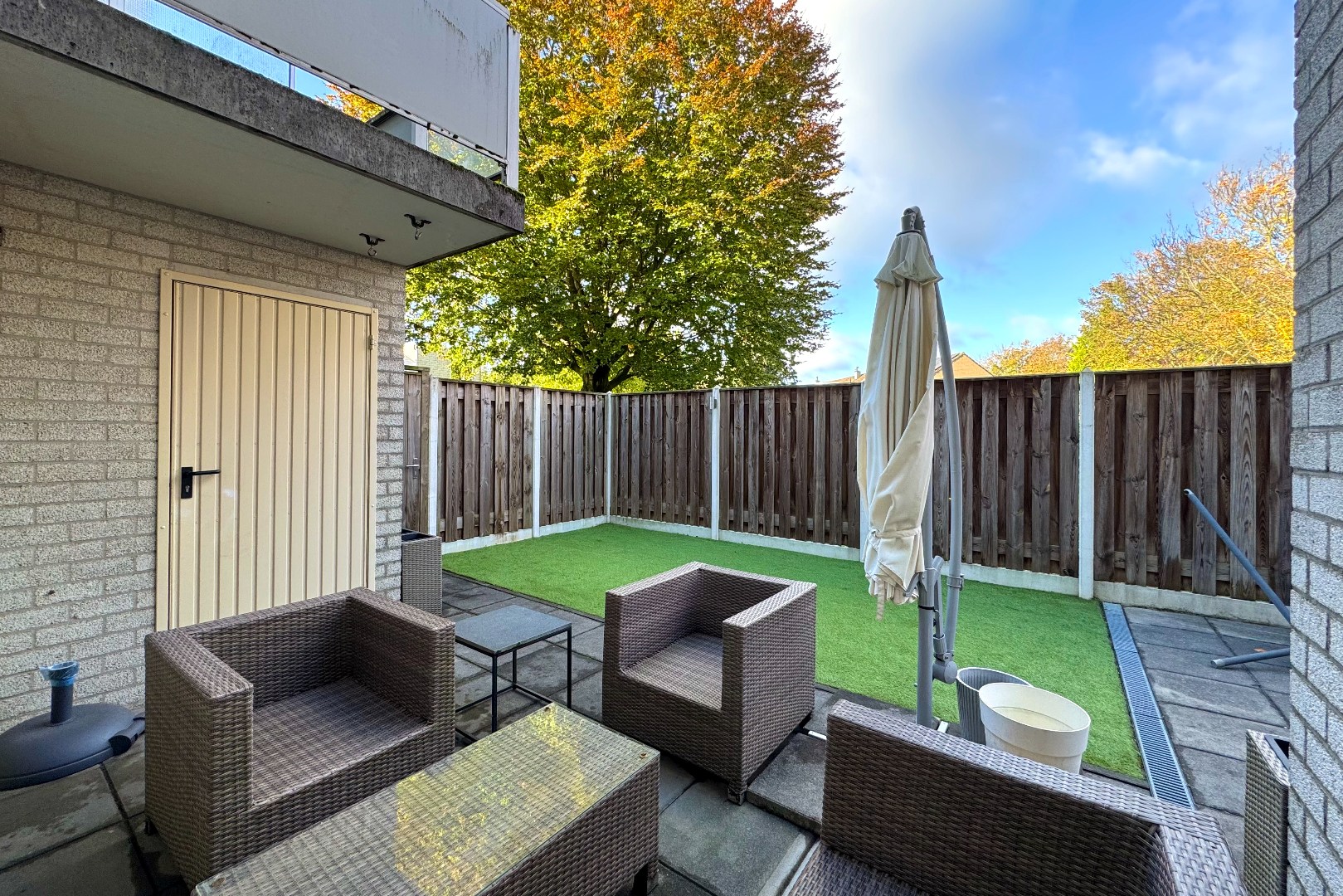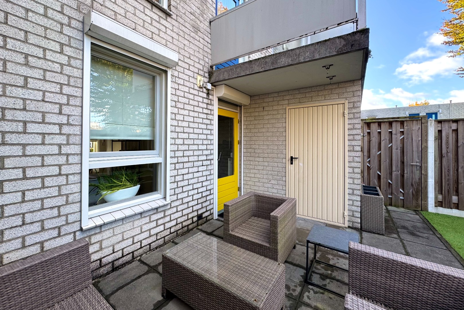 Het bijzondere aan dit appartement is dat dit appartement een eigen achtergelegen tuin heeft. Deze tuin is op het westen gesitueerd en beschikt over een fijn terras, kunstgras gazon en een achterom. Tevens is er zowel een stenen buitenberging (2.22m x 1.65m) als een tuinhuis aanwezig.