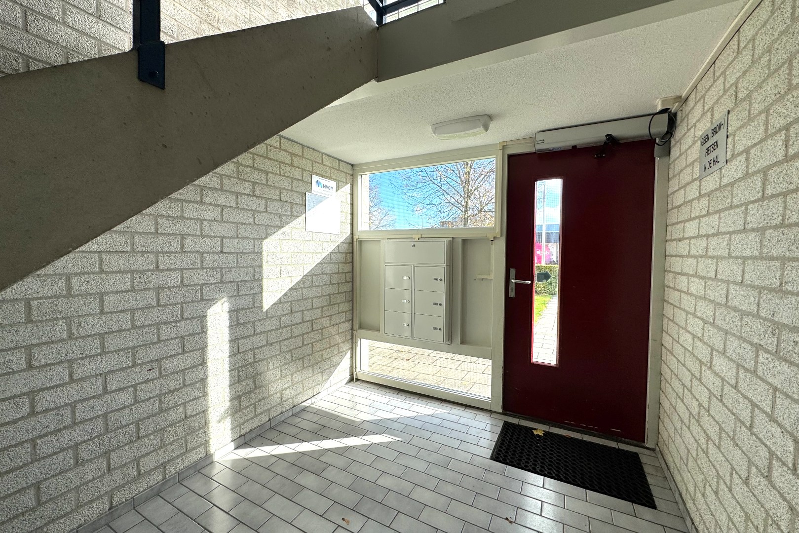Wanneer men de voordeur opent dan treedt men de hal/entree binnen. Het gehele appartement, m.u.v. de badkamer, is afgewerkt met een laminaatvloer. De hal/entree (1.46m x 1.46m) biedt vervolgens toegang tot de woonkamer. De ruime L-vormige woonkamer (30m2) heeft aan de voorzijde een deur naar het overdekte terras. Via deze woonkamer bereikt men vervolgens de keuken en het portaal. De keuken (7m2) is voorzien van een keukeninstallatie in hoeksoptelling met de volgende ingebouwde keukenapparatuur: 5-pits gaskookplaat, afzuiging, koelkast, diepvries, oven en vaatwasser. Via de keuken kan men ook de achtergelegen tuin bereiken. Het portaal (4.25m x 1.02m) biedt toegang tot de twee slaapkamers, de bijkeuken en de badkamer. Eén slaapkamer bevindt zich aan de voorzijde van de woning (4.52m x 3.01m) en de andere slaapkamer bevindt zich aan de achterzijde van de woning (3.02m x 2.80m). De geheel betegelde badkamer (2.78m x 1.90m) is voorzien van de volgende badkamerinstallaties: vaste wastafel in het badkamermeubel, wandcloset en inloopdouche met thermostaatkraan. In de bijkeuken (1.96m x 1.40m) bevinden zich o.a. de witgoedaansluitingen, de standplaats van de mechanische afzuiging en de standplaats van de cv-installatie (merk AWB, eigendom – 2014).