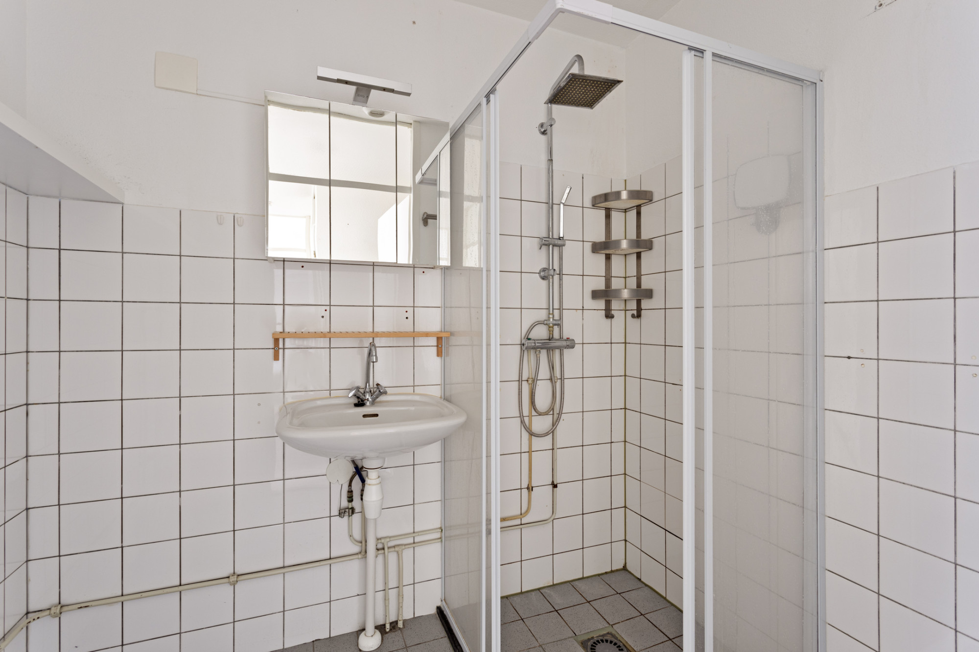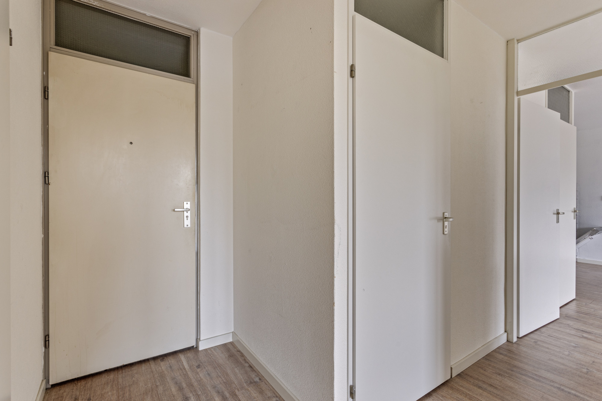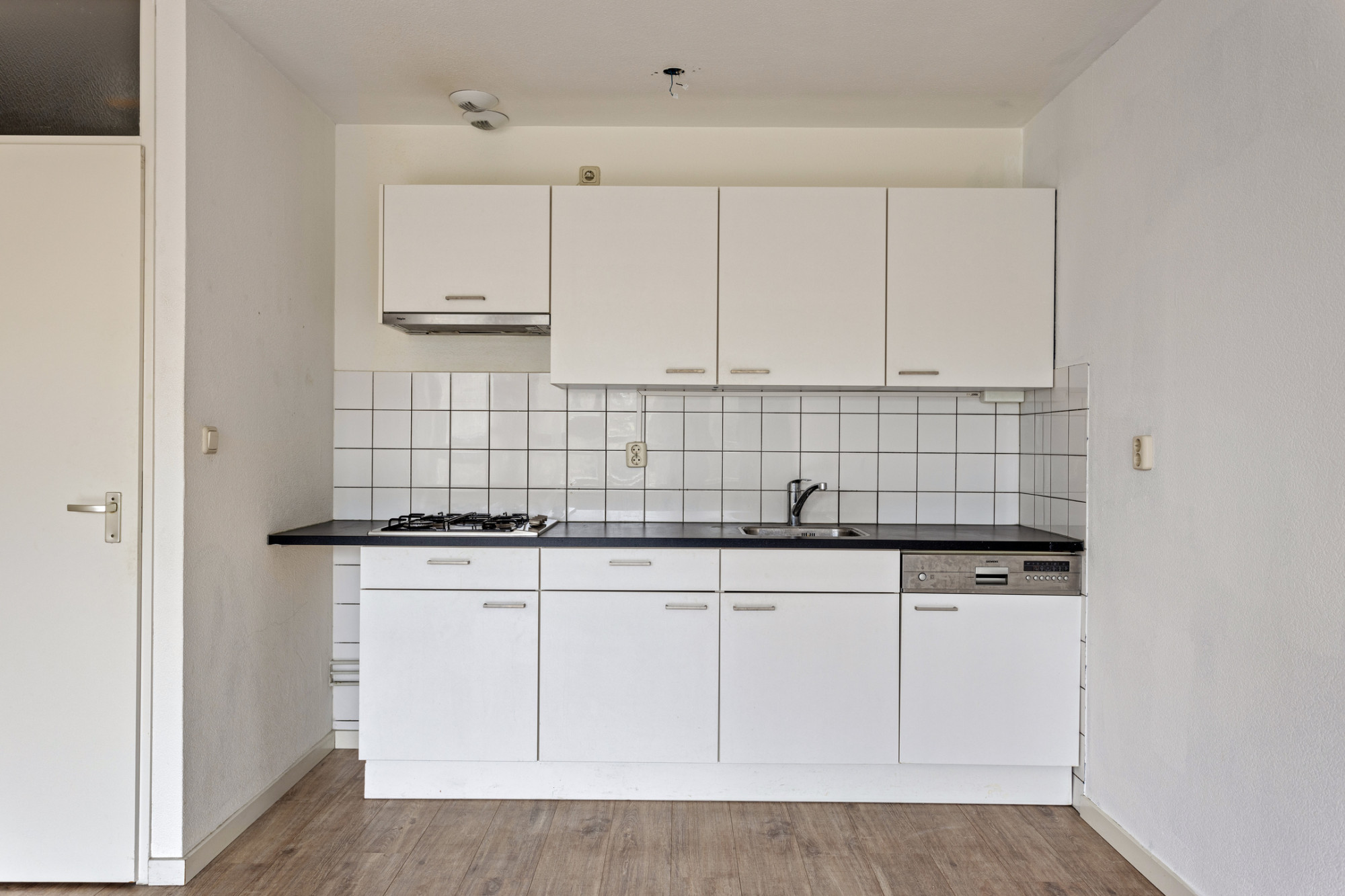 De entree met meterkast biedt toegang tot de ruime en lichte woon/eetkamer en de open keuken. Vanuit de keuken zijn via de gang de overige vertrekken bereikbaar. De badkamer en het toilet zijn geheel betegeld. In de badkamer bevindt zich een vaste wastafel en douche. Naast de badkamer bevindt zich het toilet in een aparte ruimte.