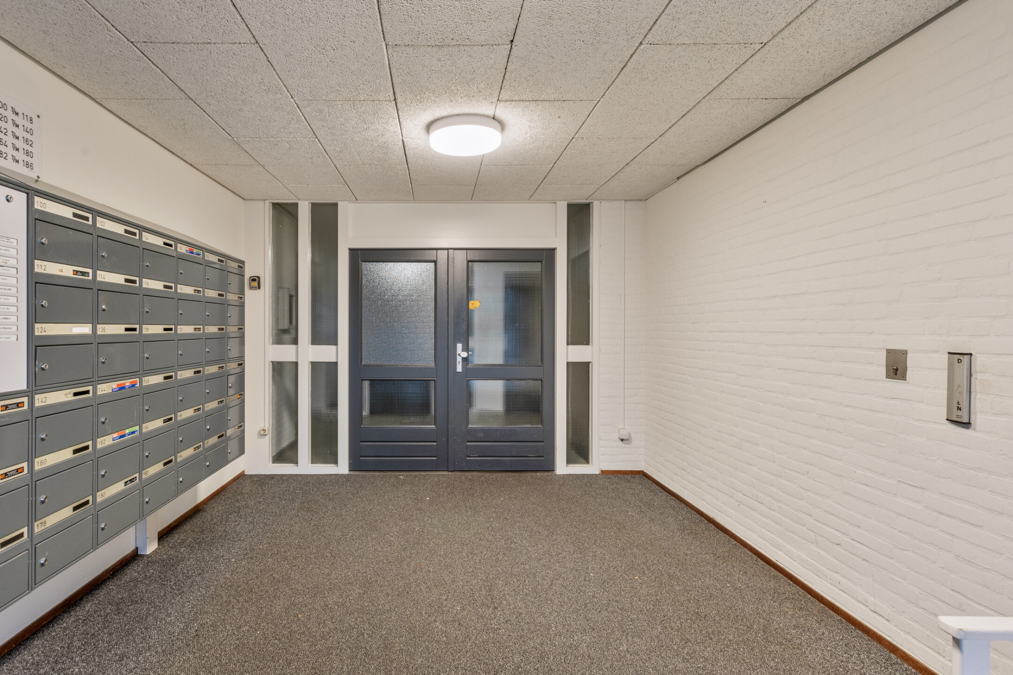 Het complex beschikt over een centrale entree met een bellentableau, brievenbussen, lift en trappenhuis. Deze voorzieningen zorgen voor gemakkelijke toegang en bieden extra gemak voor de bewoners.
