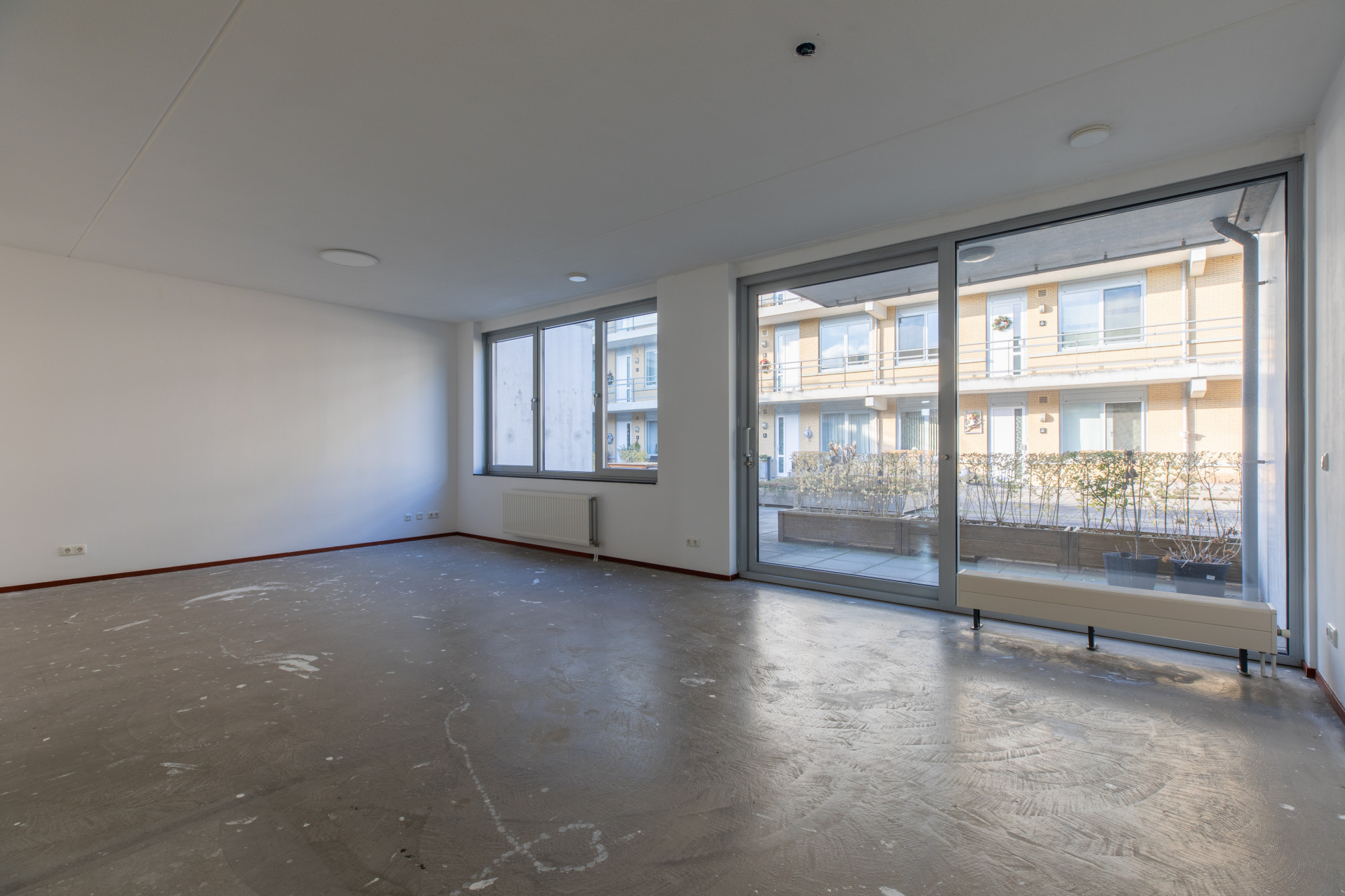 - Vanuit de woonkamer via de schuifpui toegang tot het terras van circa 19 m², rustig gelegen aan de binnenplaats van het complex.