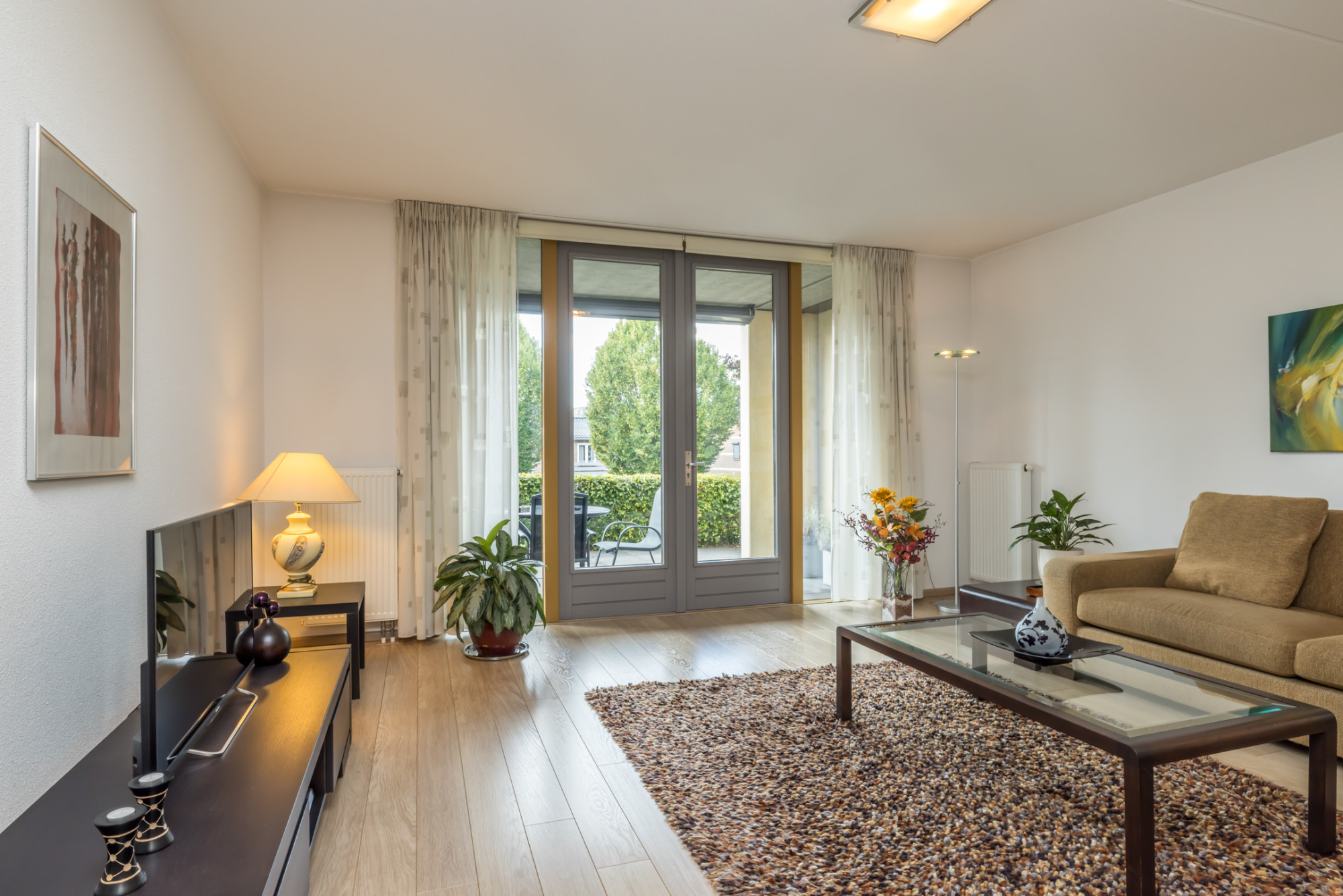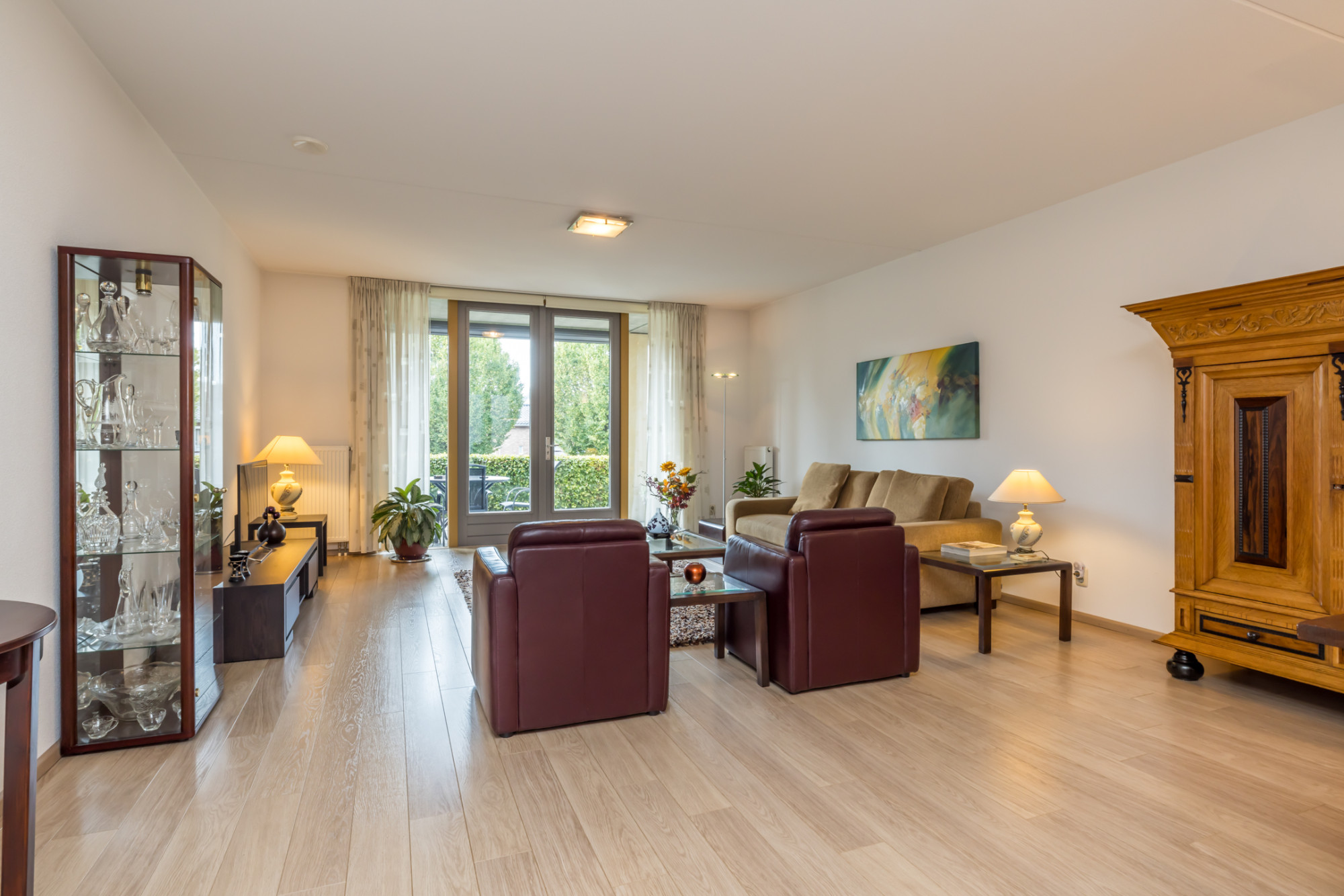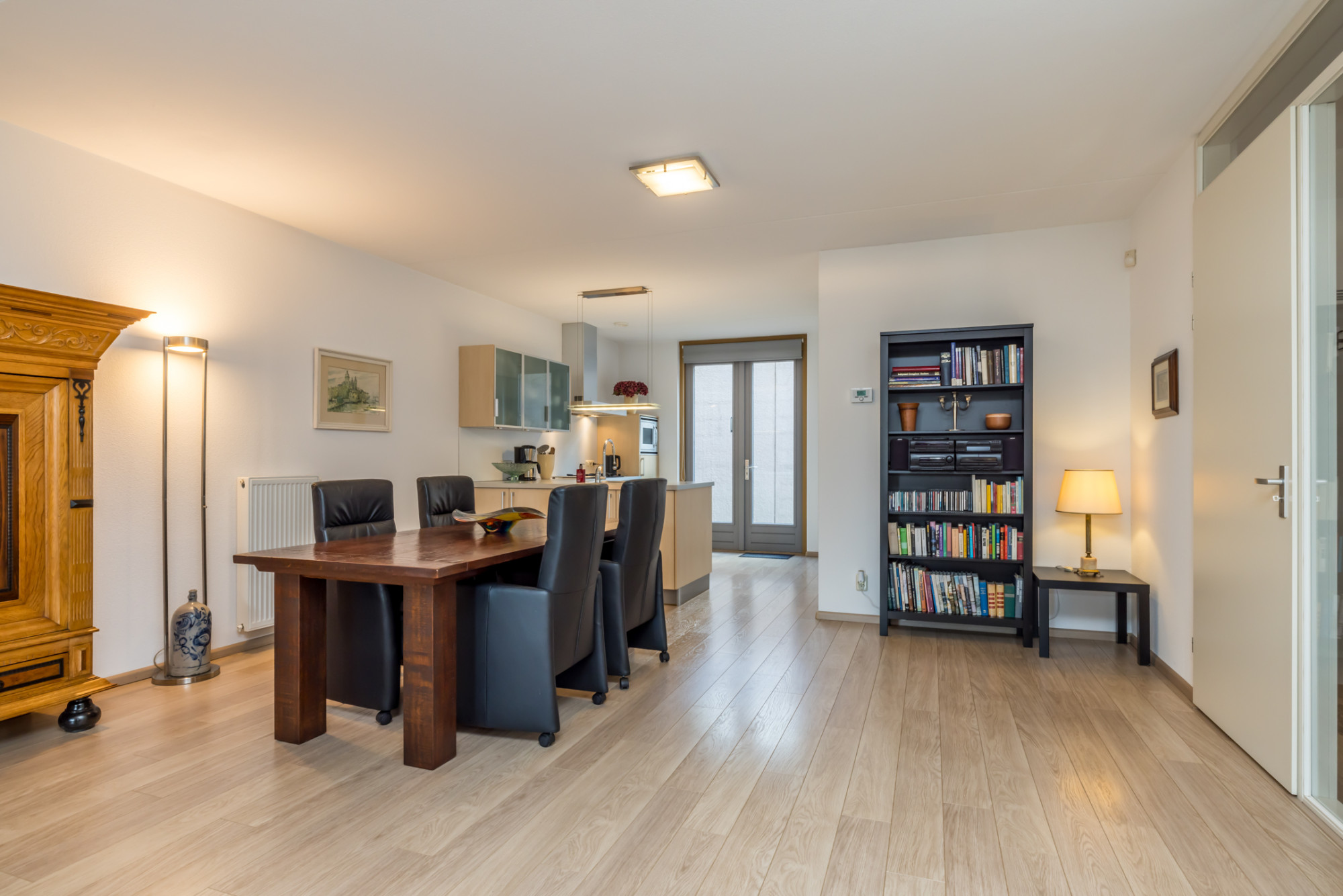 - woonkamer 9.60x5.00 met laminaatvloer en openslaande deuren naar terras (zuid gelegen) 29.5m²