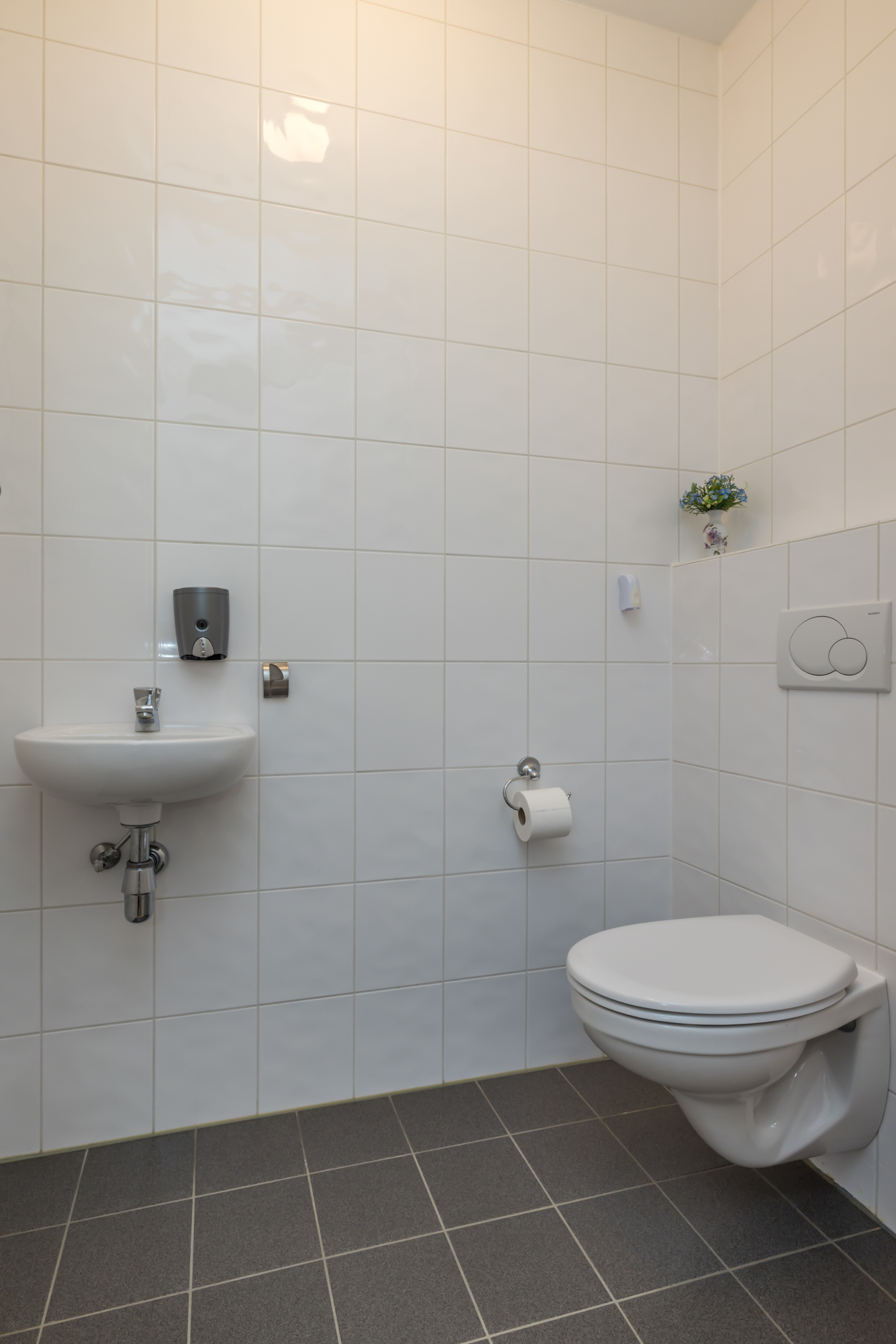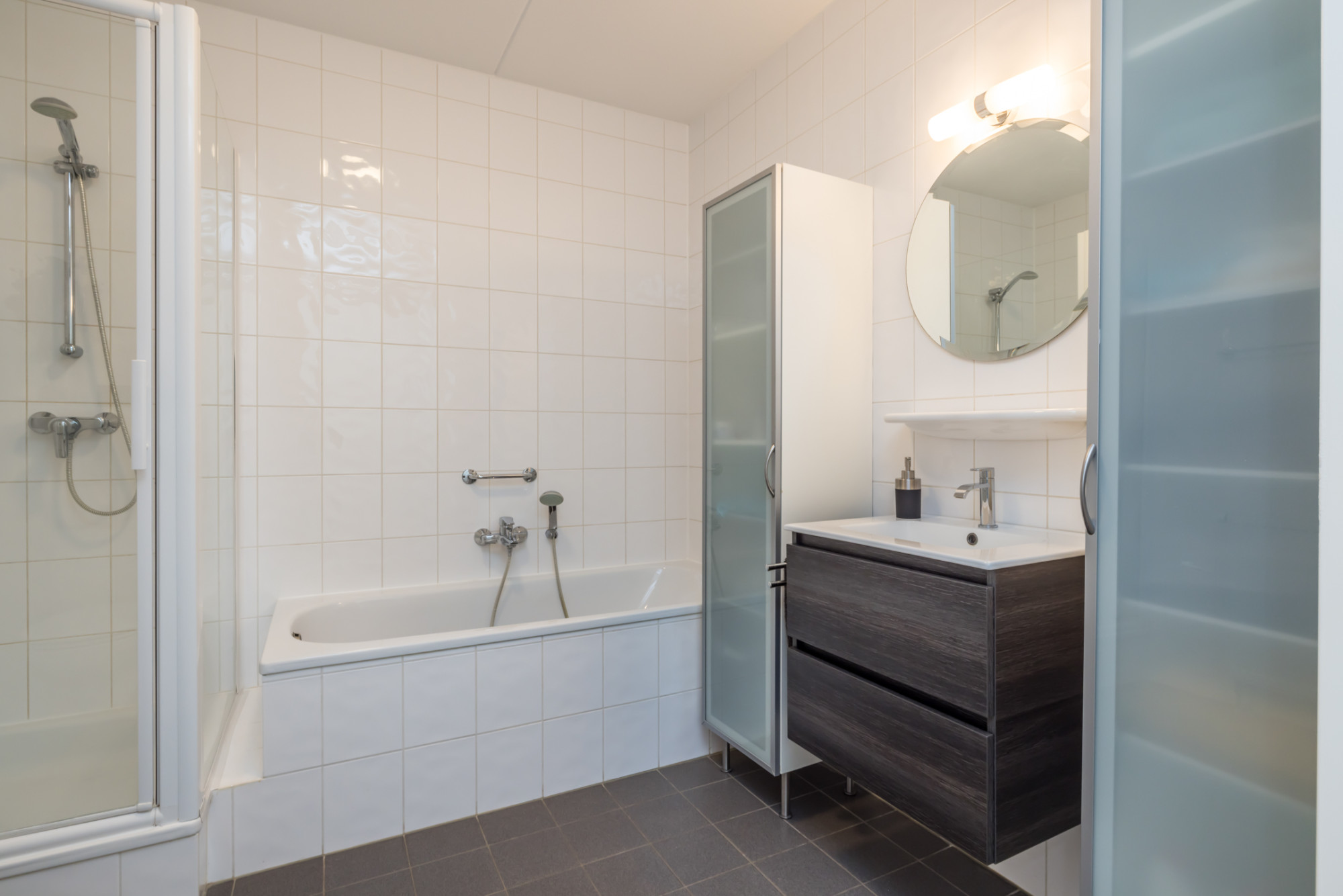 - betegelde badkamer met ligbad, douche, wastafel in meubel en wandcloset