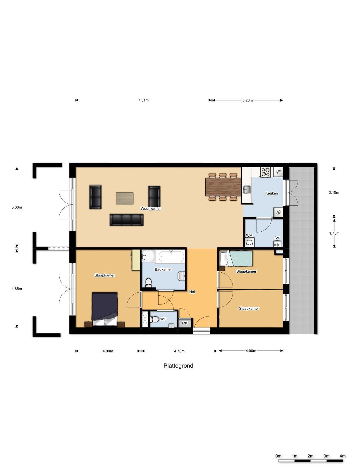 - via de keuken toegang tot privéterras 10.00x2.00, gelegen aan de achterzijde van het appartement