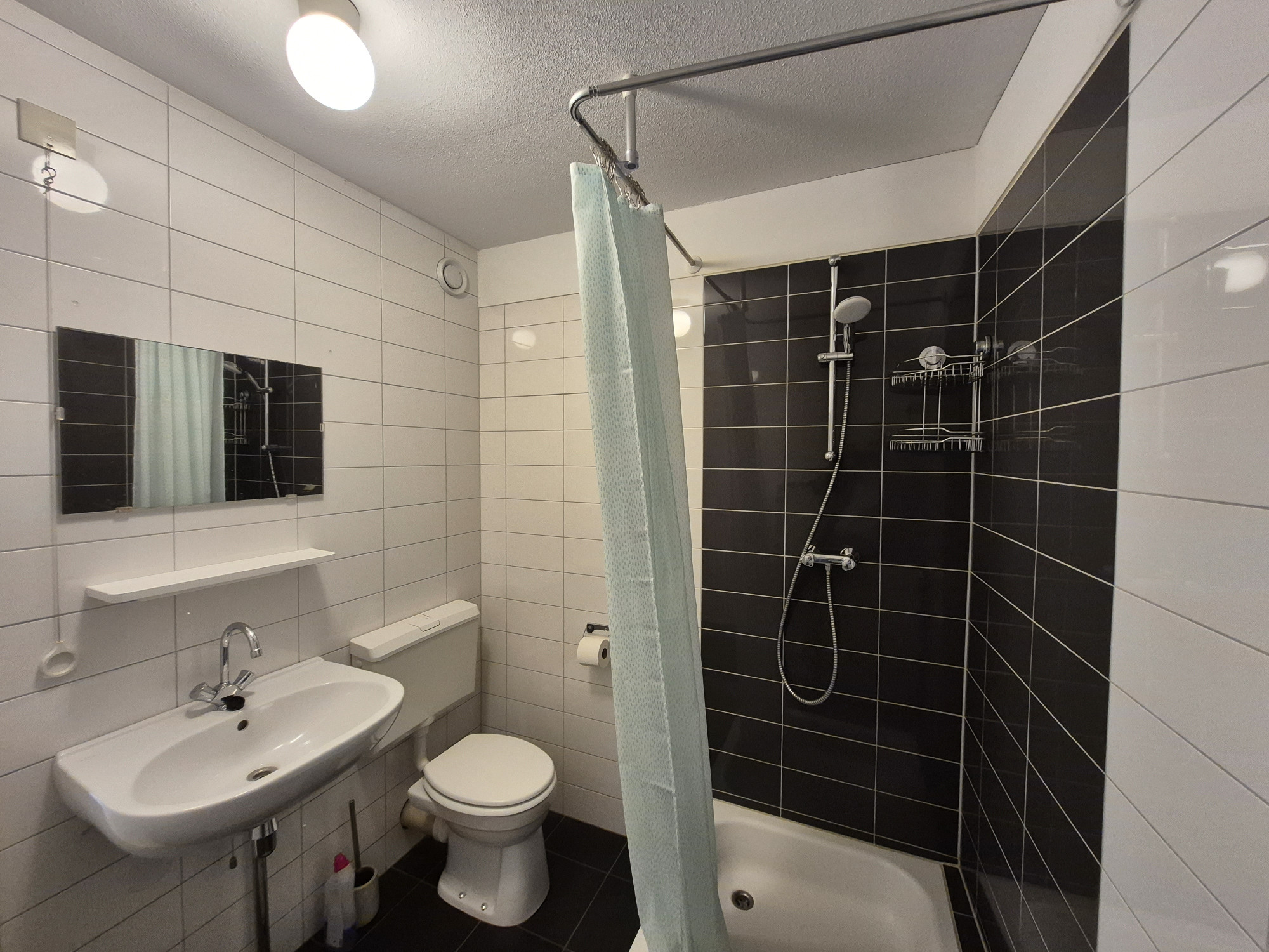 - badkamer voorzien van douche, wastafel, toilet en met aansluiting voor wasmachine.
