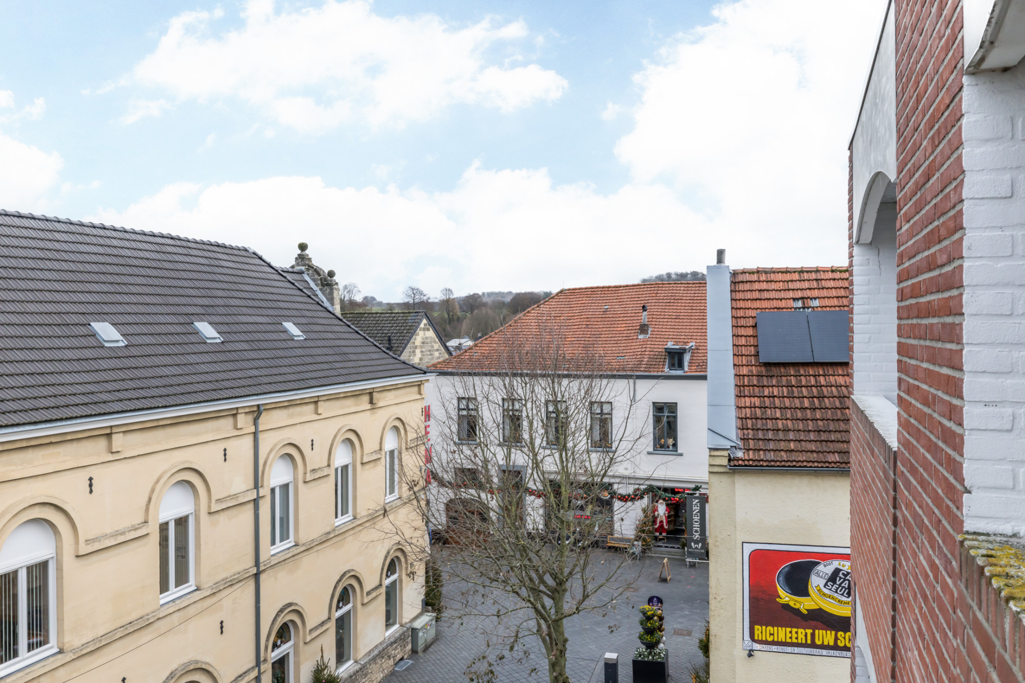 De achterzijde (slaapkamerkant) van het pand kijkt uit op de verlichte ruïne van Valkenburg. Aan de voorzijde is een inpandig terras/loggia met uitkijk op het sfeervolle en rustige winkelplein.