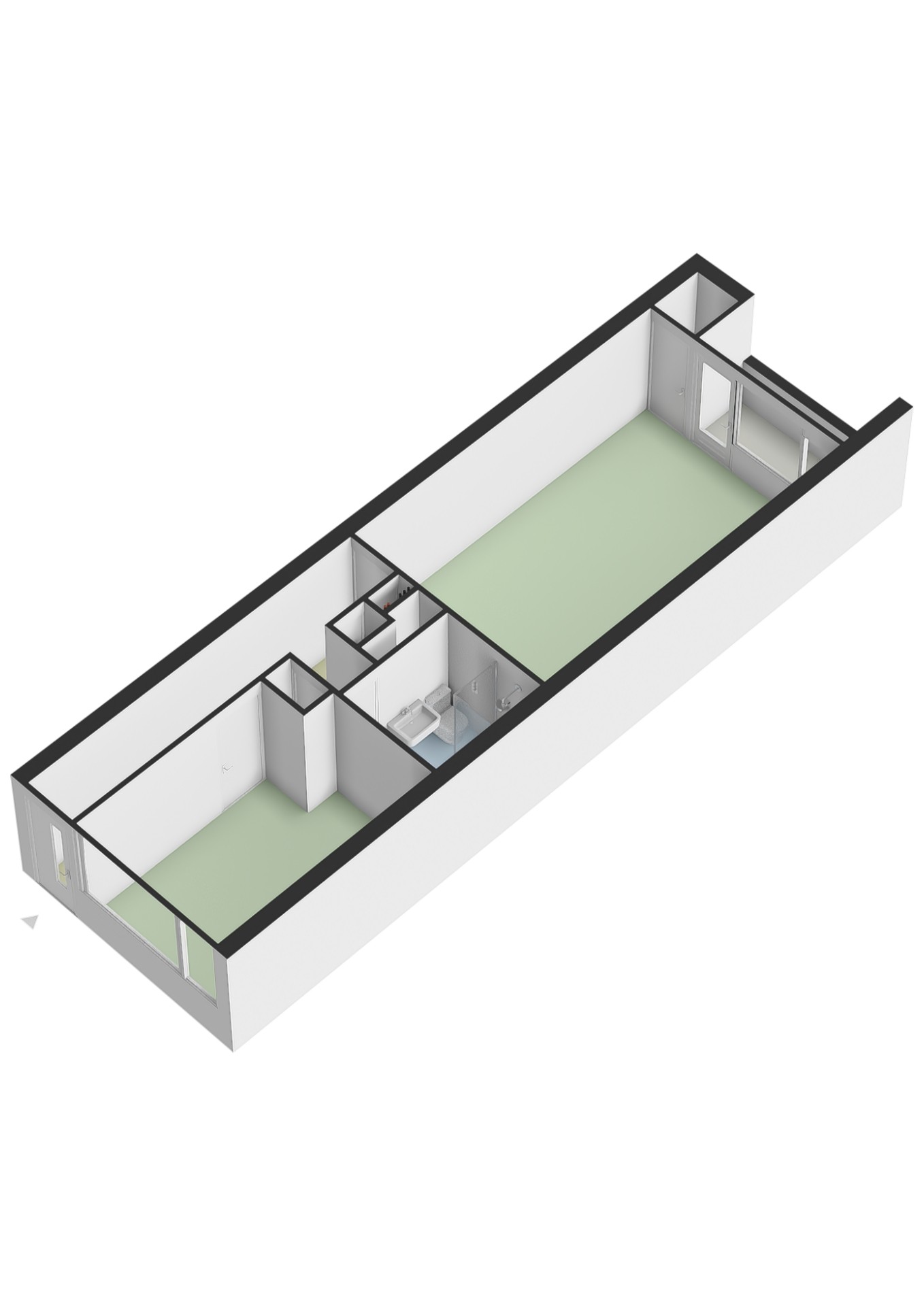 • badkamer voorzien van douche, wastafel, toilet en aansluiting voor wasmachine.