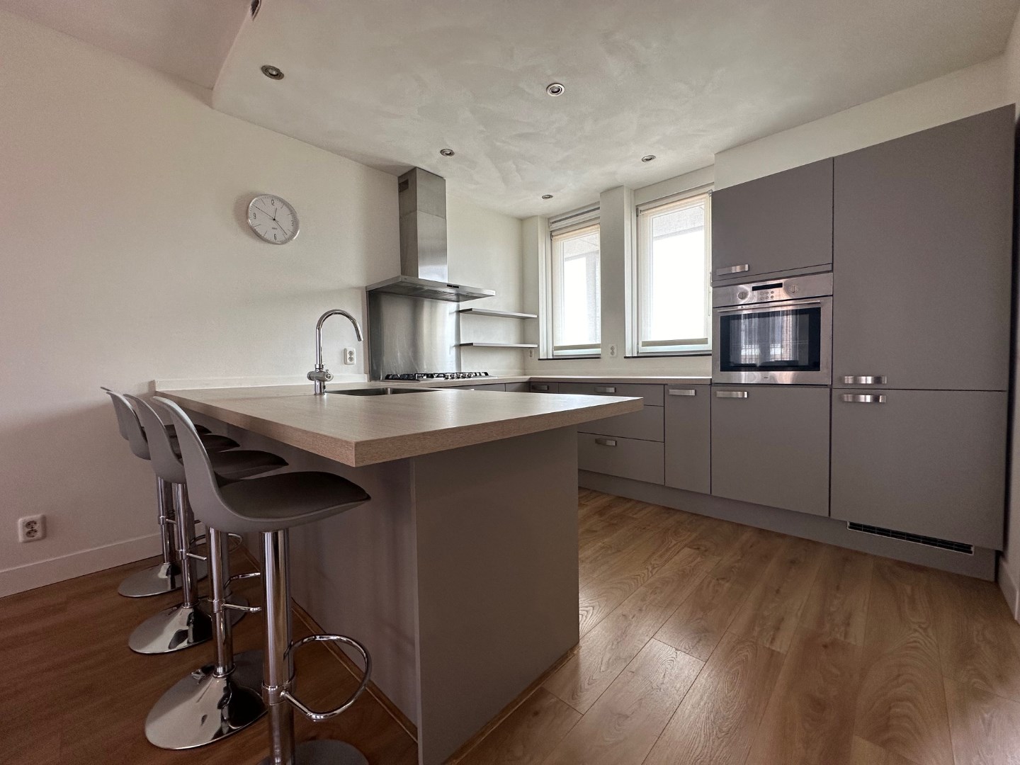 3de verdieping: entree met garderobe en voorraadkast. Zwevend toilet met fonteintje. Meterkast. Ruime L-vormige woonkamer met laminaatvloer, vloerverwarming en sfeervolle gas open haard. Luxe open keuken met vaatwasser, oven, koelkast, aparte diepvries en 5-pits gaskookplaat.