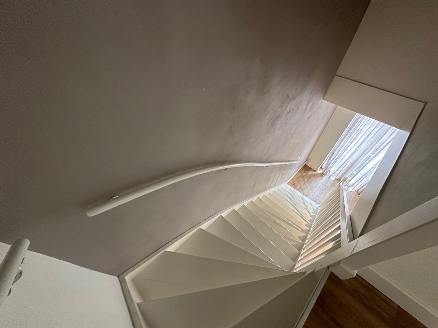 4de verdieping: 2 slaapkamers met laminaat vloeren waarvan één slaapkamer is voorzien van een inbouwkast. Badkamer met inloopdouche, wastafel, toilet, vloerverwarming en design radiator. Grote berging met c.v.-ketel, W.T.W. installatie en witgoedaansluiting.
