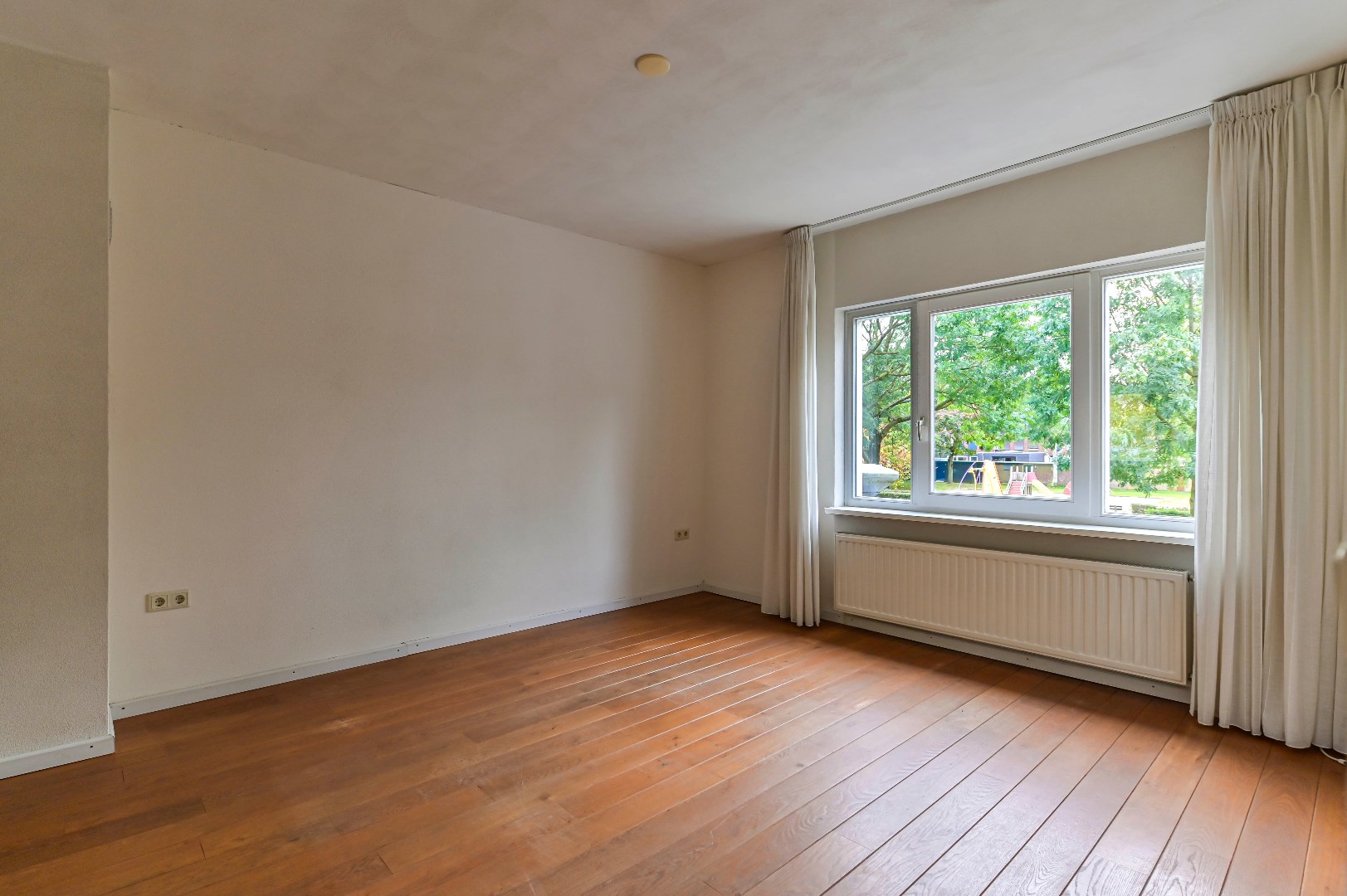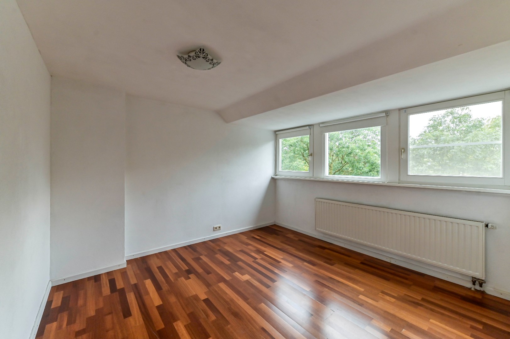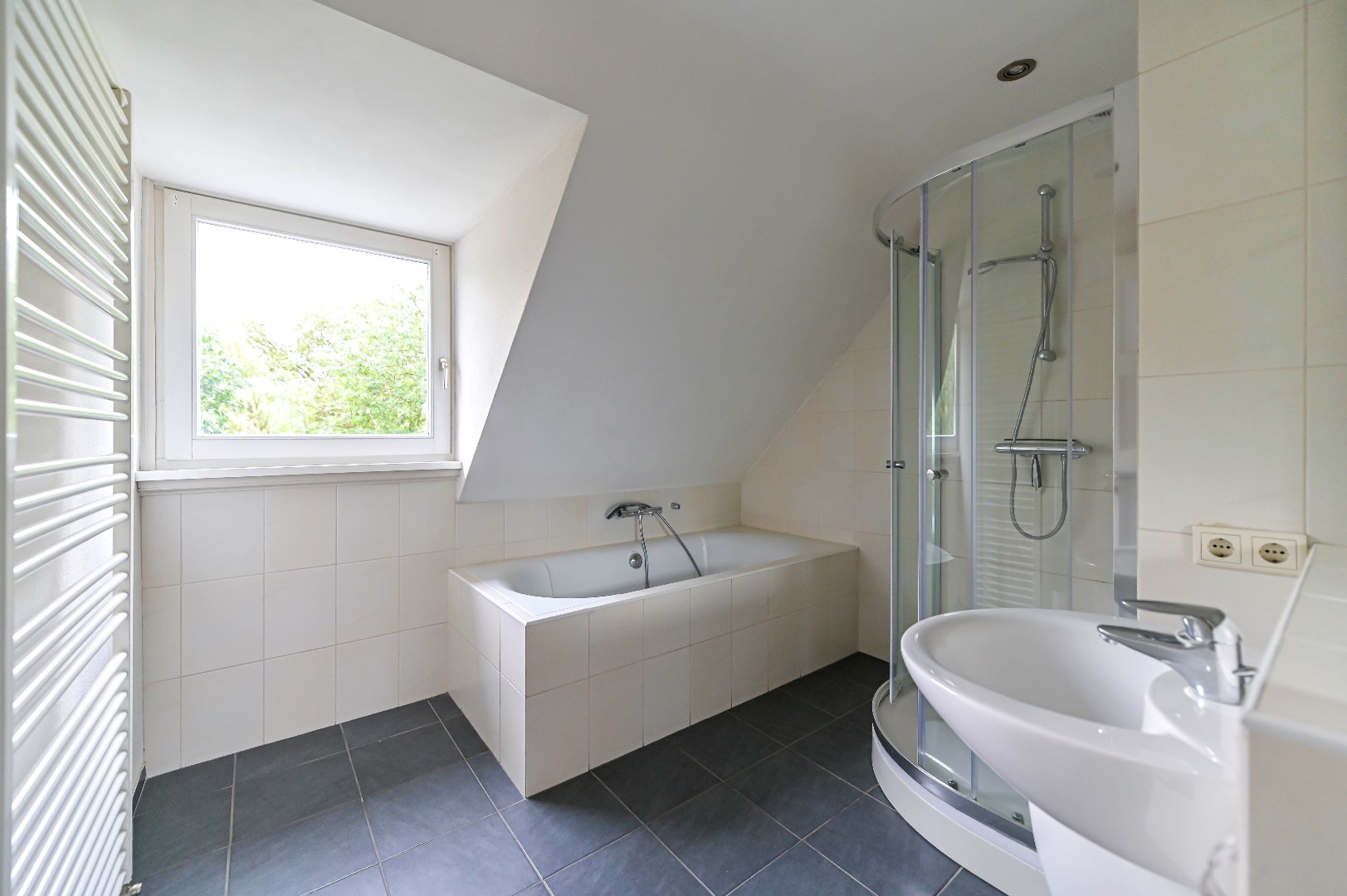 Overloop met parketvloer en aangrenzend twee slaapkamers, badkamer en de technische ruimte. Beide slaapkamers zijn voorzien van parketvloer, waarvan 1 slaapkamer beschikt over een dakkapel en de andere slaapkamer beschikt over een Velux dakraam. De nette badkamer (2004) is voorzien van: ligbad, aparte douche, wastafel en designradiator. In de technische ruimte bevindt zich de recent geplaatste C.V.-ketel (HR Intergas uit 2022) en witgoedaansluiting. Aangrenzend aan deze technische ruime bevindt zich het ruime dakterras met drainagetegels en nieuwe afrastering.